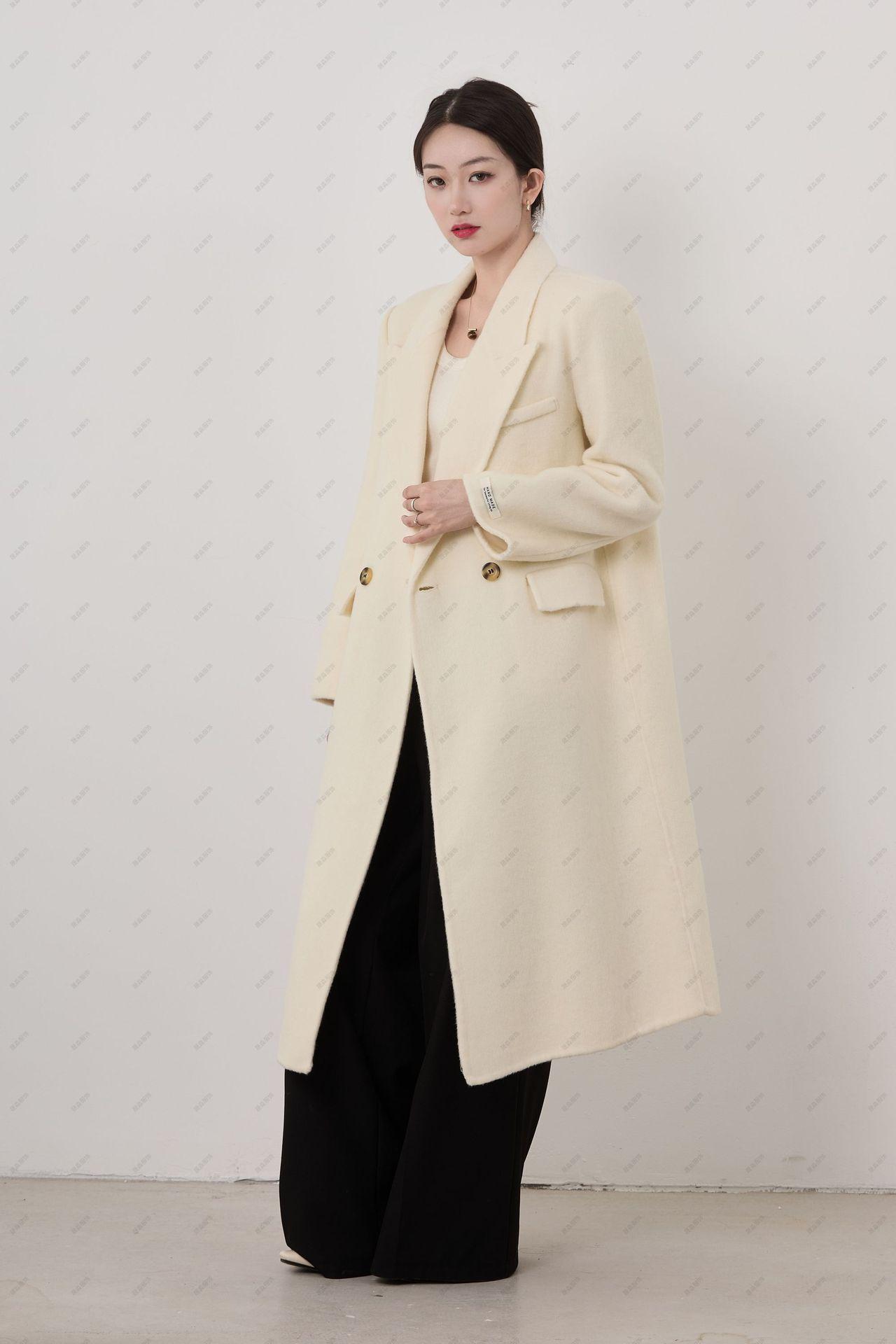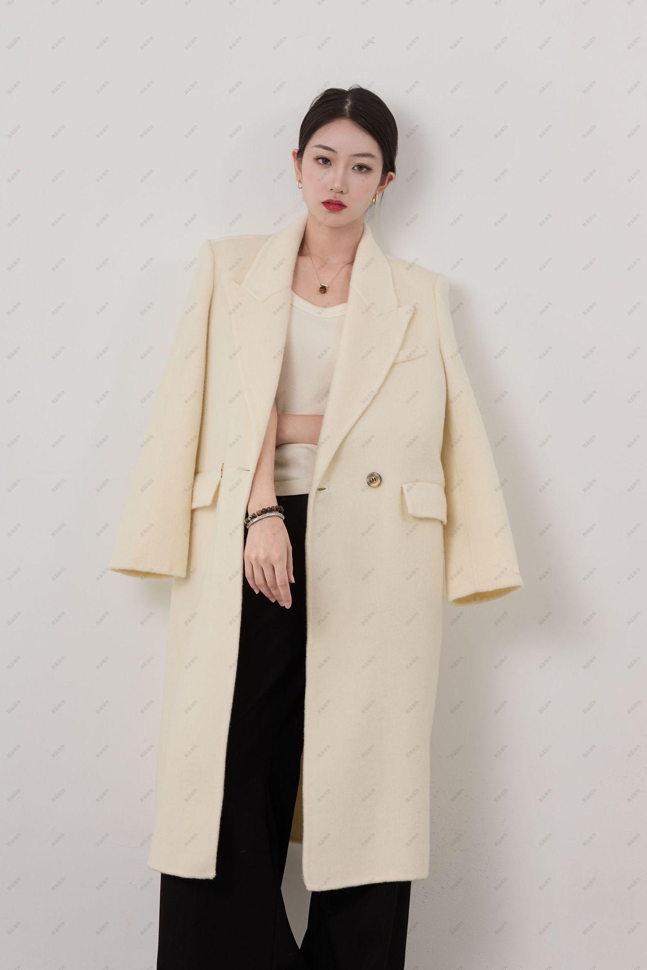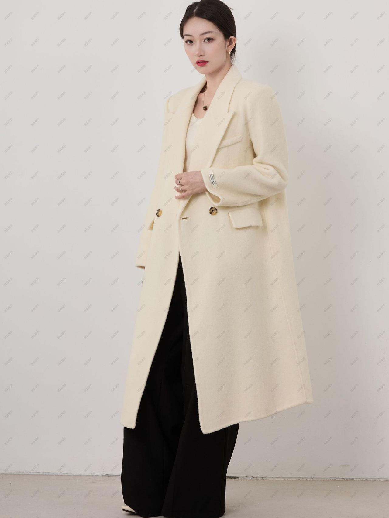 Traje Adelgazante y para Aumentar la Estatura de Alta Gama a la Moda Versátil Cachemira Lana Doble Faz Abrigo Exterior para Mujer Estilo Temperamento Lana Doble Faz