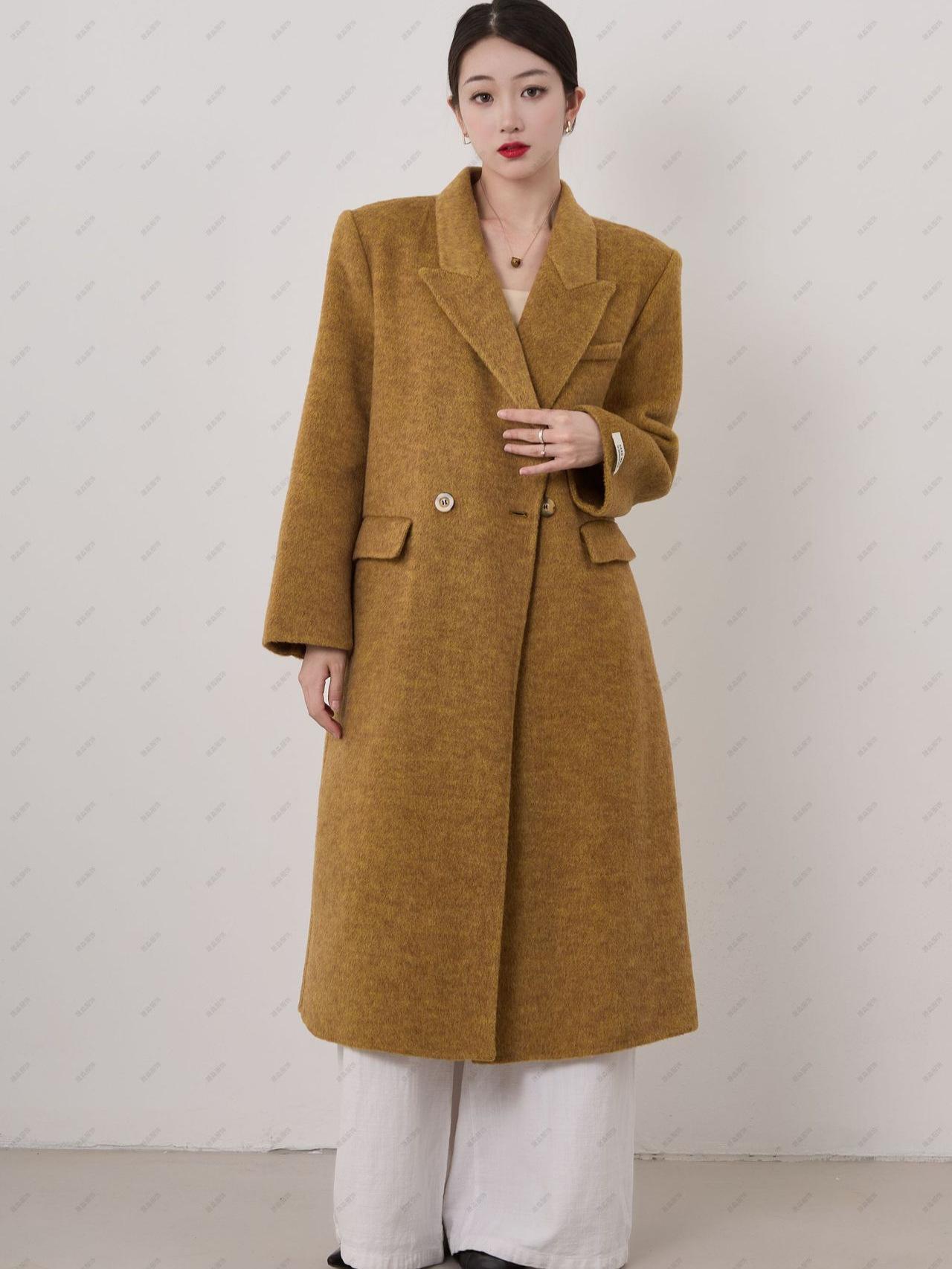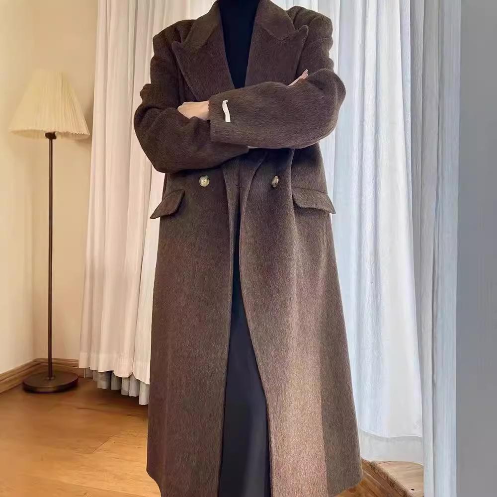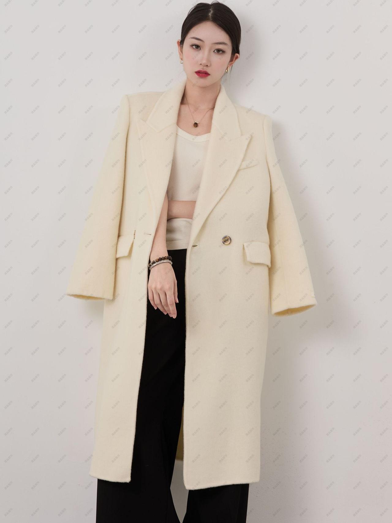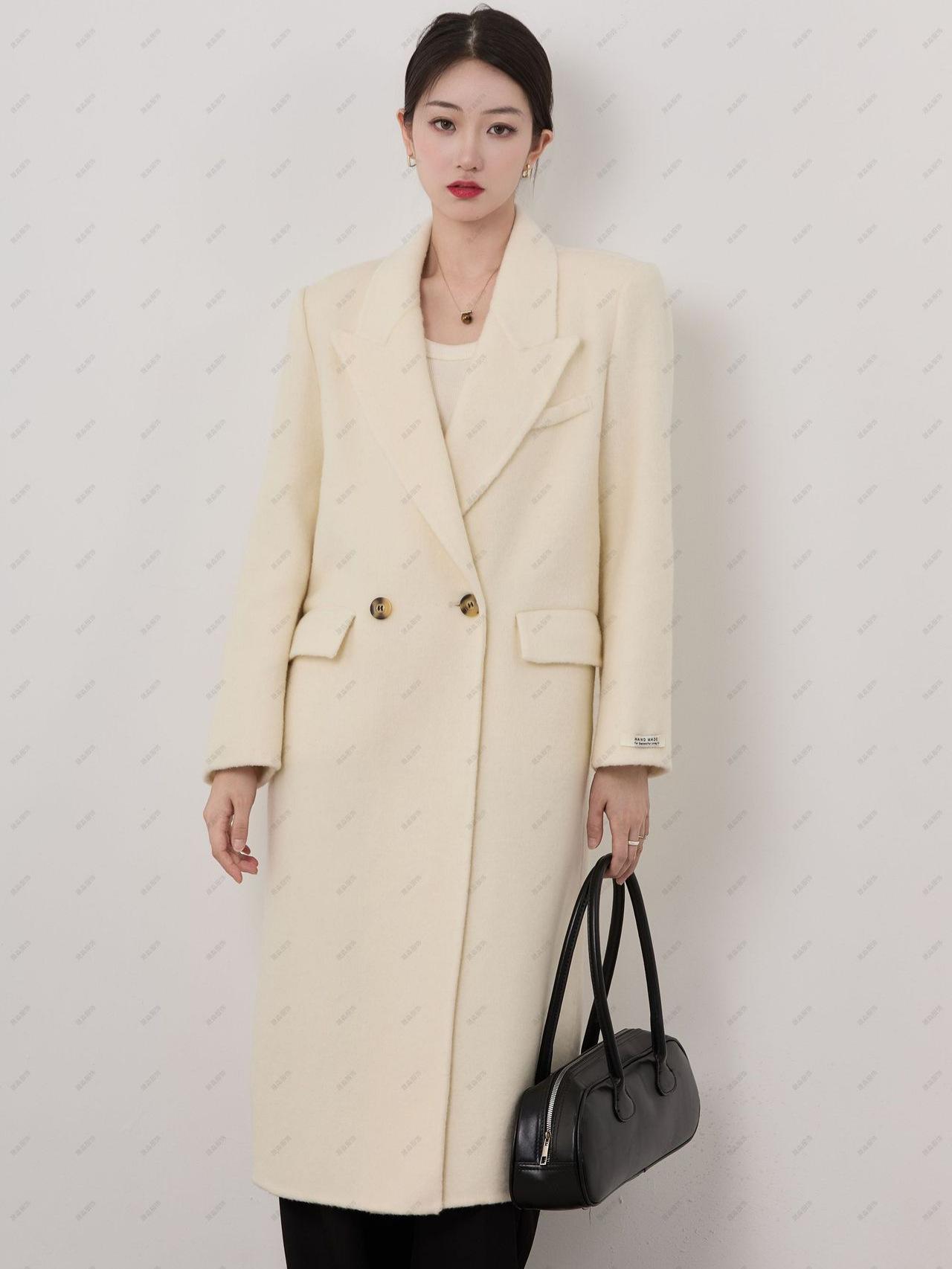 Traje Adelgazante y para Aumentar la Estatura de Alta Gama a la Moda Versátil Cachemira Lana Doble Faz Abrigo Exterior para Mujer Estilo Temperamento Lana Doble Faz