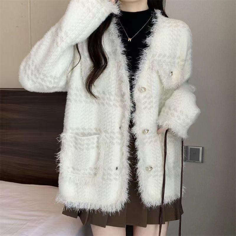 Cárdigan de punto de visón estilo Chanel francés con borlas 2025 nuevo temperamento socialité francés top holgado mujer