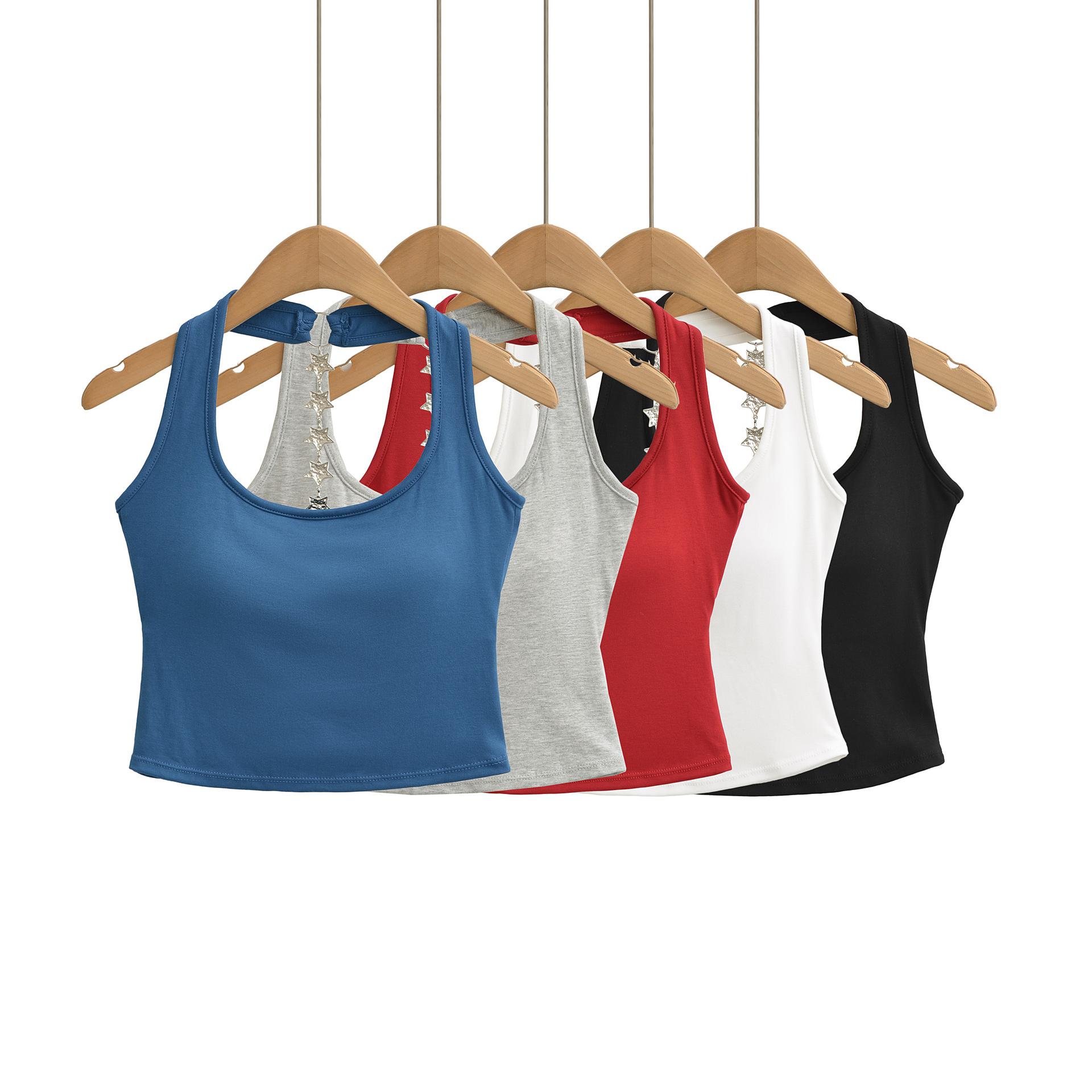 Compra D178-Estilo europeo y americano sexy ajustado chaleco sin mangas mujeres 2025 nueva moda chica hot top con hombros descubiertos al por mayor en Joom.pro