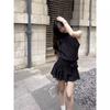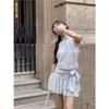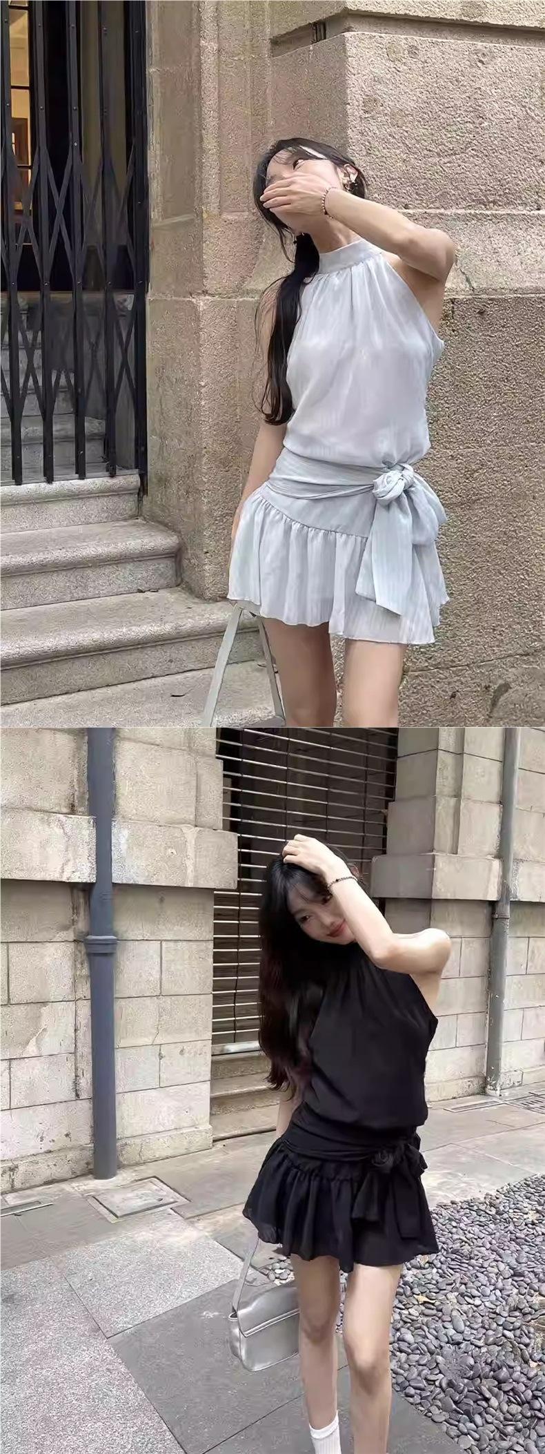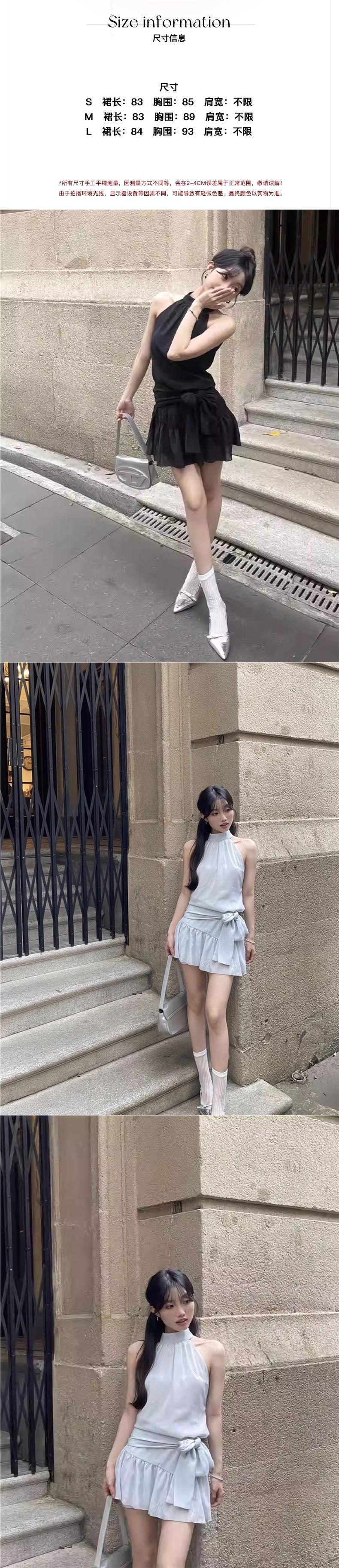 Vestido halter sin mangas azul francés para mujer en verano, estilo suave, look adelgazante de cintura, falda A-line con volantes fuera del hombro