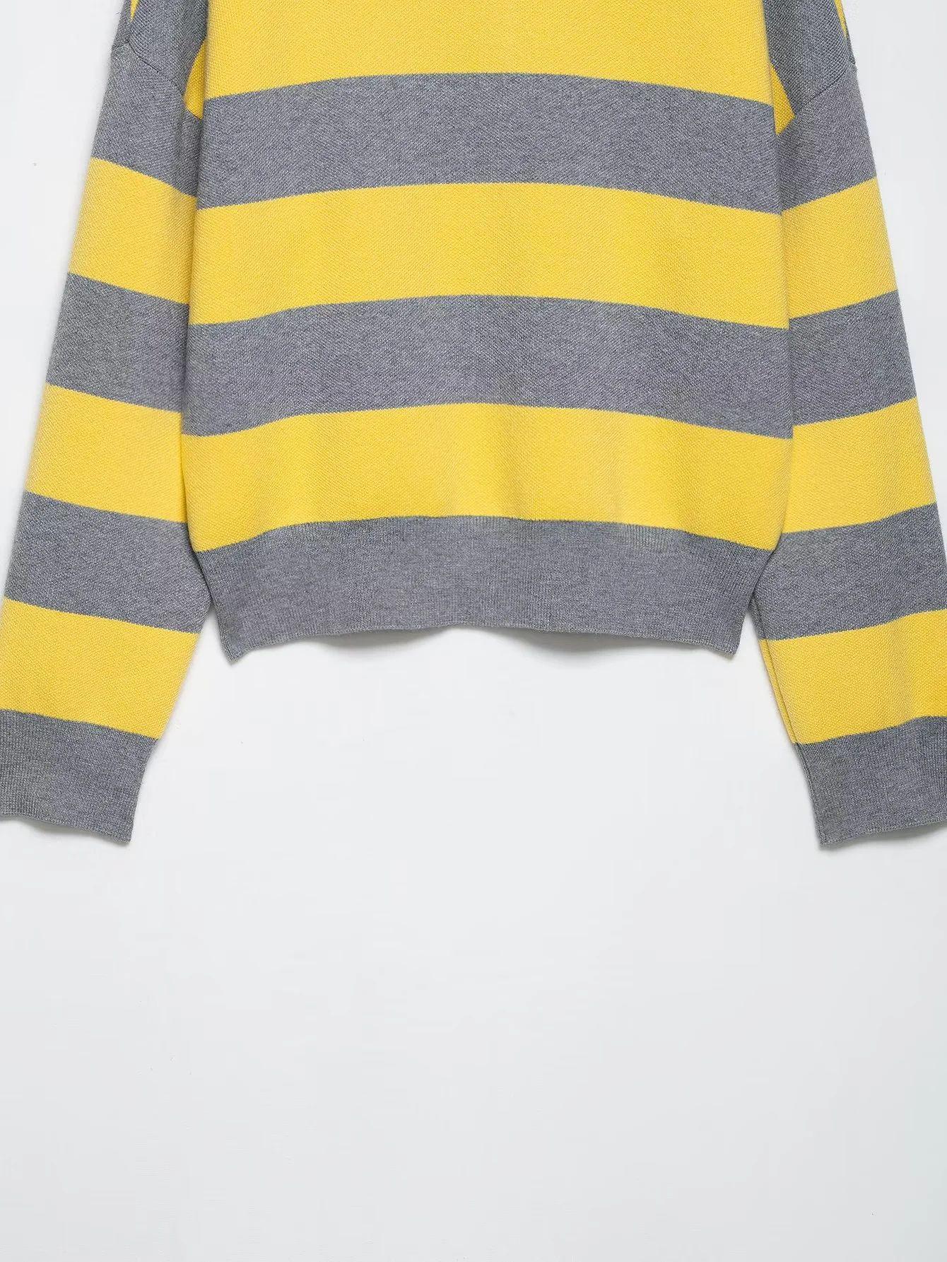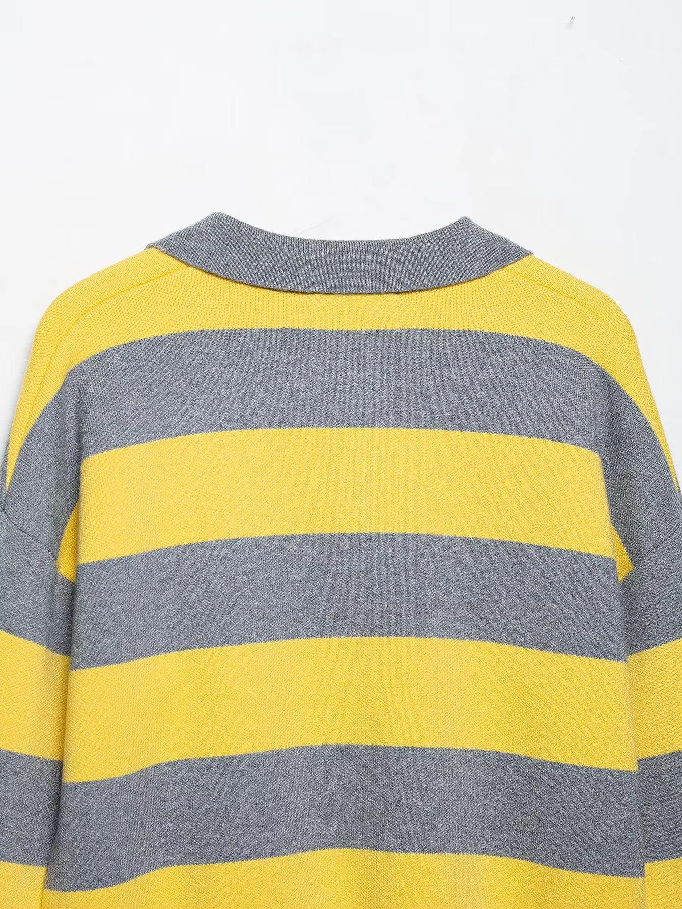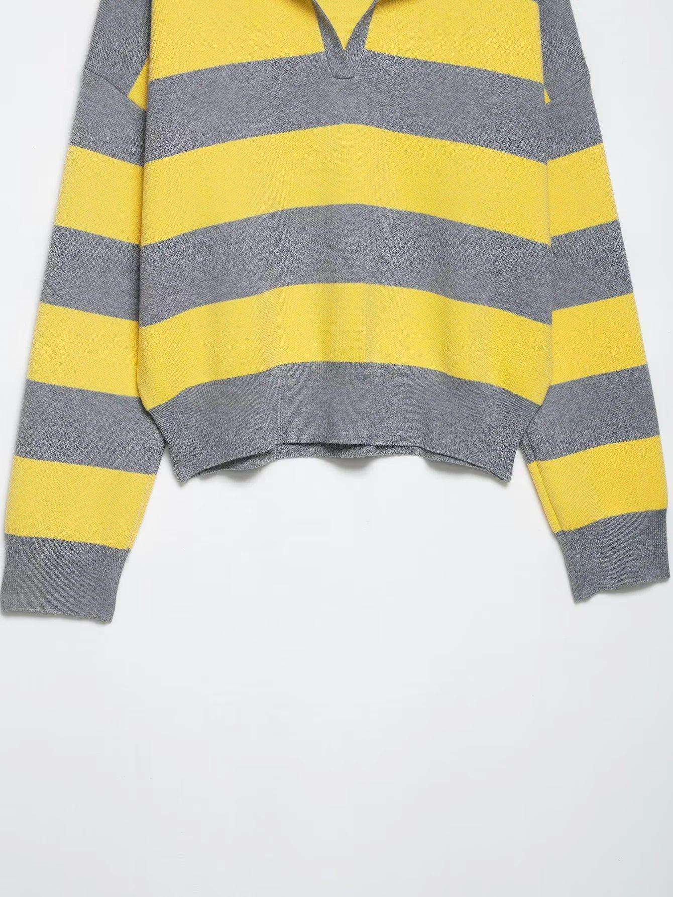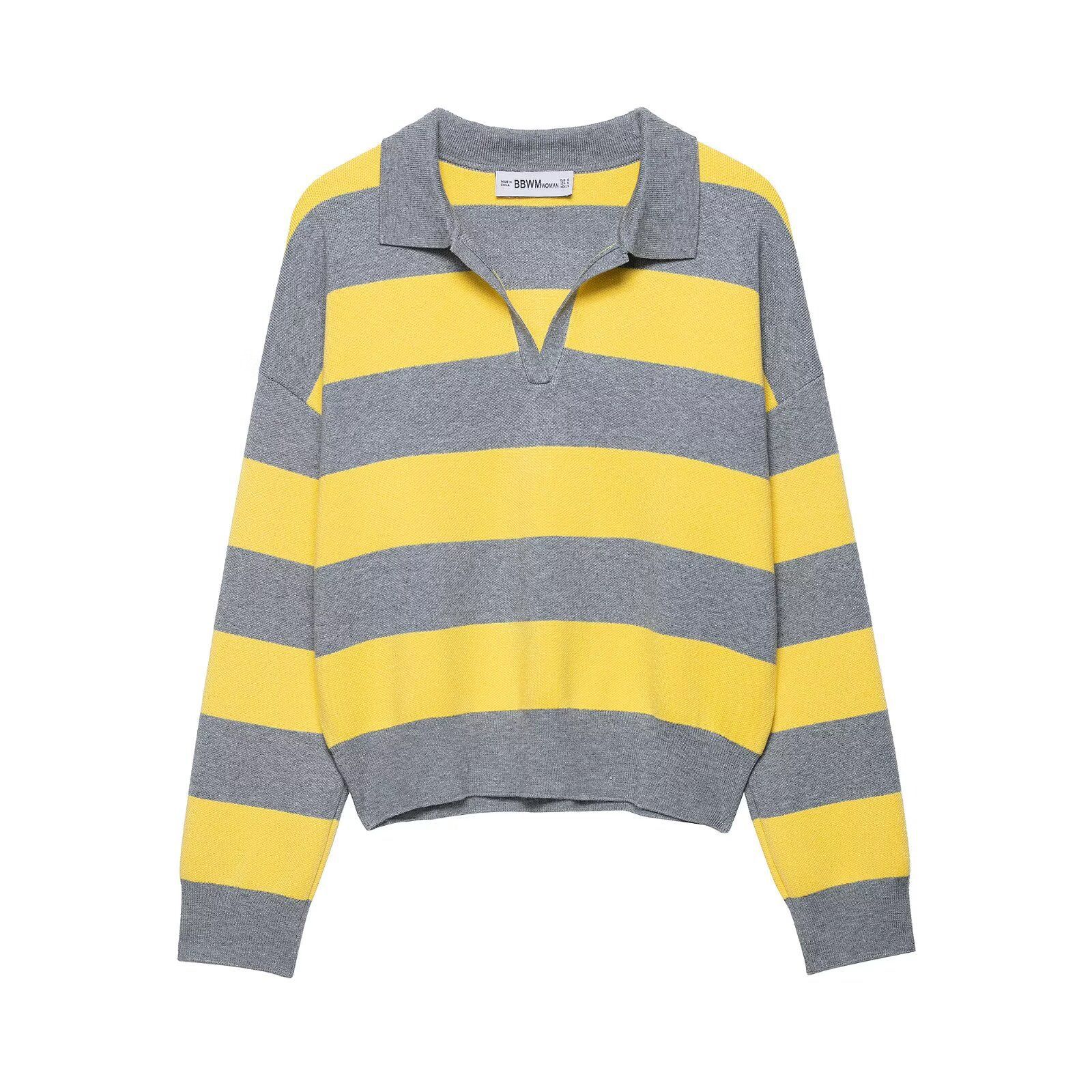ZA AliExpress Más Vendido Comercio Exterior Transfronterizo Estilo Europeo y Americano Suéter de Punto para Mujer con Cuello POLO a Rayas