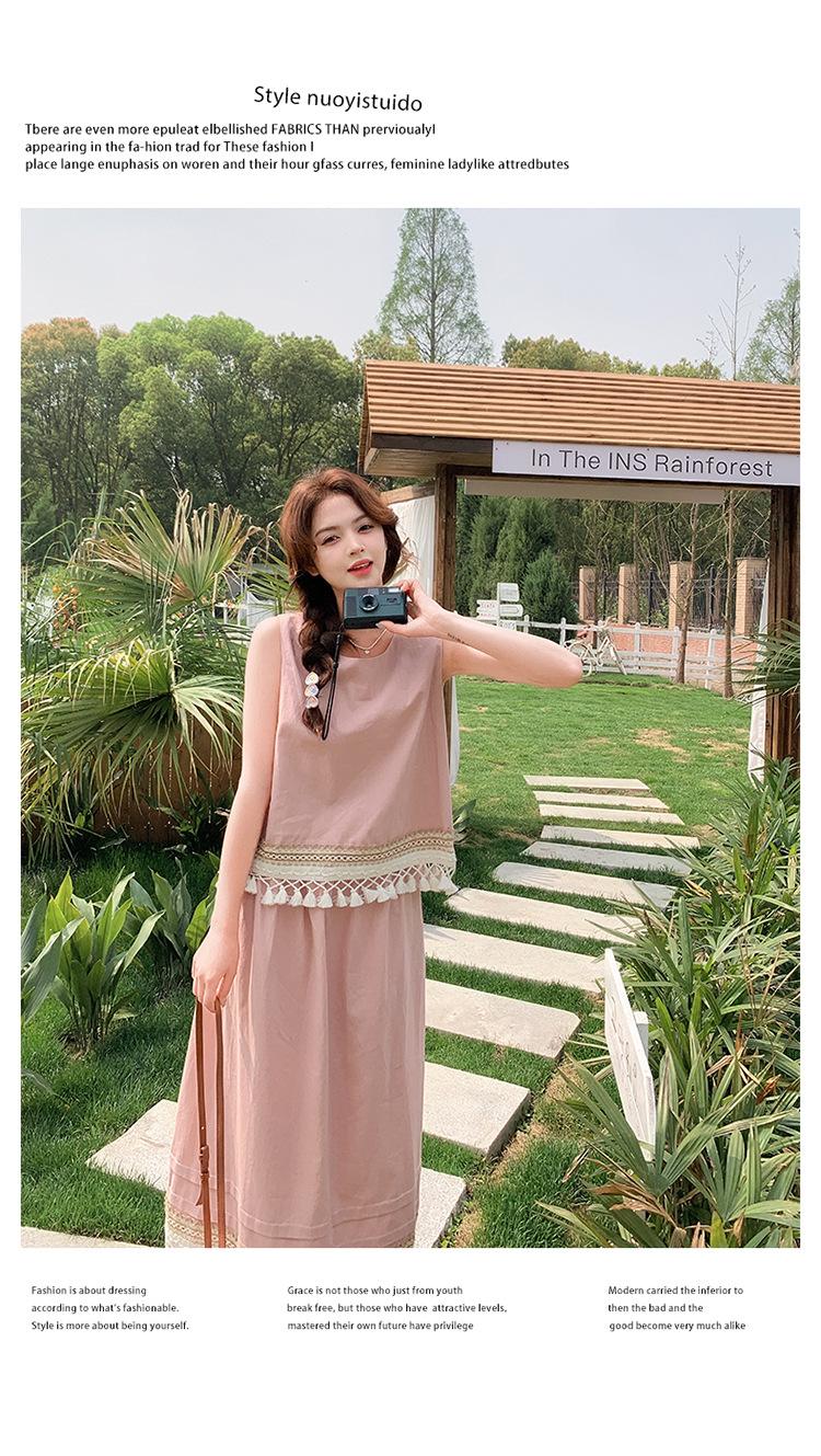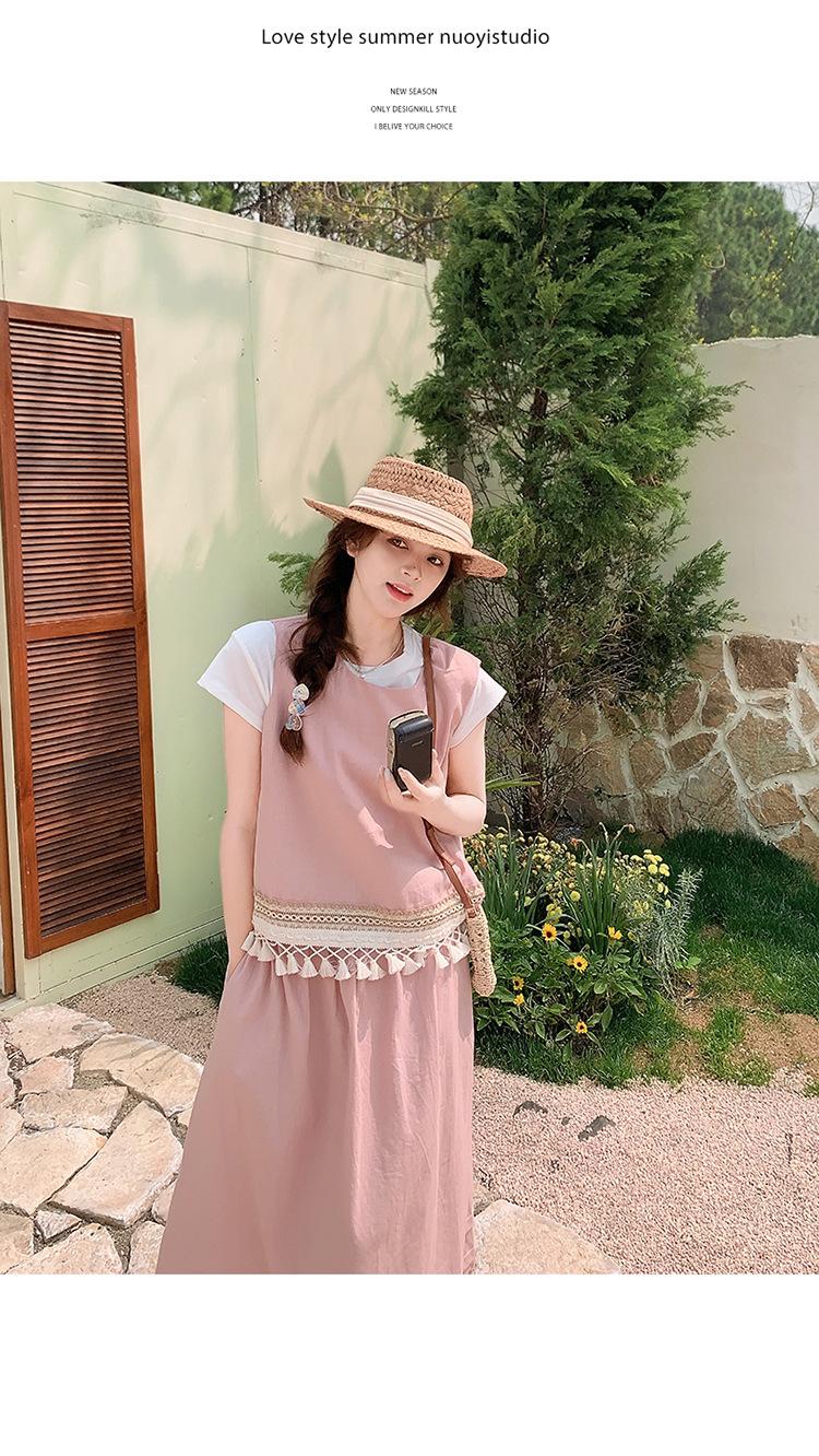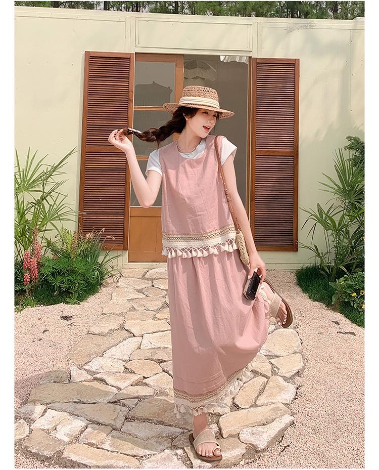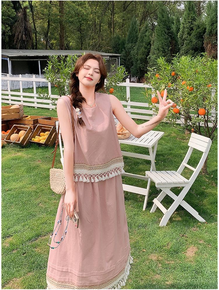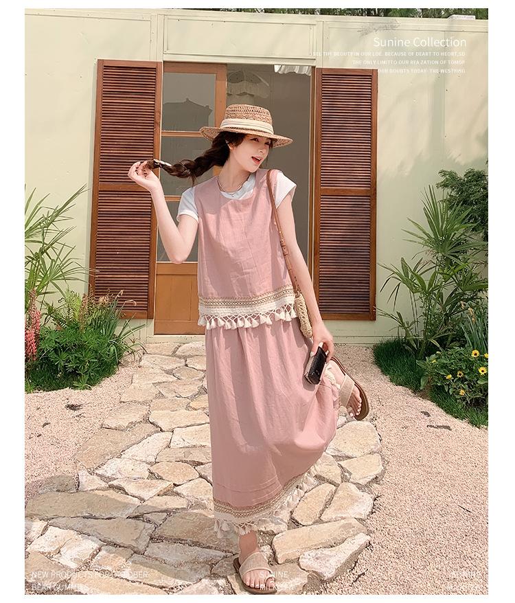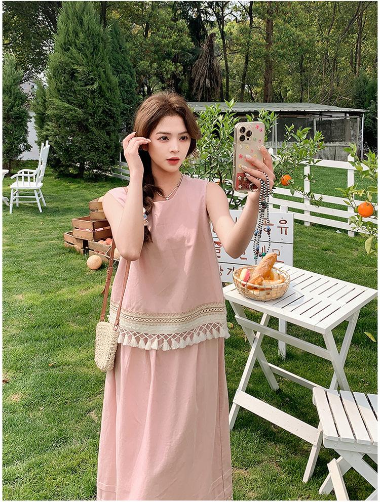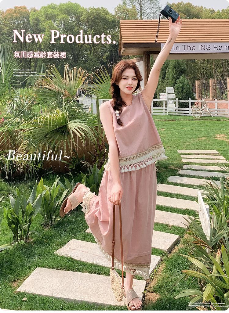 Conjunto Casual Estilo Lazy Verano 2025 Nueva Llegada Reductor de Edad Versátil Conjunto de Dos Piezas Encaje Vestido Midi