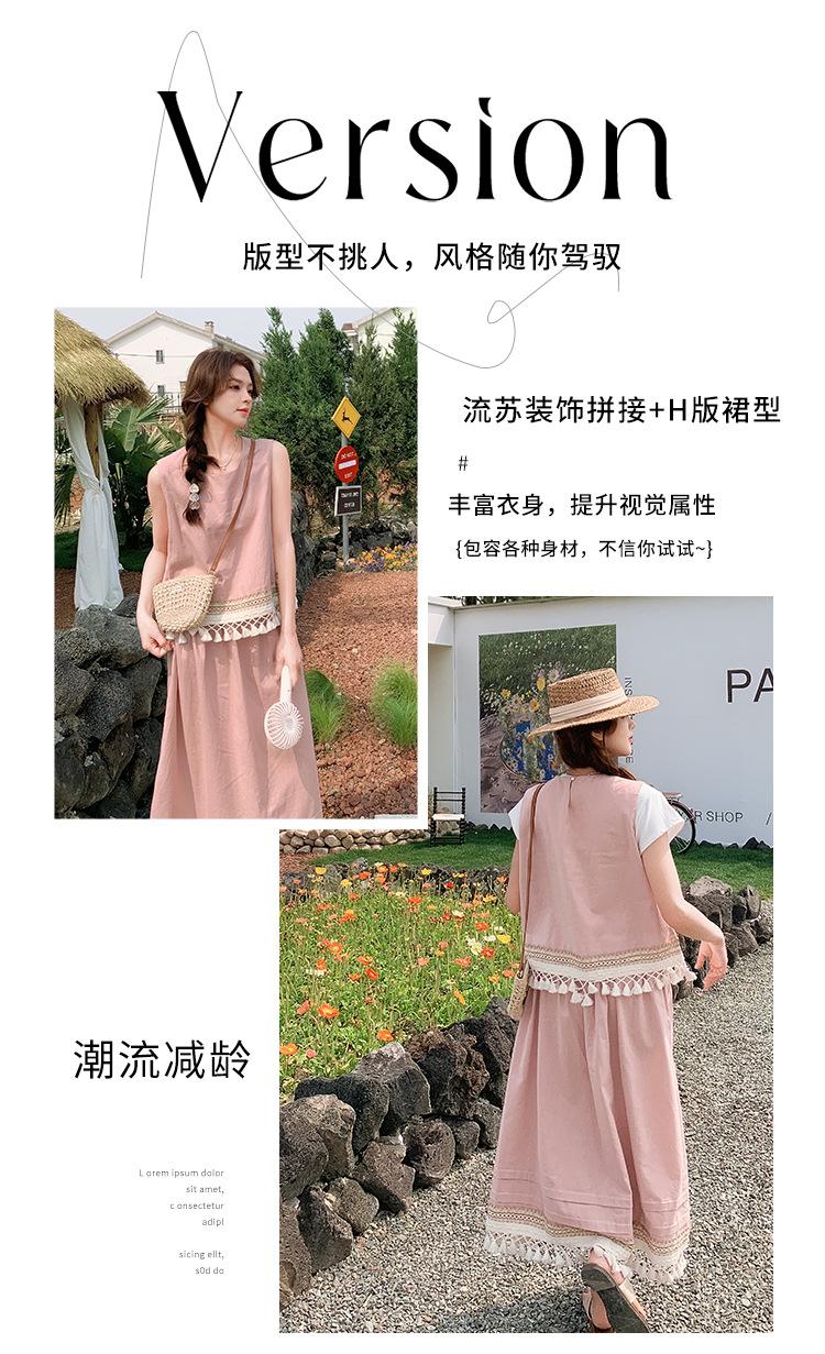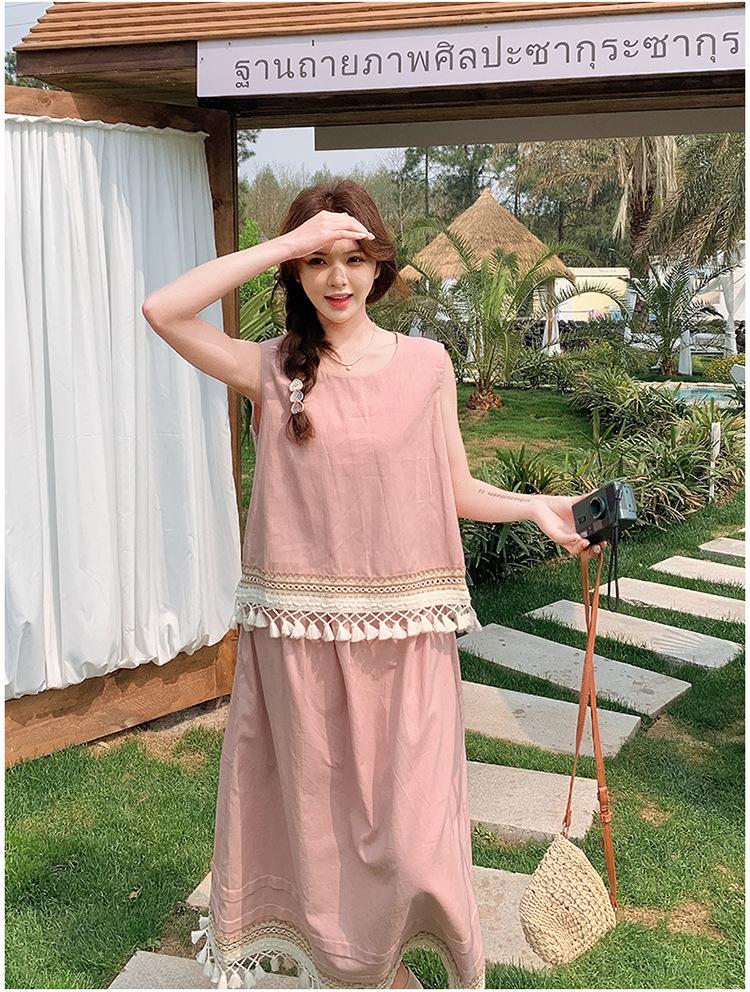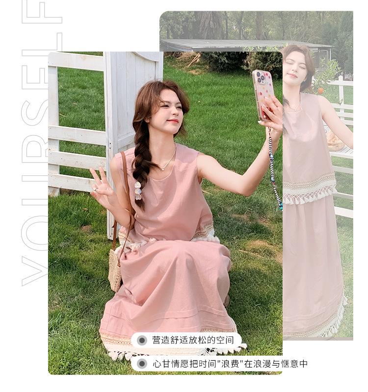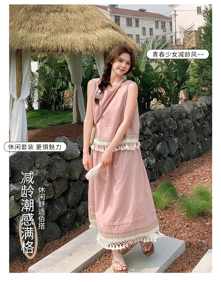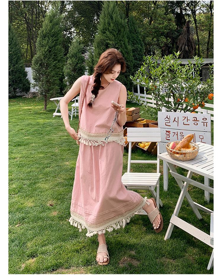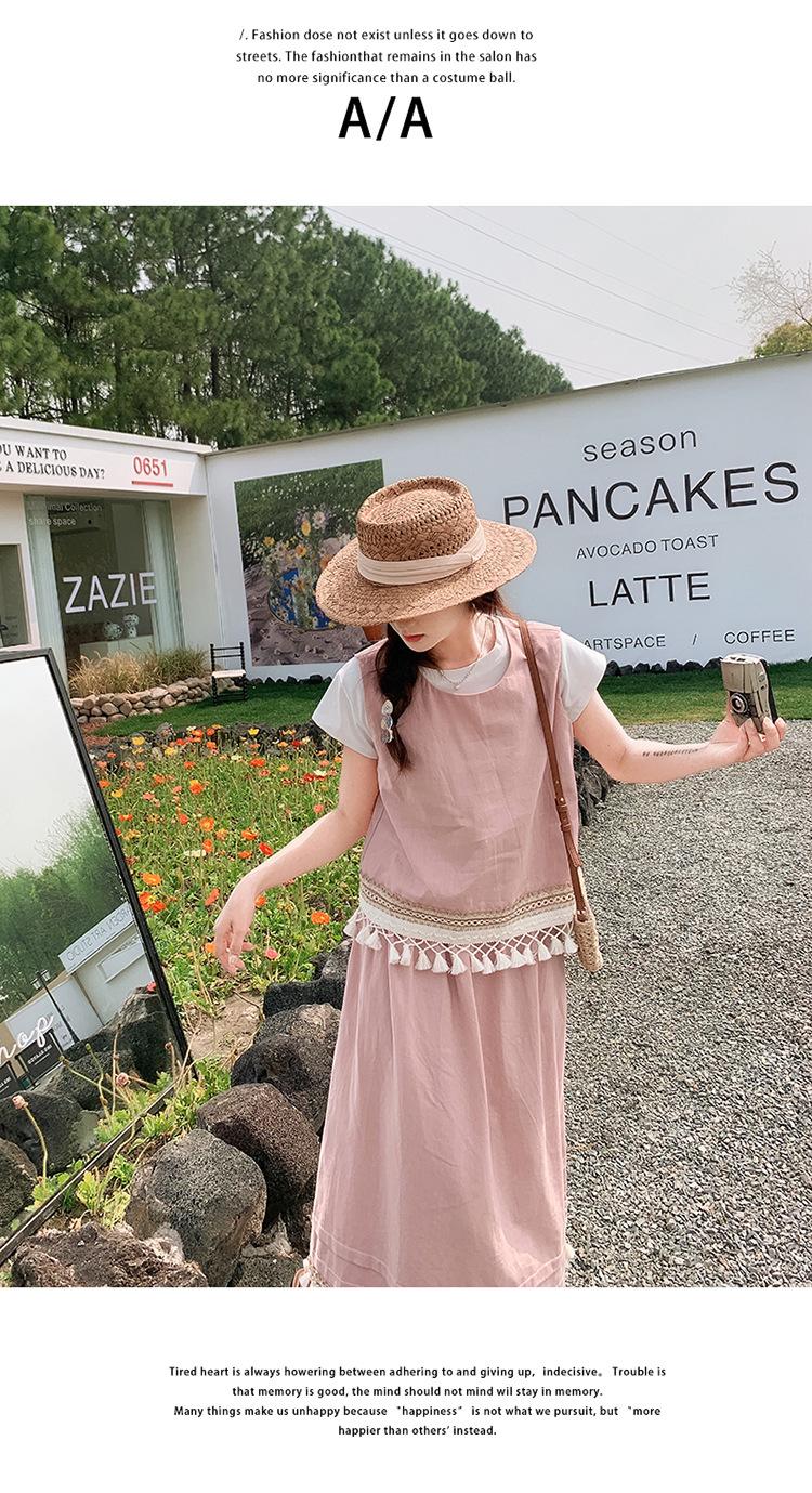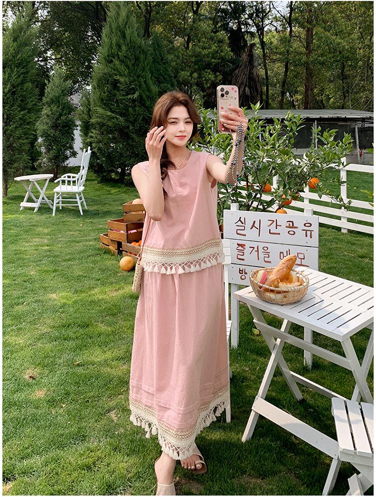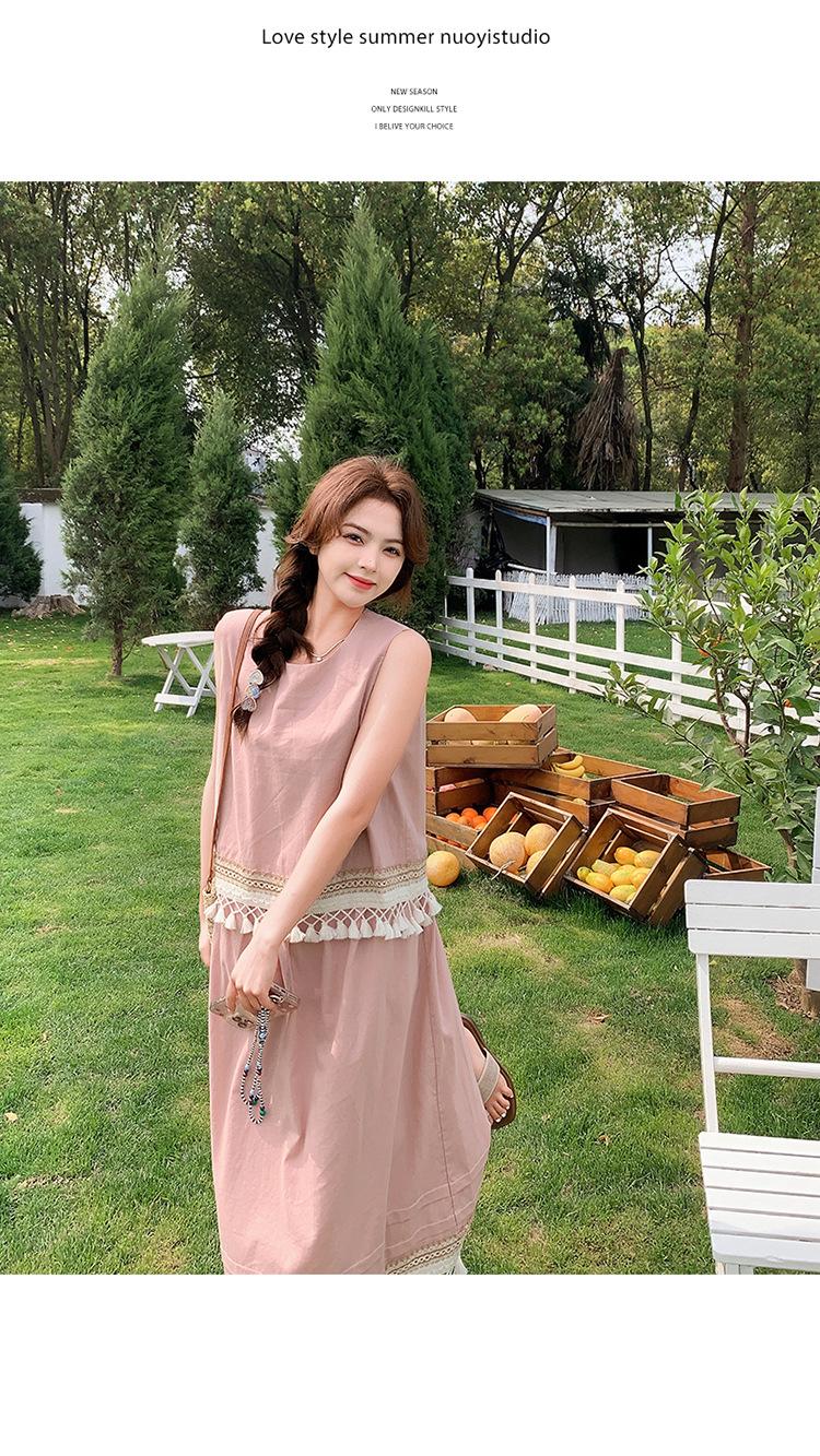 Conjunto Casual Estilo Lazy Verano 2025 Nueva Llegada Reductor de Edad Versátil Conjunto de Dos Piezas Encaje Vestido Midi