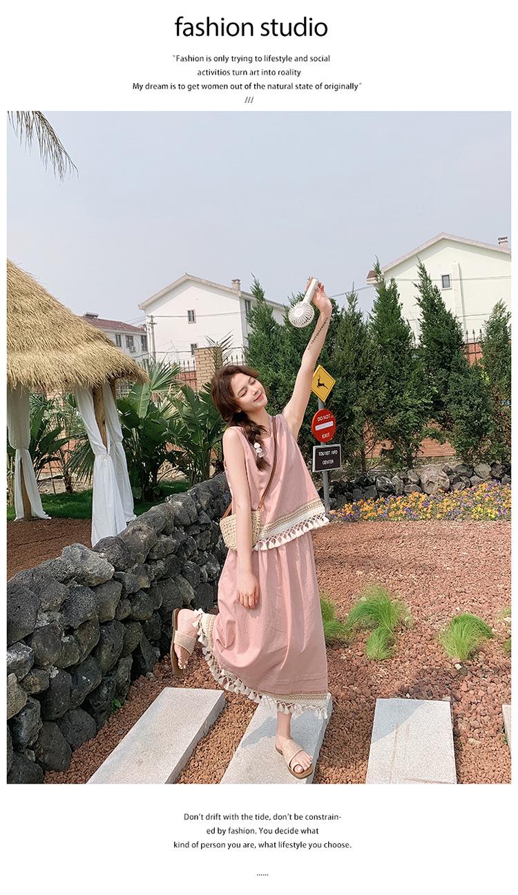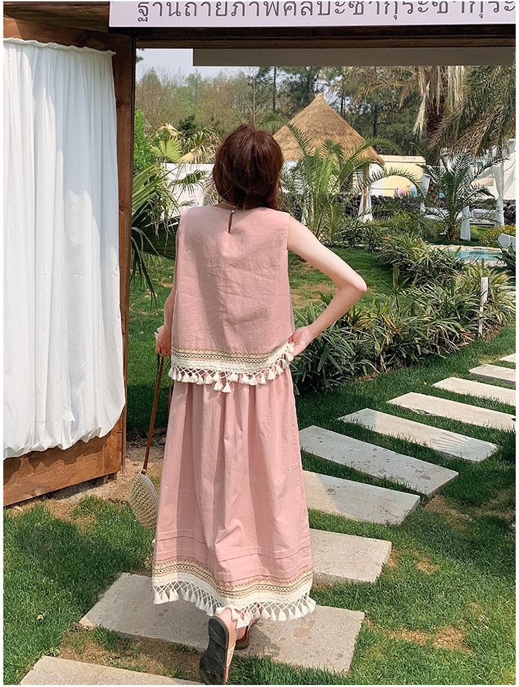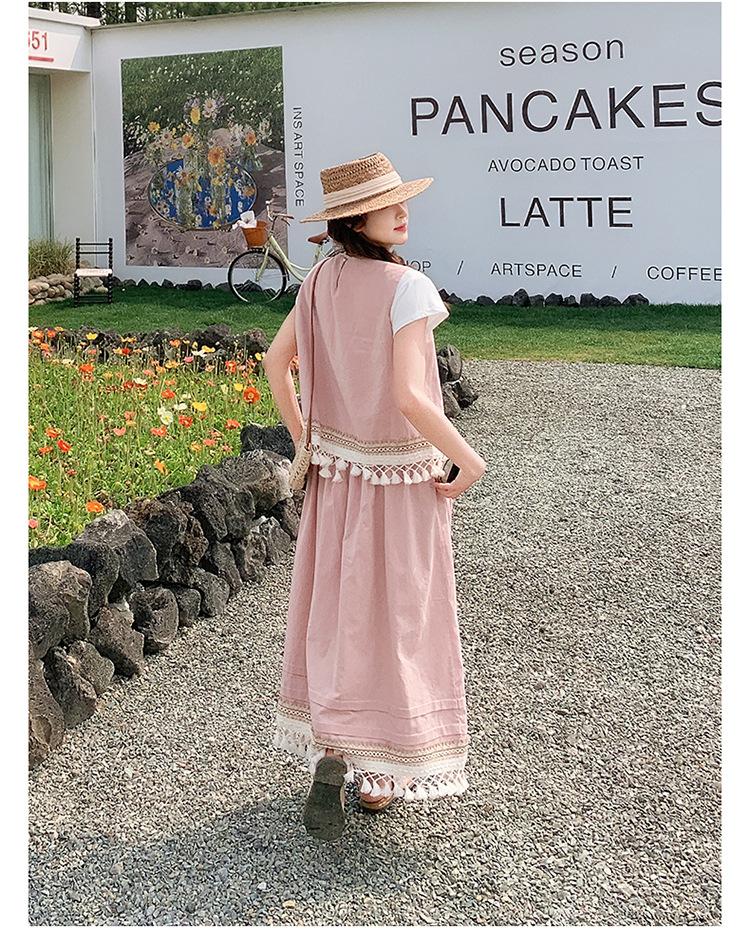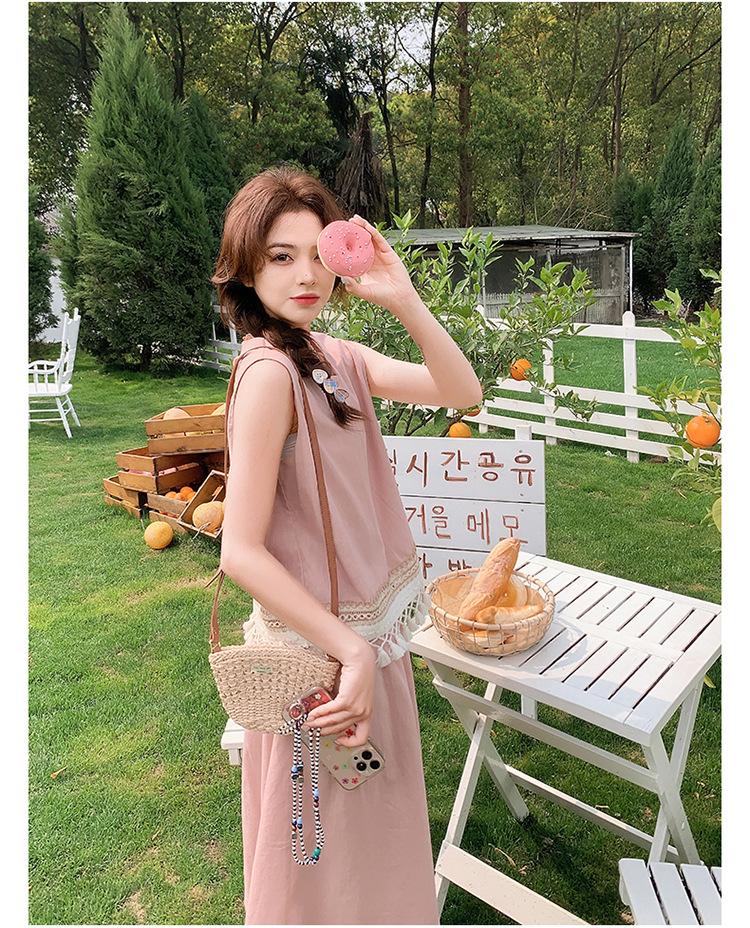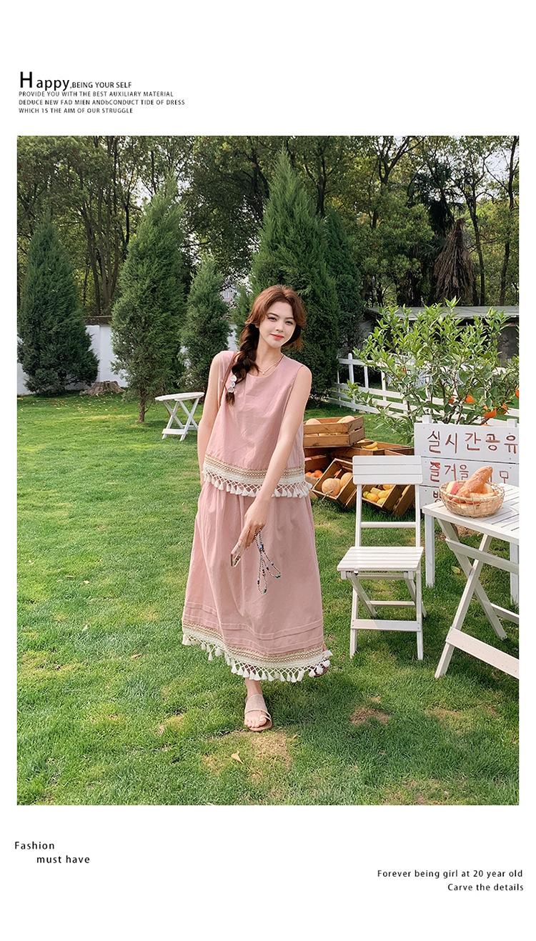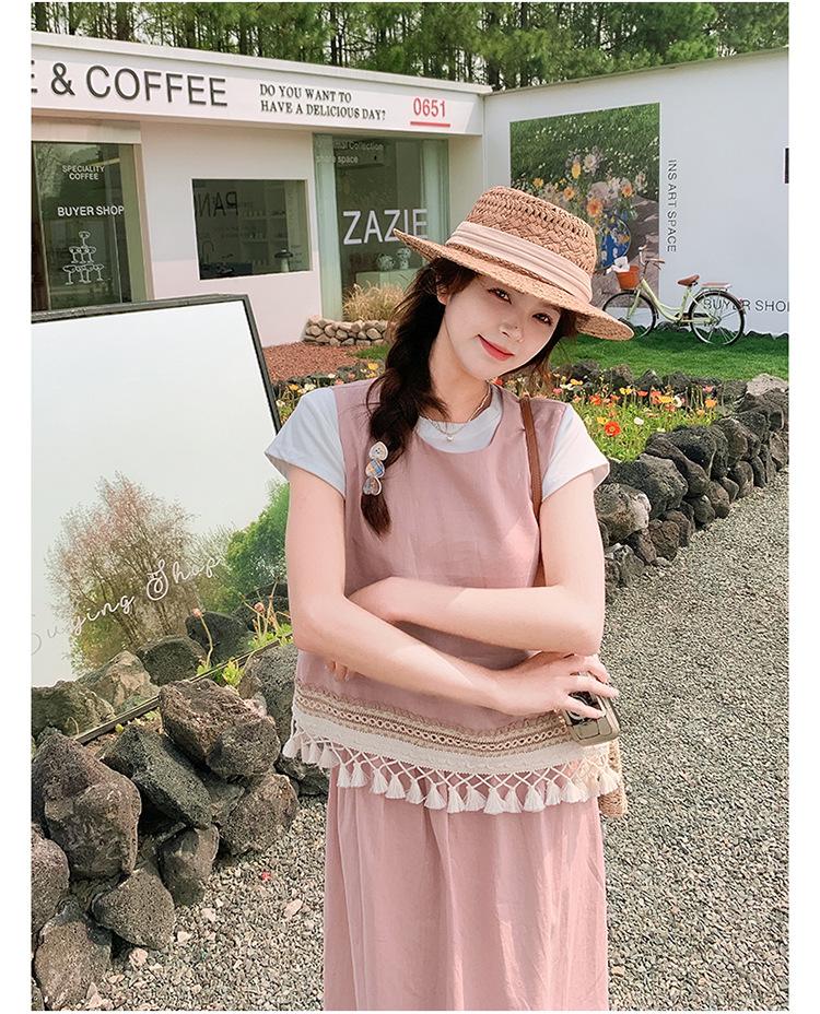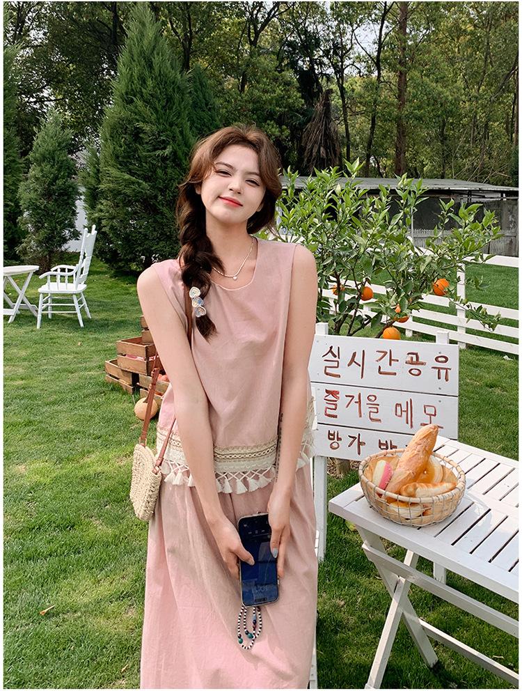 Conjunto Casual Estilo Lazy Verano 2025 Nueva Llegada Reductor de Edad Versátil Conjunto de Dos Piezas Encaje Vestido Midi