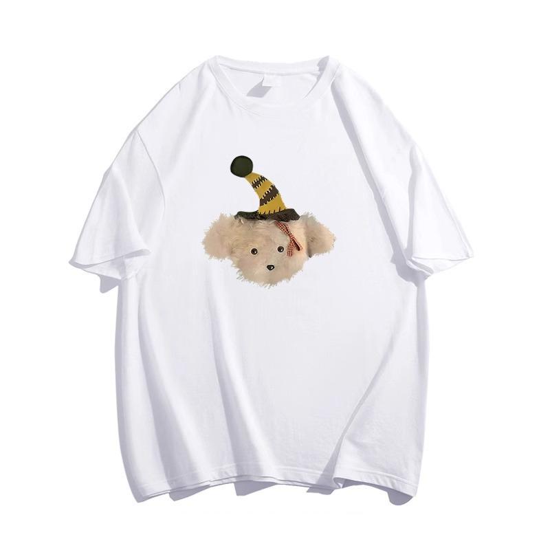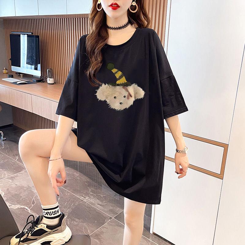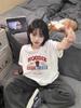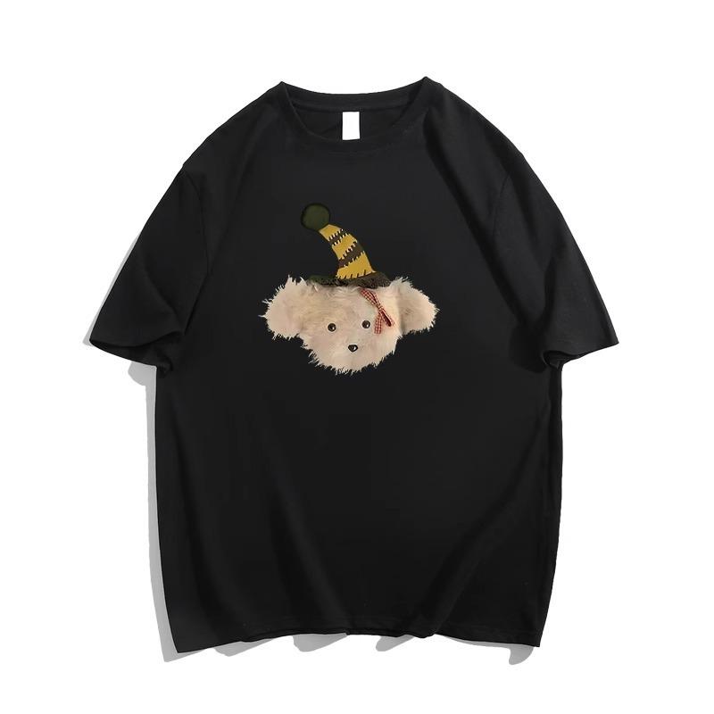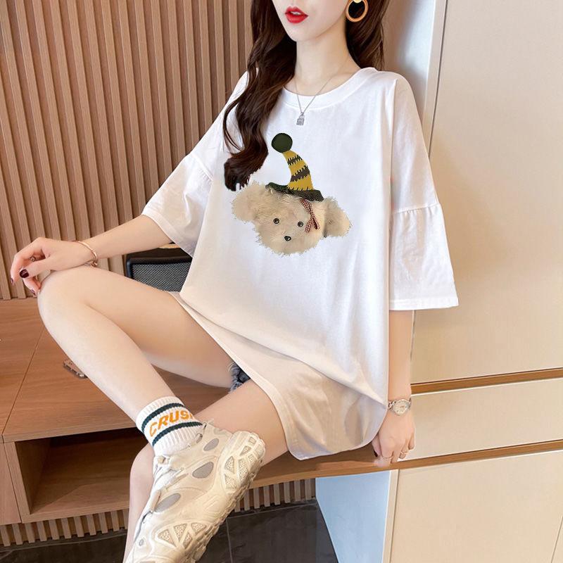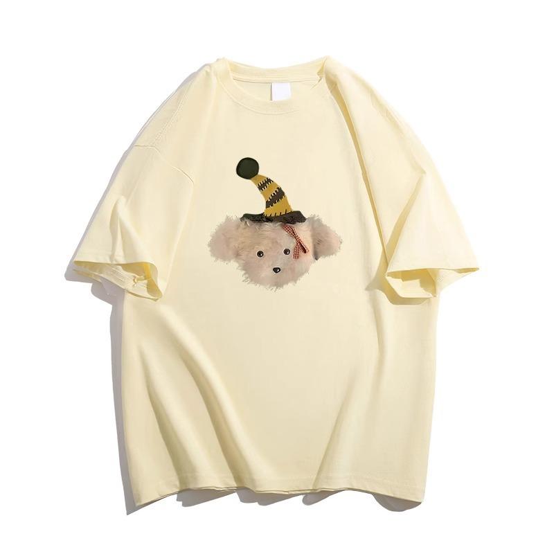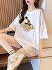 Camiseta de manga corta de algodón puro para mujer verano nueva estampado de dibujos animados diseño suelto sentido estilo perezoso top versátil coreano marea