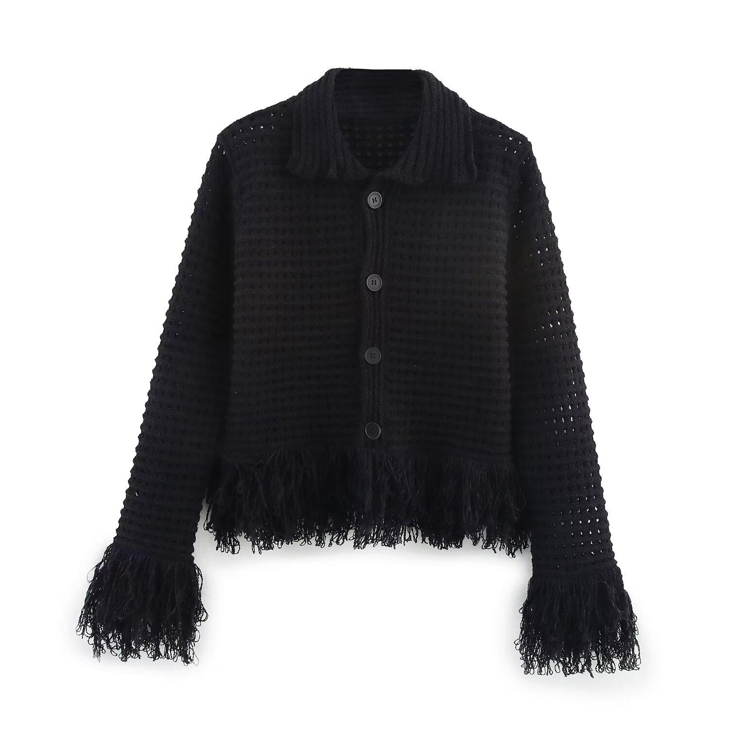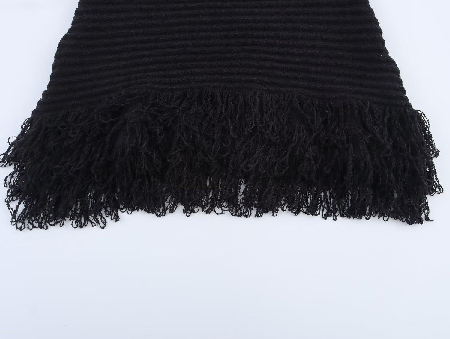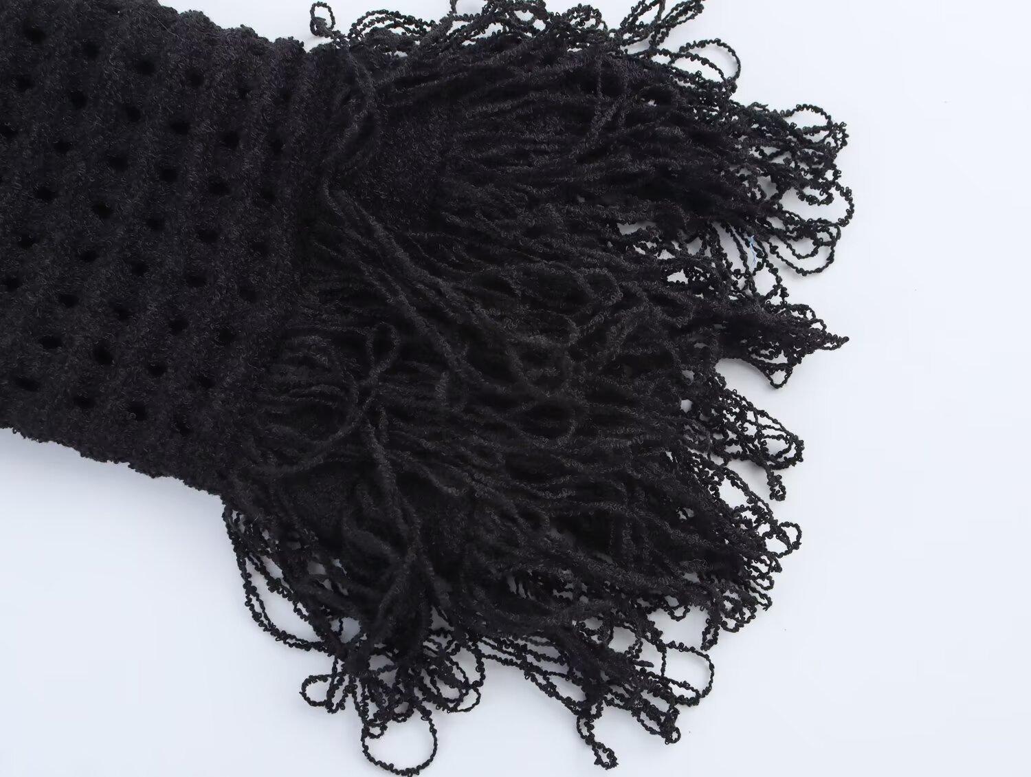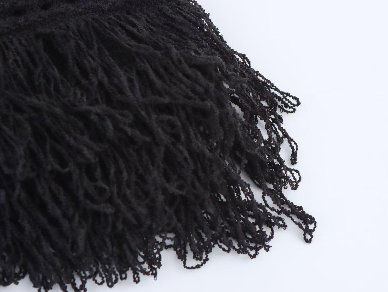 Exclusivo transfronterizo para mujeres europeas y americanas AliExpress INS explosión borla calado manga larga traje de falda ajustado