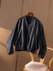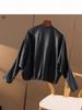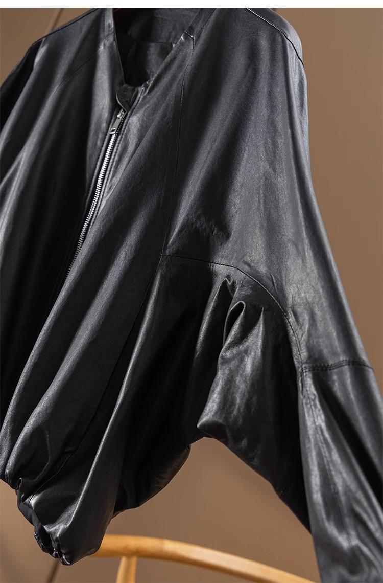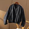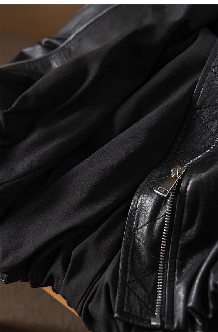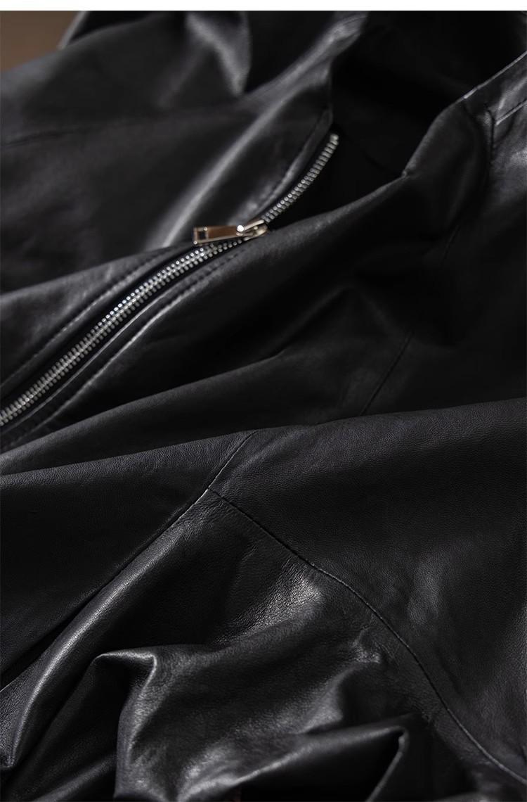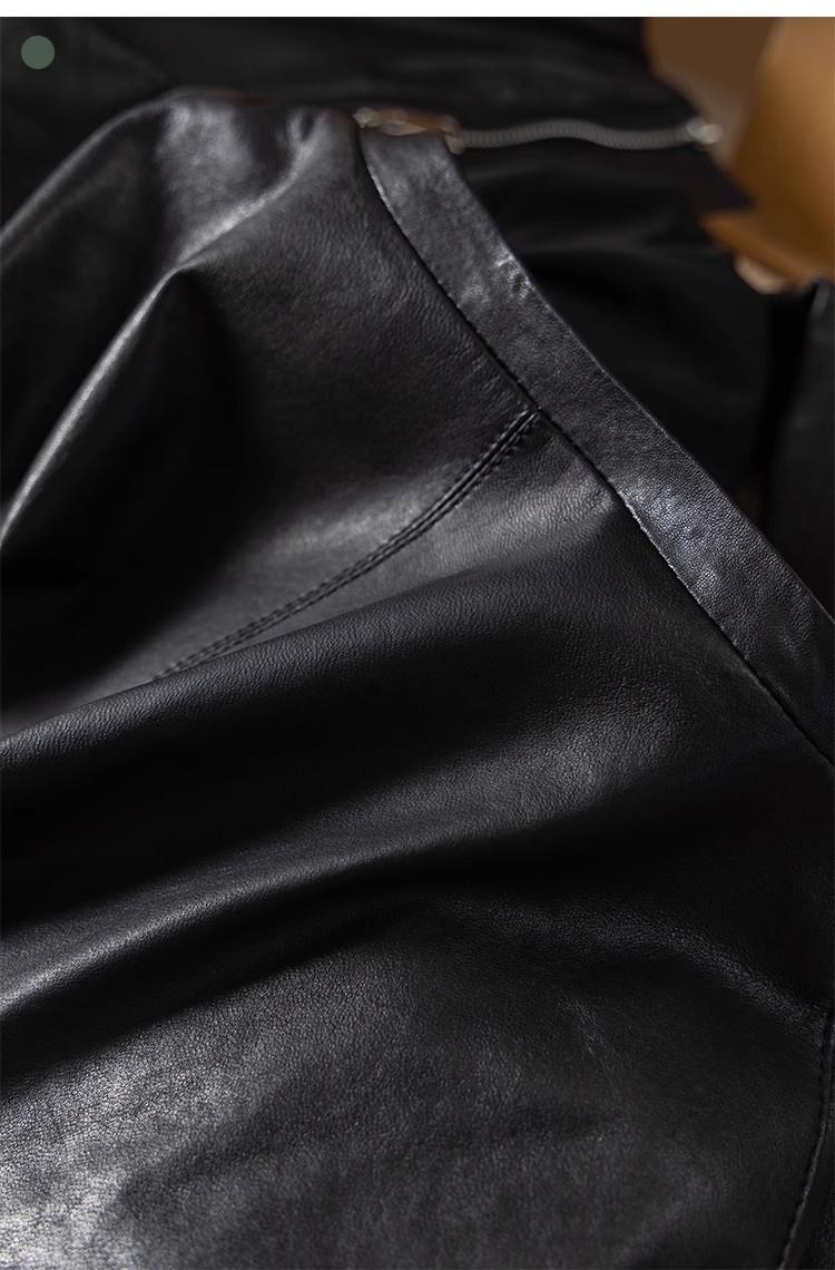 Otoño Nuevo Chaqueta Combinable Elegante Casual Cierre Cuello Redondo Piel de Oveja Cuero Genuino Chaqueta de Cuero para Mujer