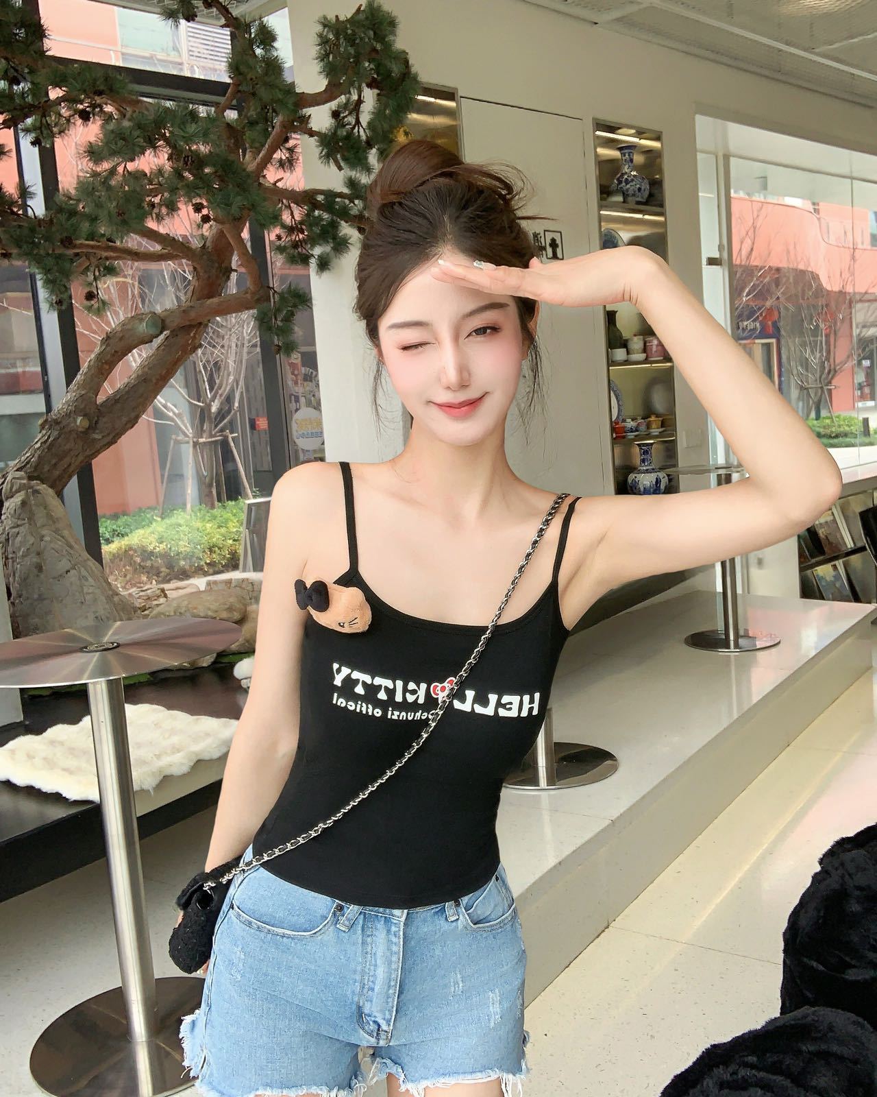 Nuevo Estilo Spice Girl Ajustado Sexy Top Corto de Tubo Dulce y Picante Camisola Floral Ropa de Mujer Top Ajustado con Almohadilla en el Pecho