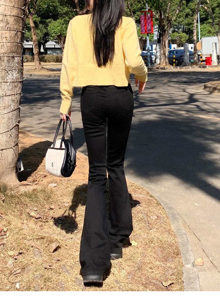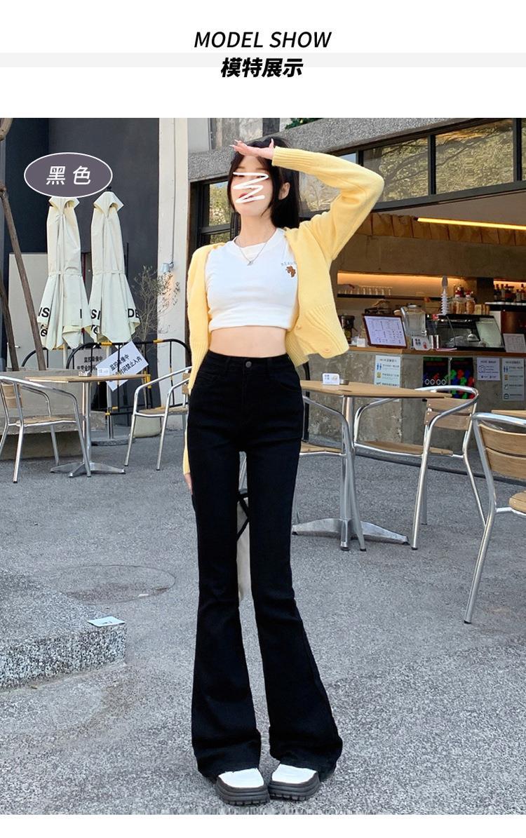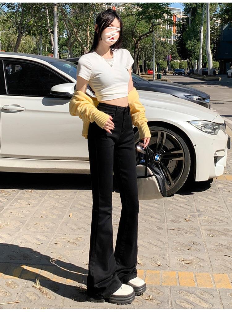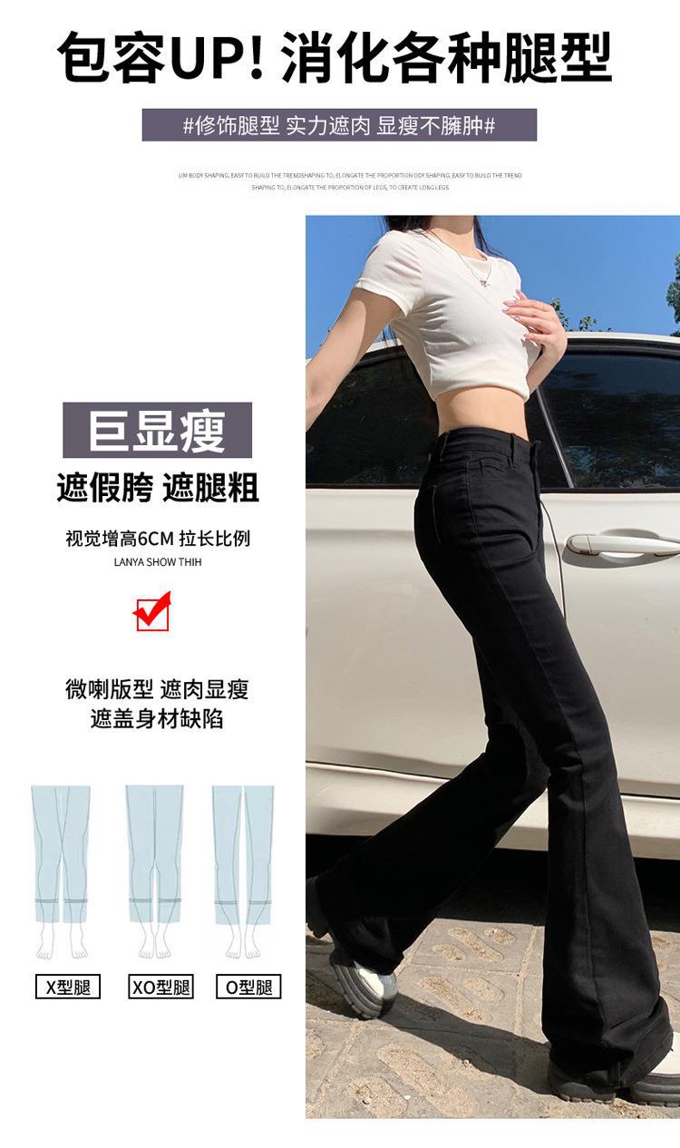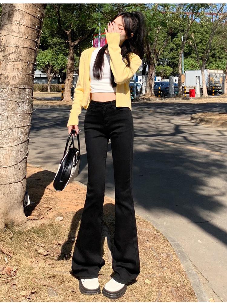 Jeans mujer otoño delgados chica hot cintura alta negros acampanados pierna ancha corte slim adelgazantes petite micro acampanados