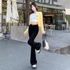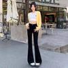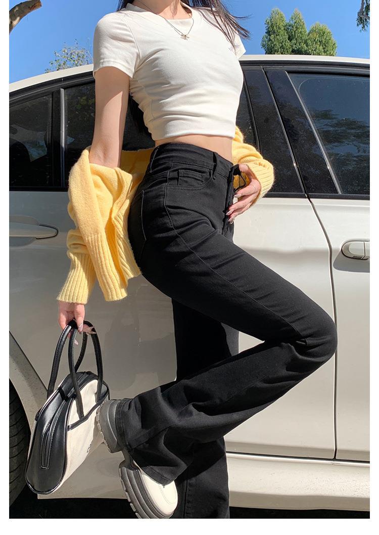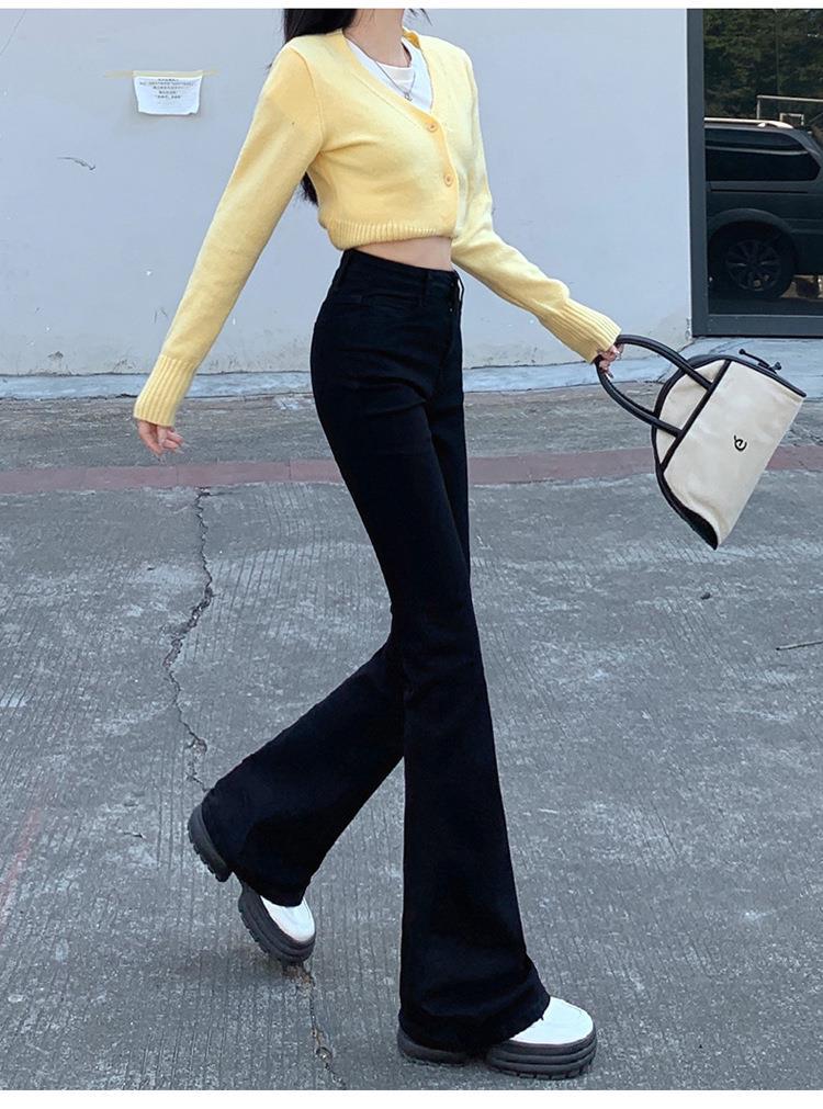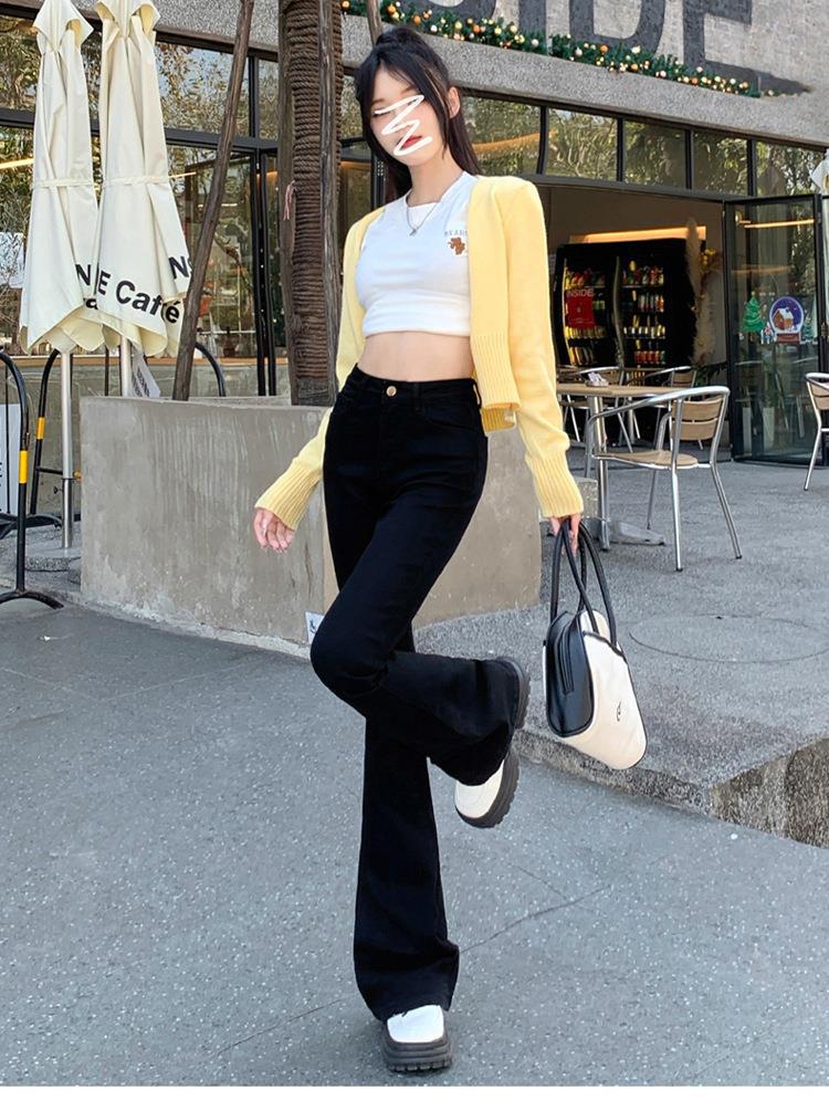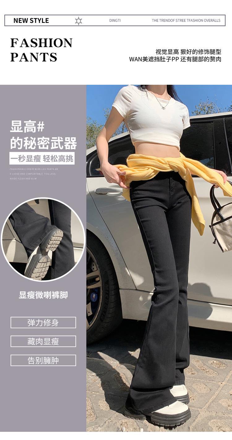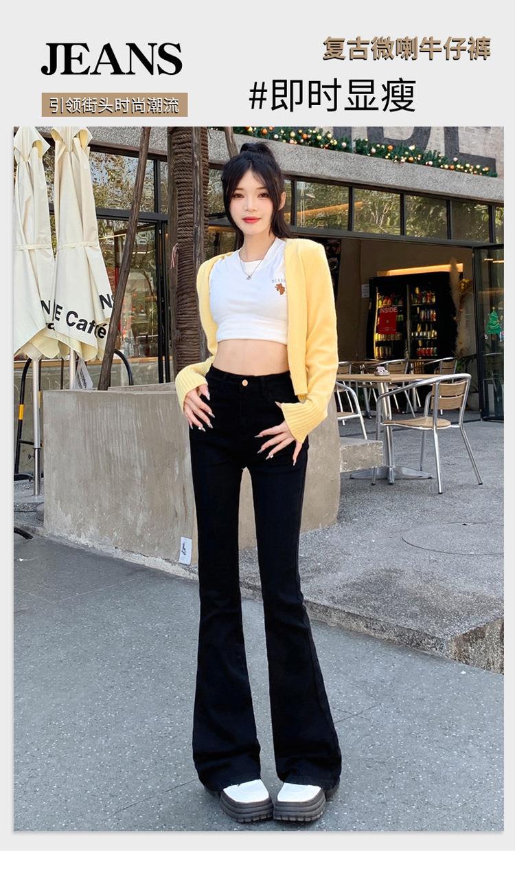 Jeans mujer otoño delgados chica hot cintura alta negros acampanados pierna ancha corte slim adelgazantes petite micro acampanados