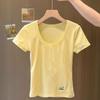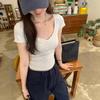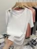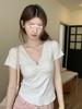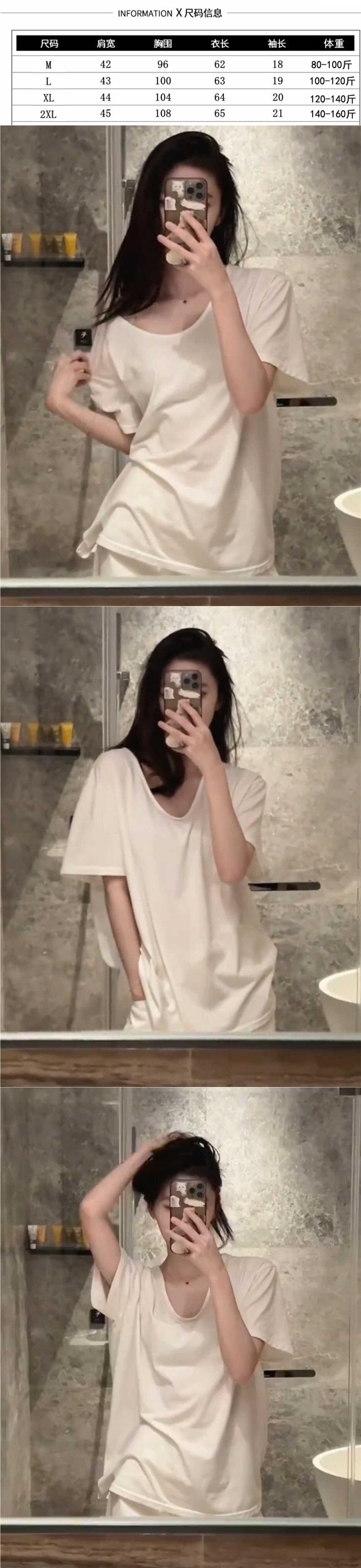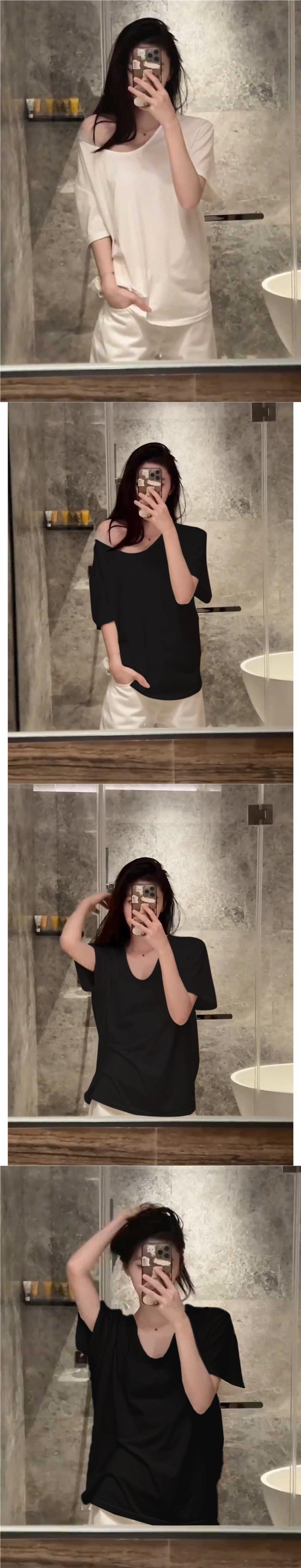 Playera de manga corta con cuello en V estilo coreano de hombro recto para mujer verano 2025 nueva holgada estilo coreano viento perezoso top de alta gama