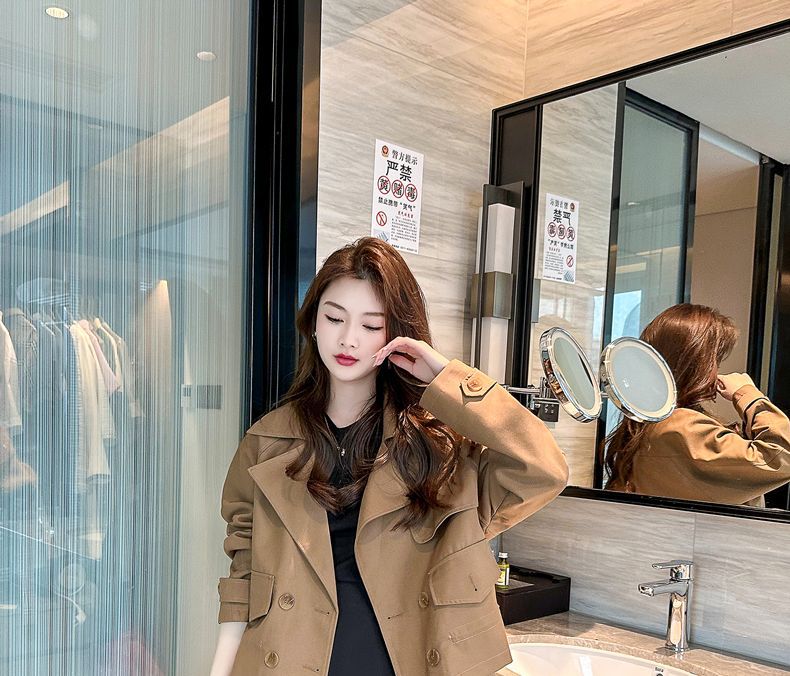 Abrigo Trench Corto para Mujer 2025 Primavera y Otoño Nuevo Estilo Coreano Suelto Petite Moda Temperamento Top de Alta Gama Moderno