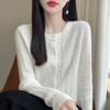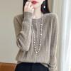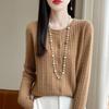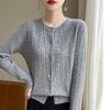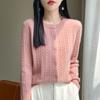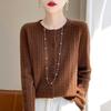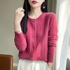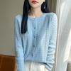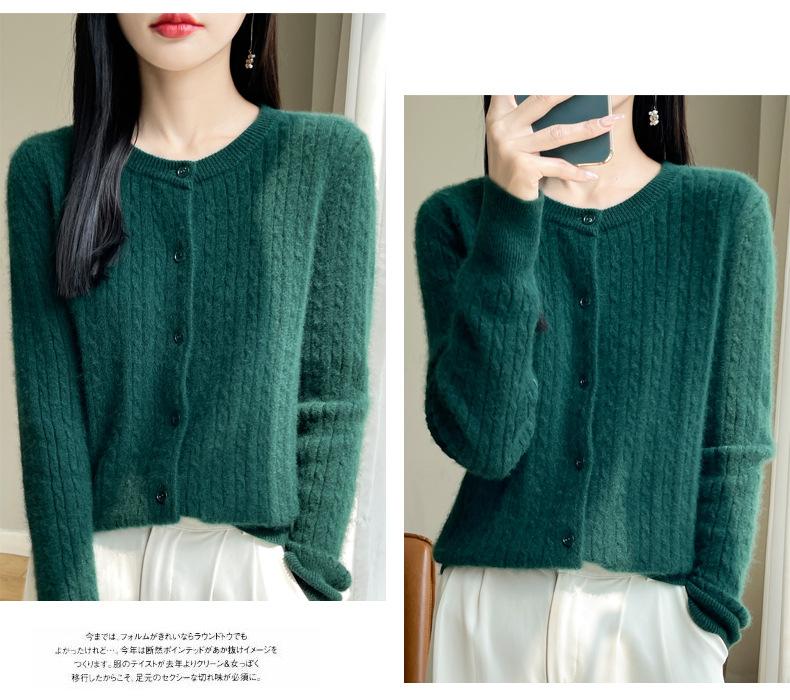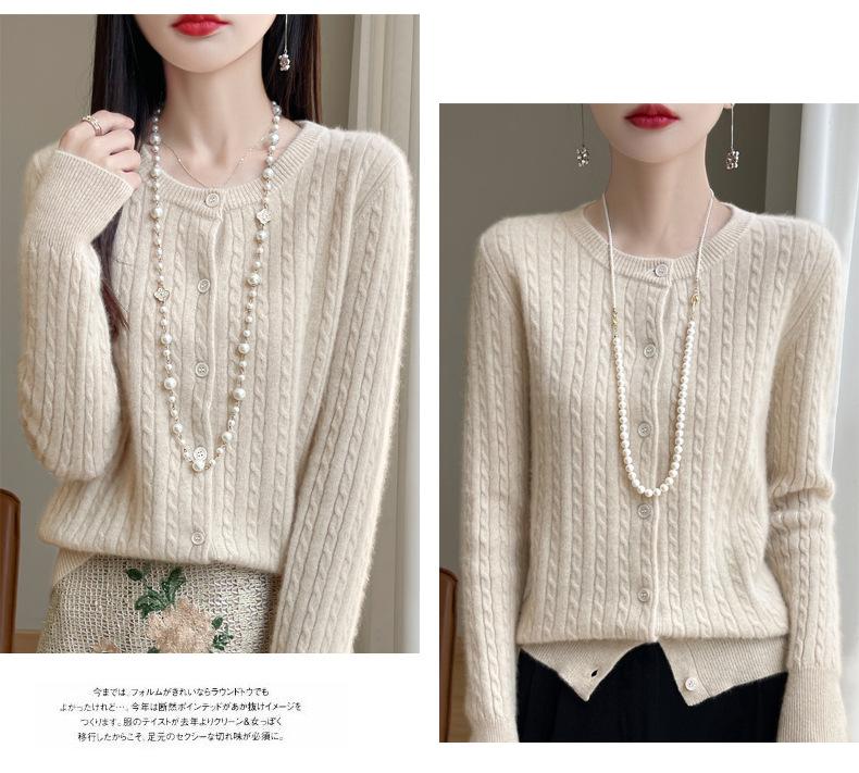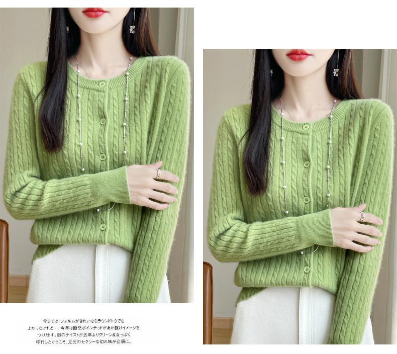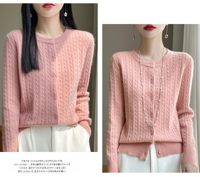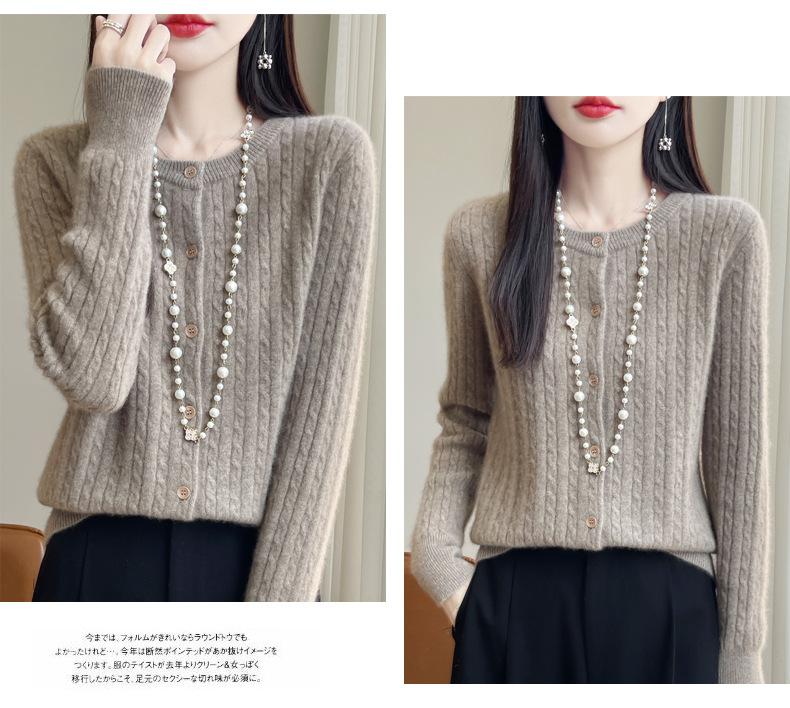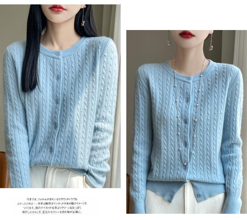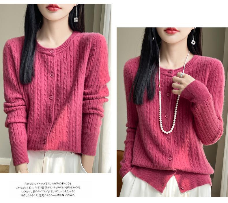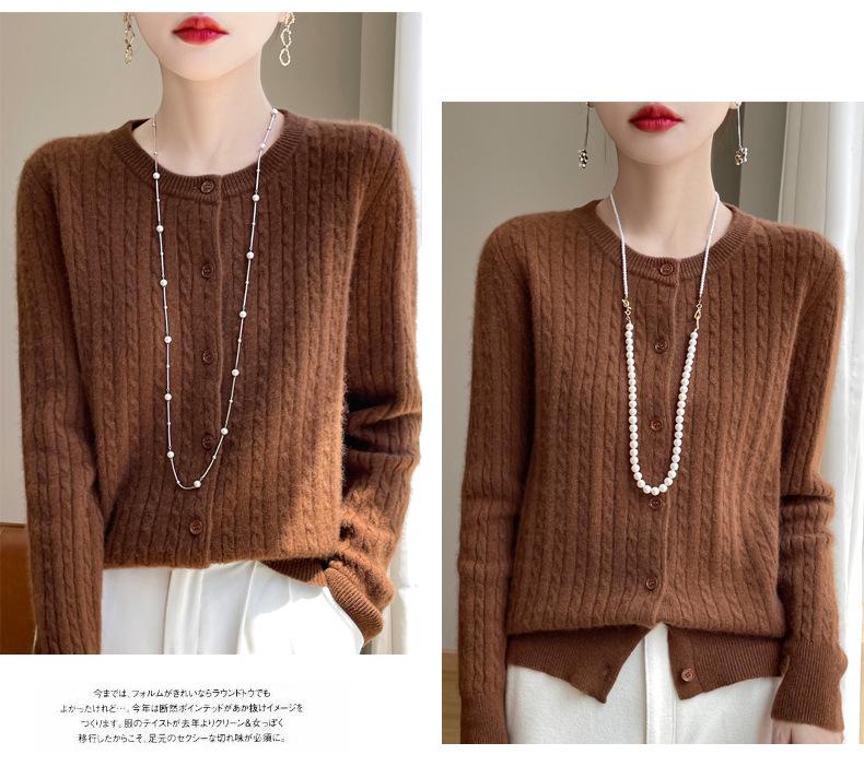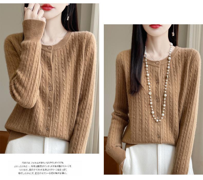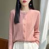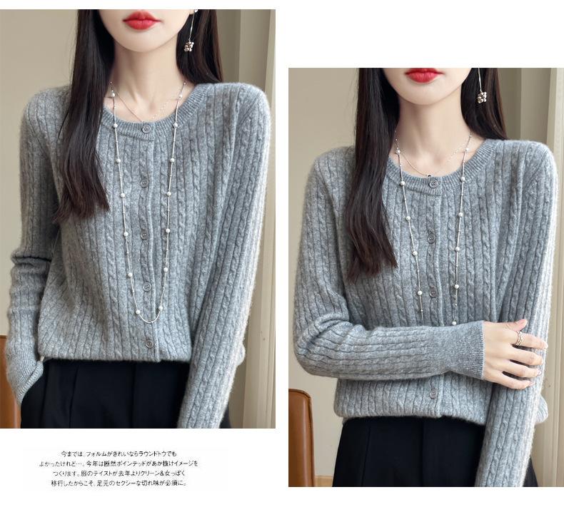 Nuevo Cárdigan de Punto de Lana Pura de Cuello Redondo Otoño/Invierno 2025 Manga Larga para Mujer Tejido de Cable Suave Cálido Top Ropa Exterior