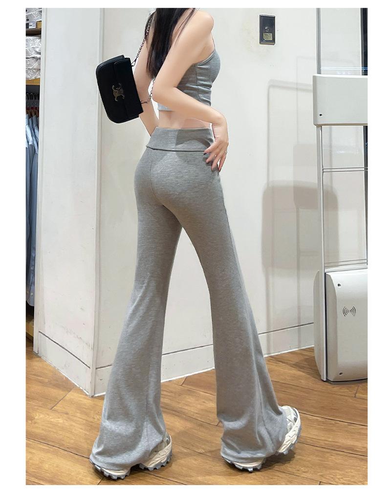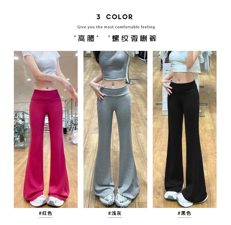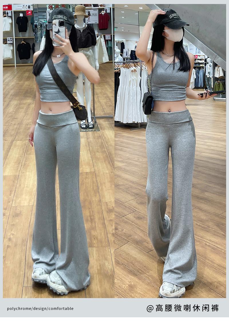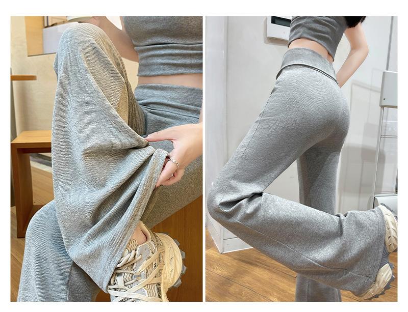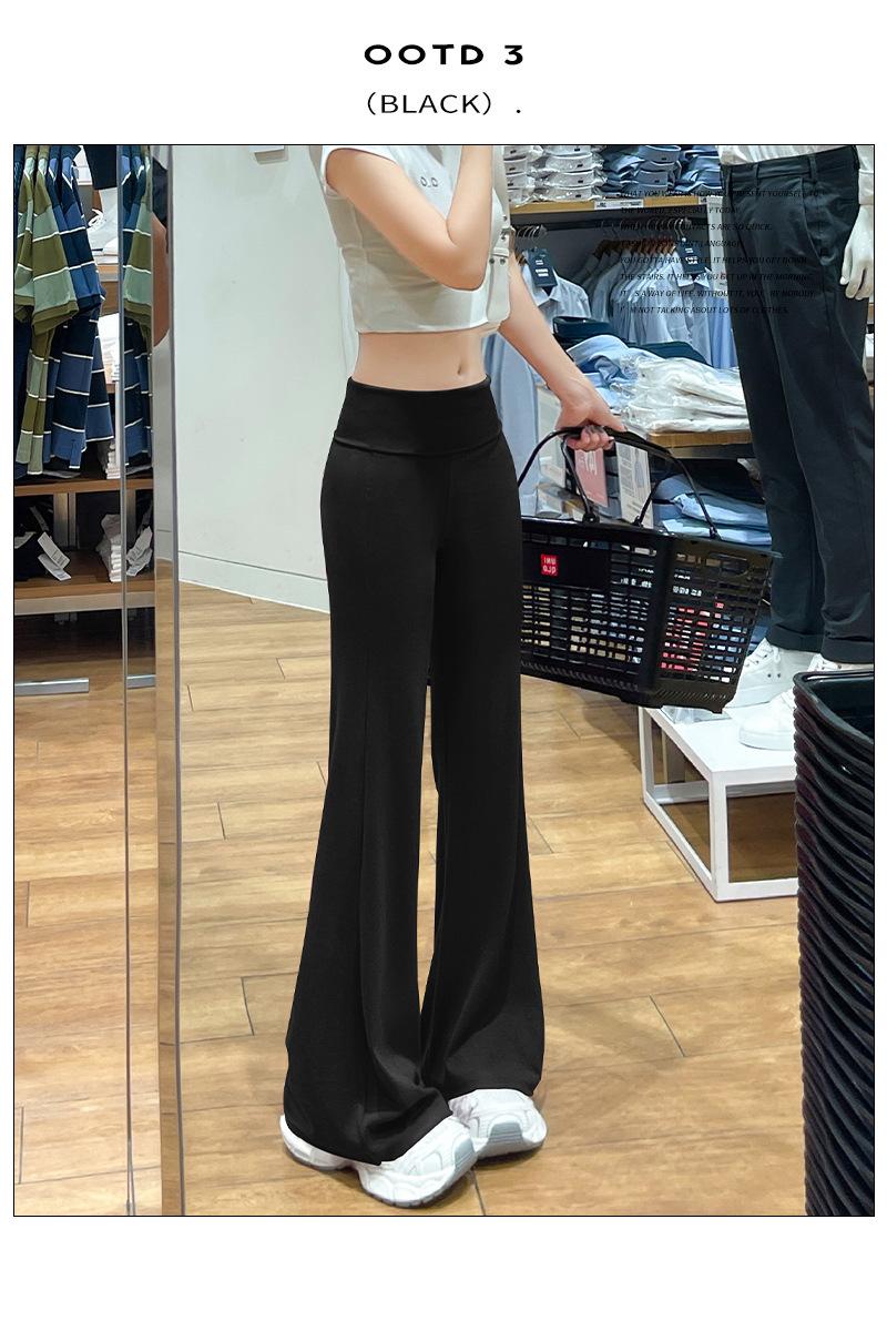 Pantalones de Pierna Ancha de Cintura Torneada para Mujer, Mangas Finas de Verano, Ajuste Delgado Elástico Look Adelgazante Deportivo Acampanados, Pantalones Casuales de Yoga