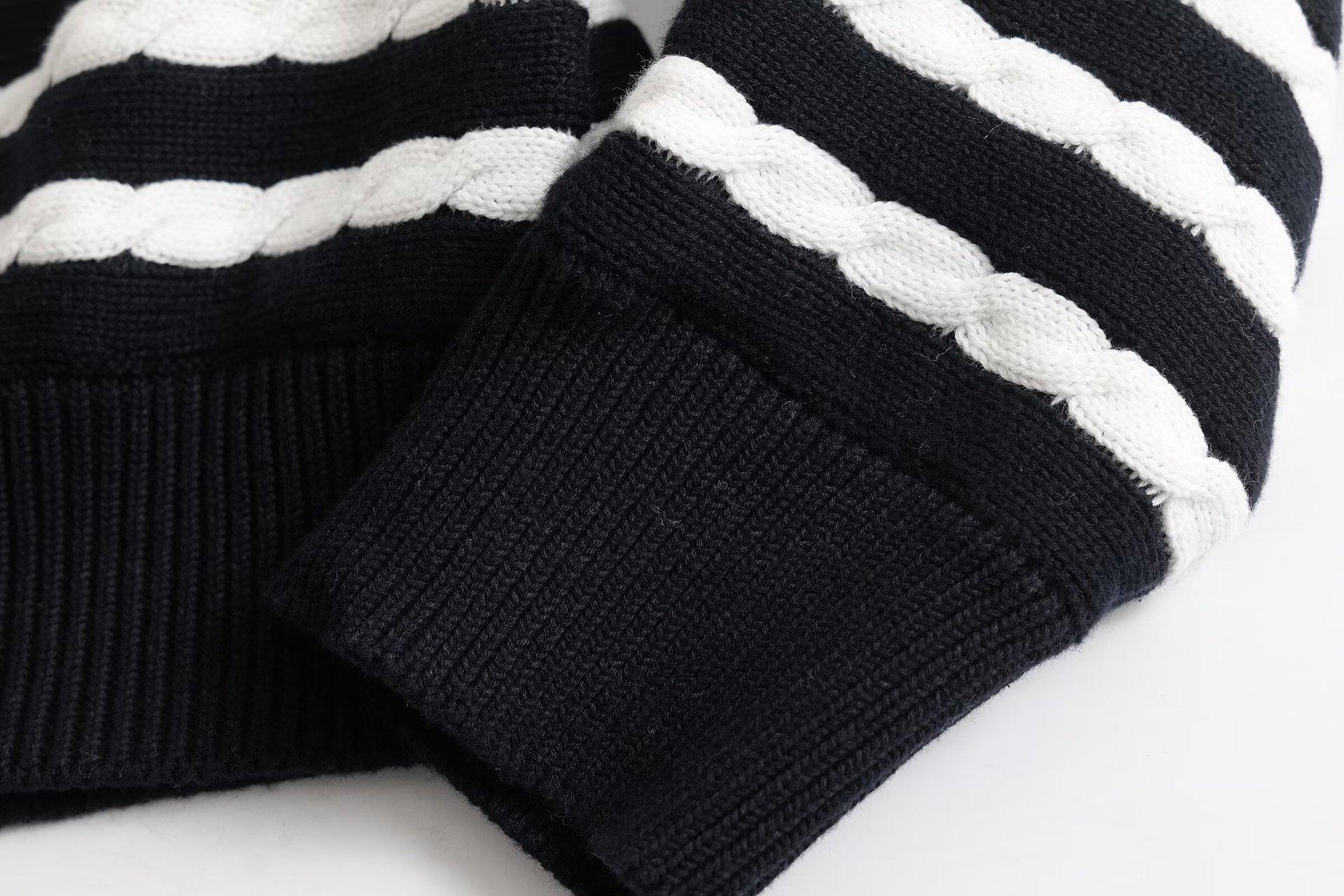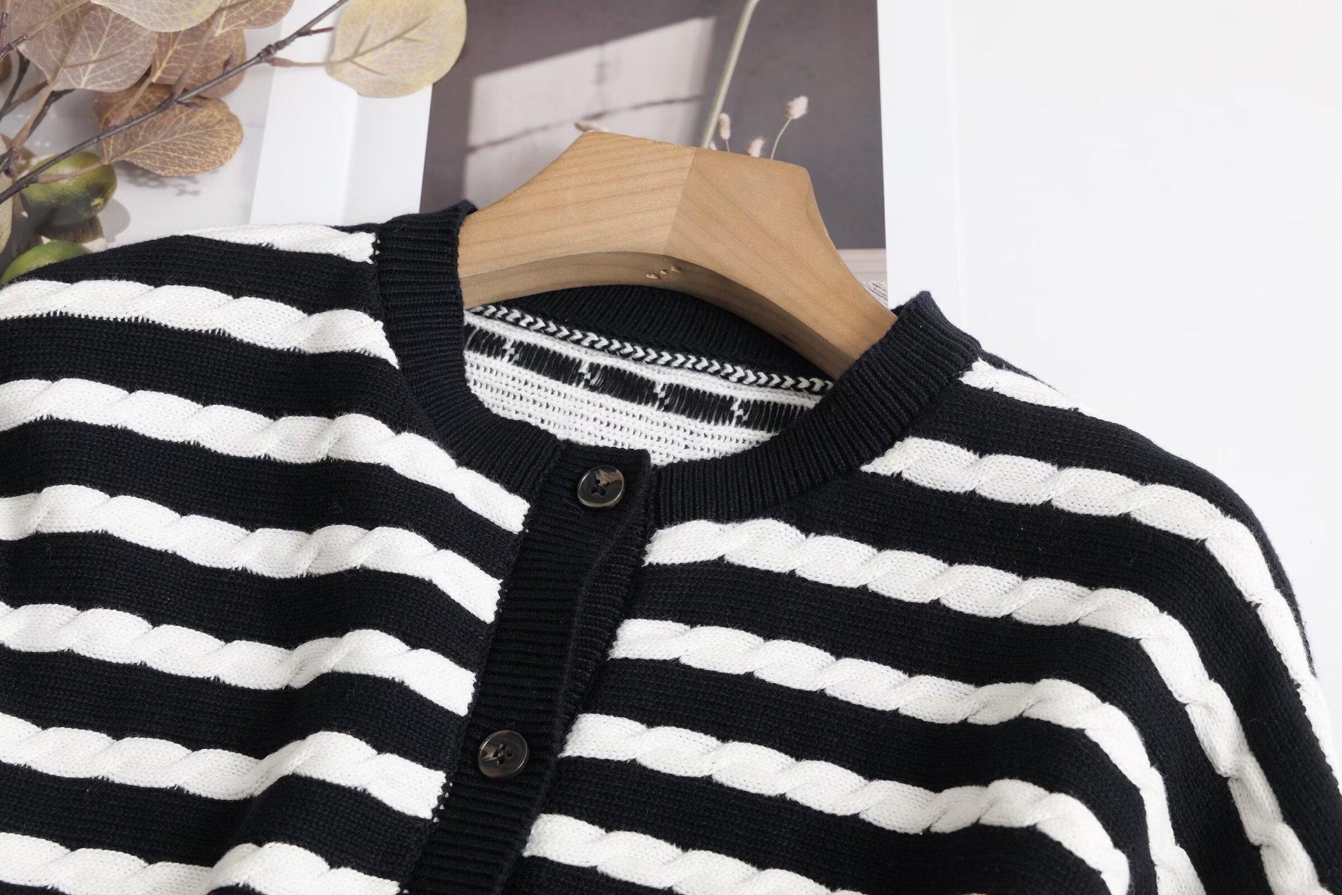 M estilo transfronterizo europeo y americano 2025 nueva moda temperamento ropa de mujer al por mayor cárdigan de punto trenzado a rayas 05767575401