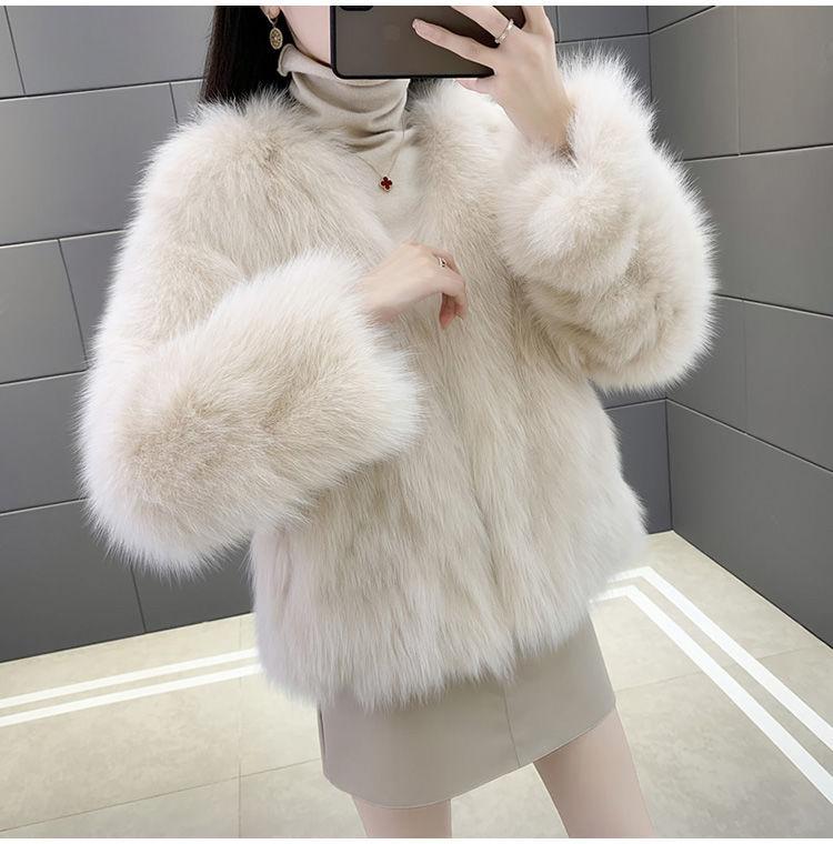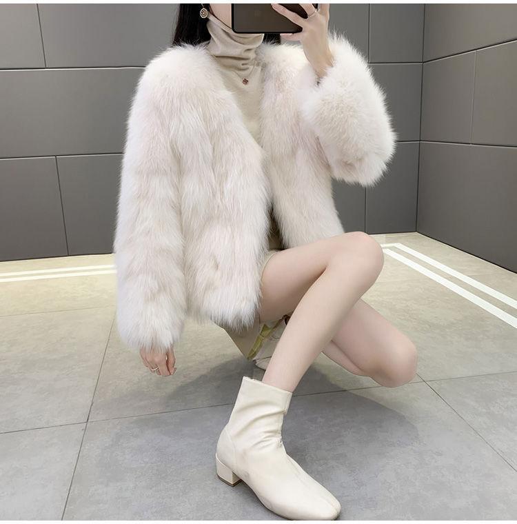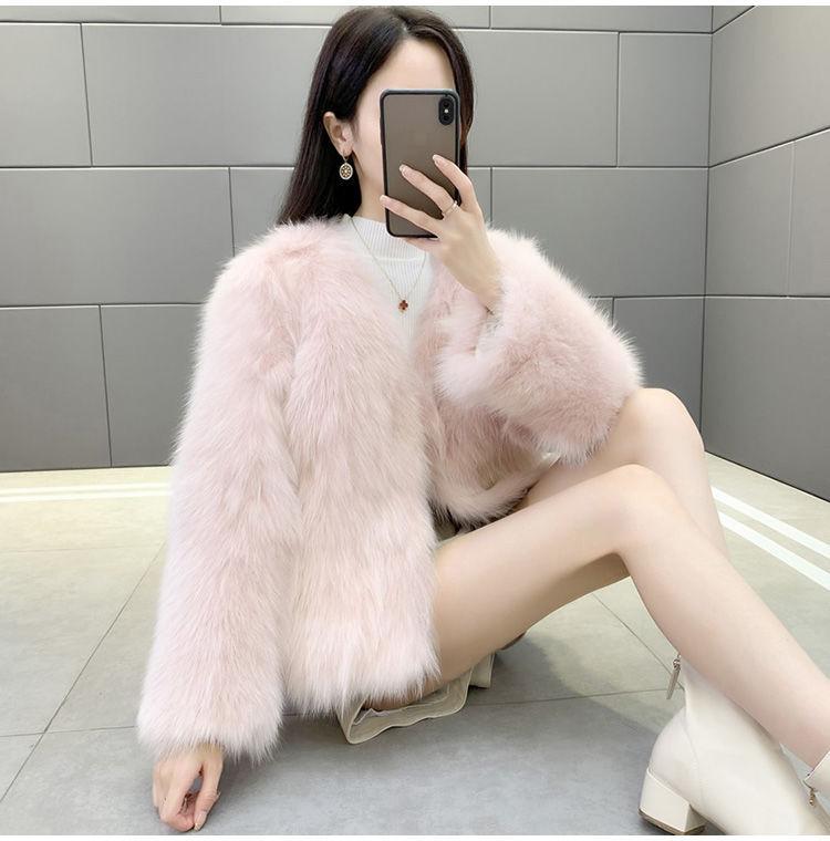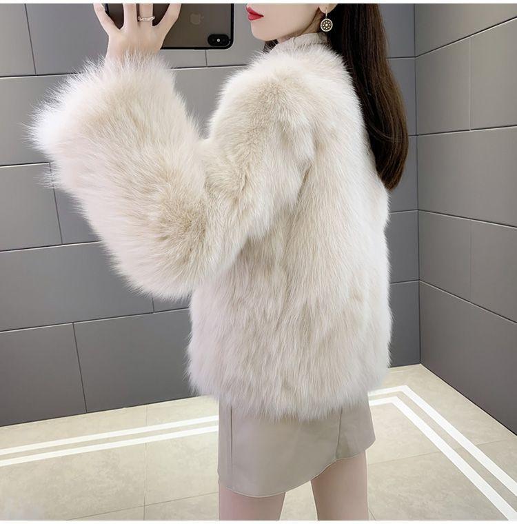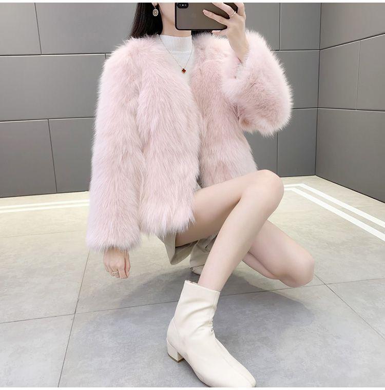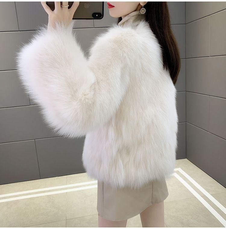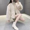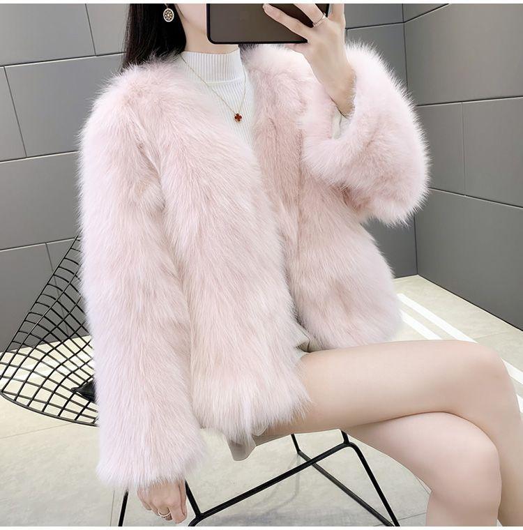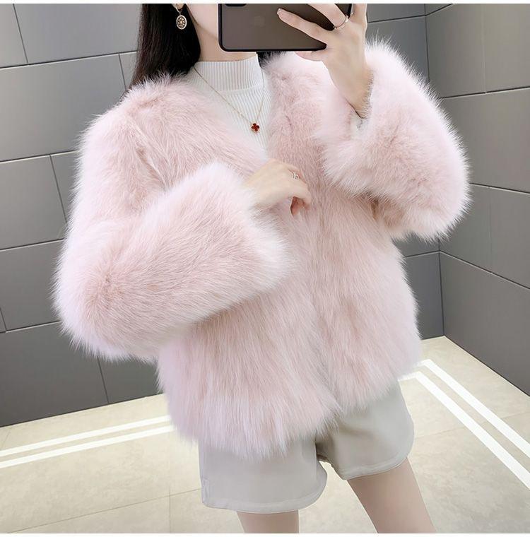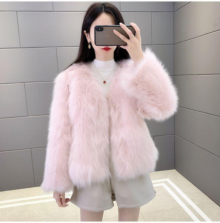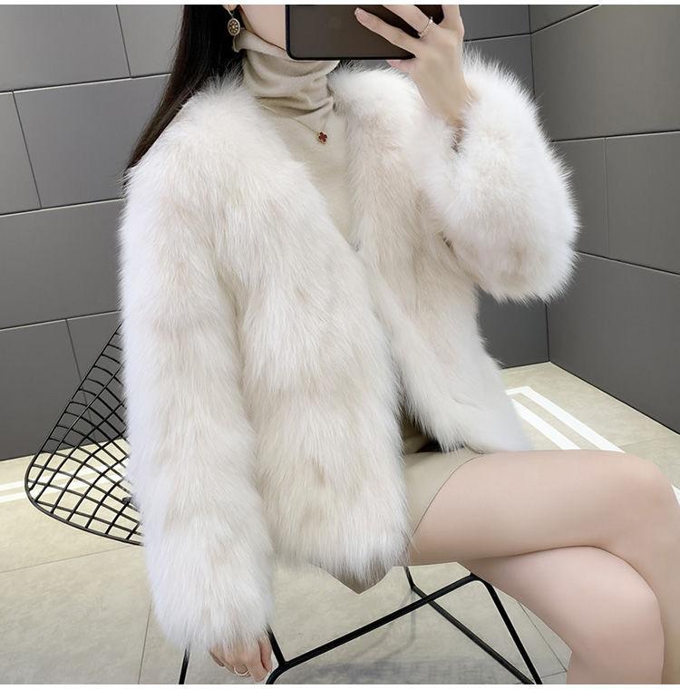 Abrigo de Piel Sintética de Zorro Nuevo 2025 para Mujer, Abrigo de Invierno Grueso con Cuello en V Pequeño que Afina la Figura, Versátil