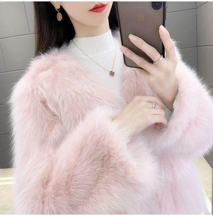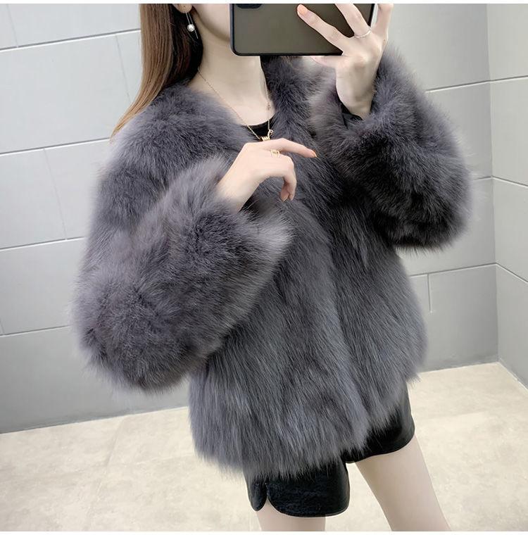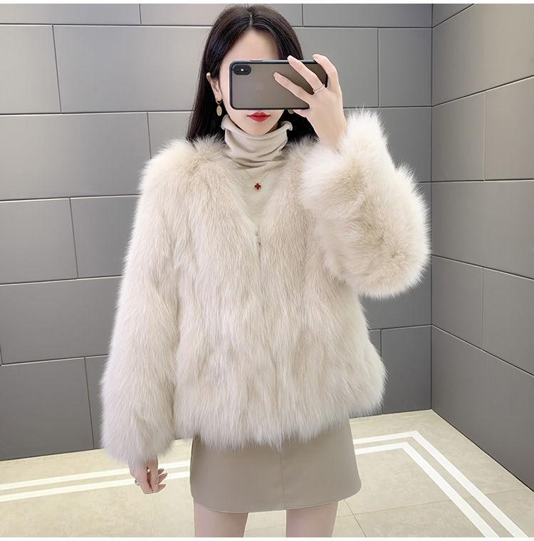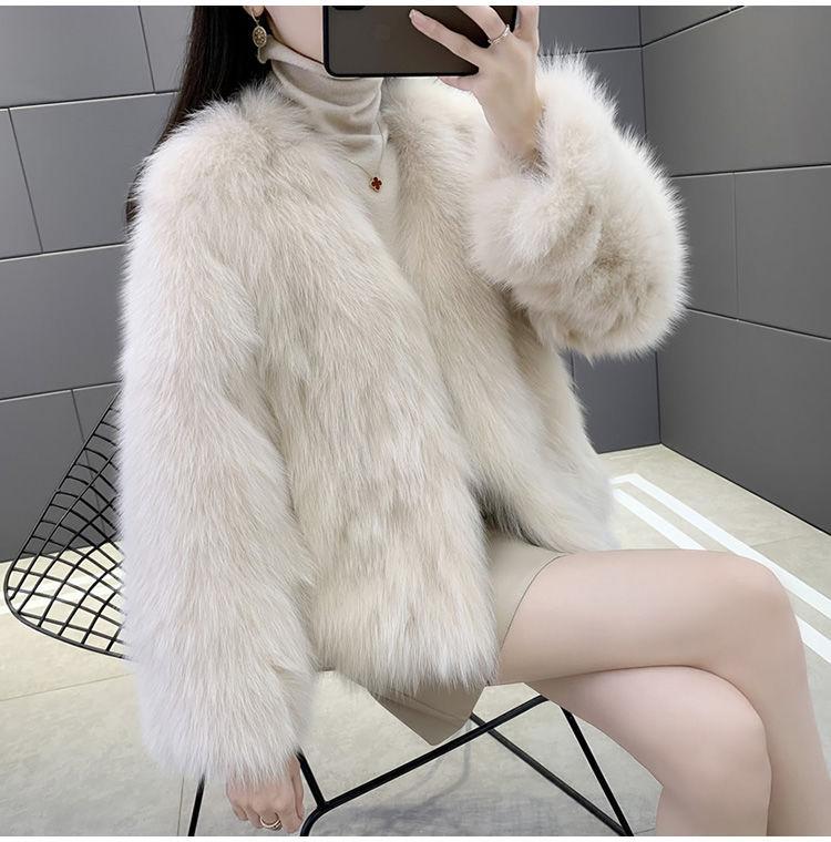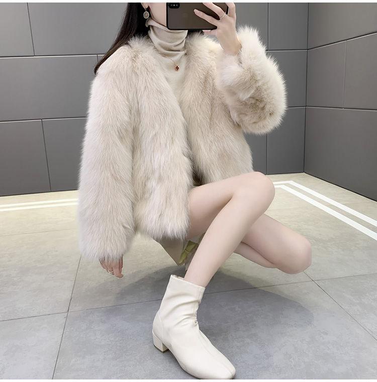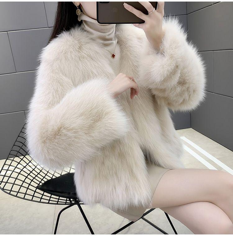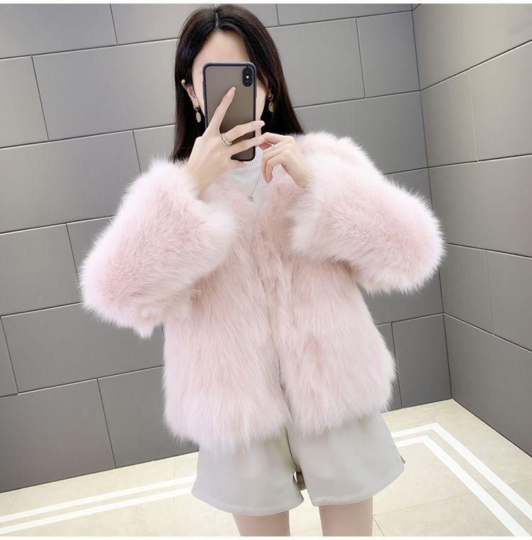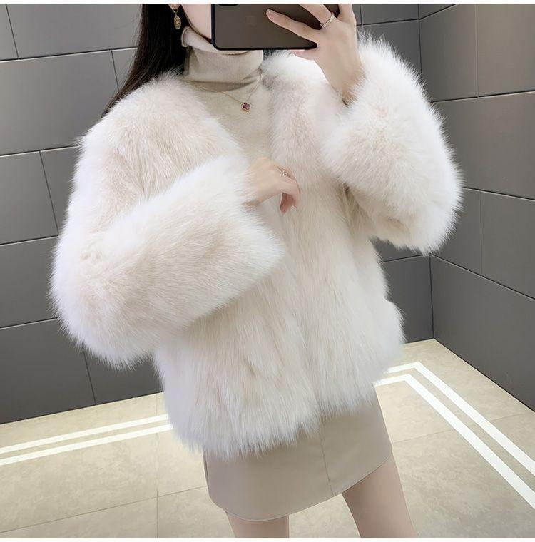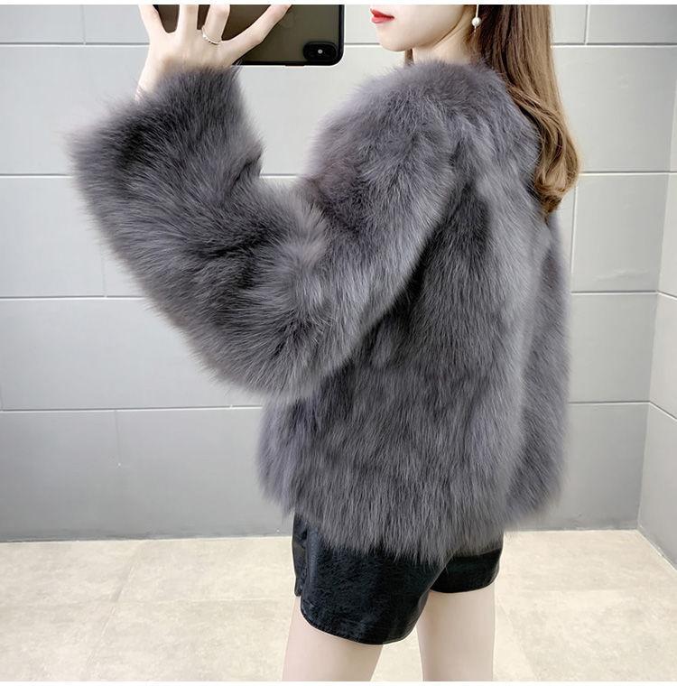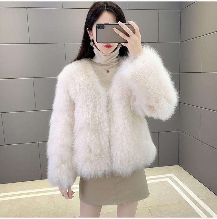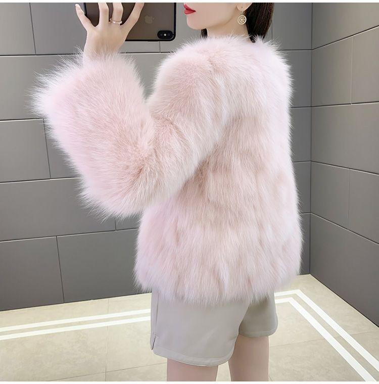 Abrigo de Piel Sintética de Zorro Nuevo 2025 para Mujer, Abrigo de Invierno Grueso con Cuello en V Pequeño que Afina la Figura, Versátil