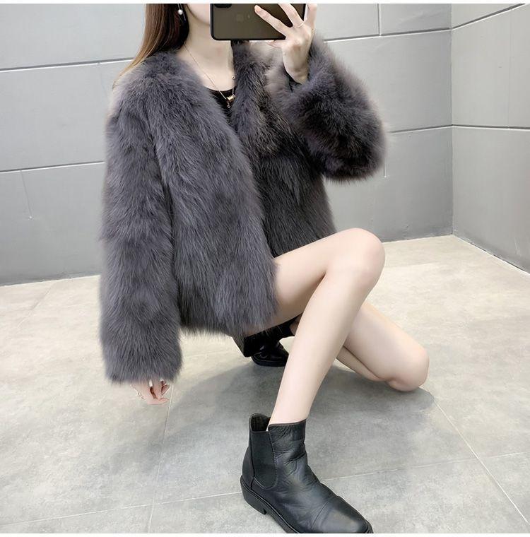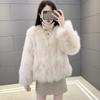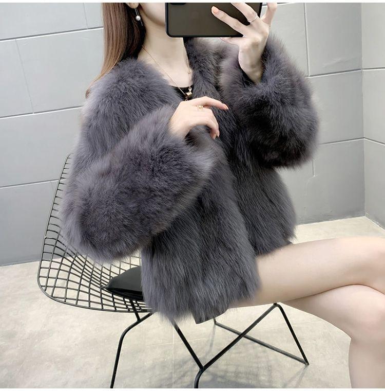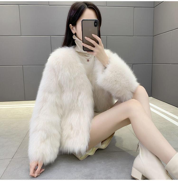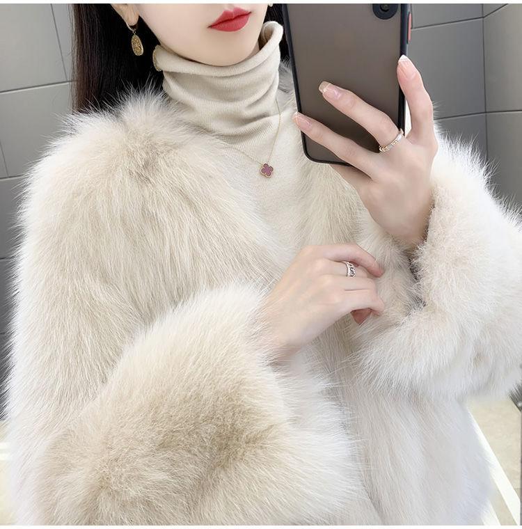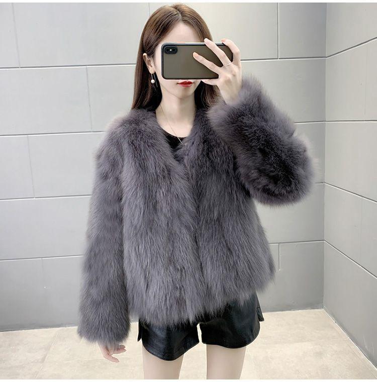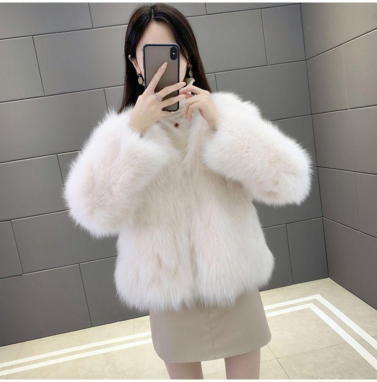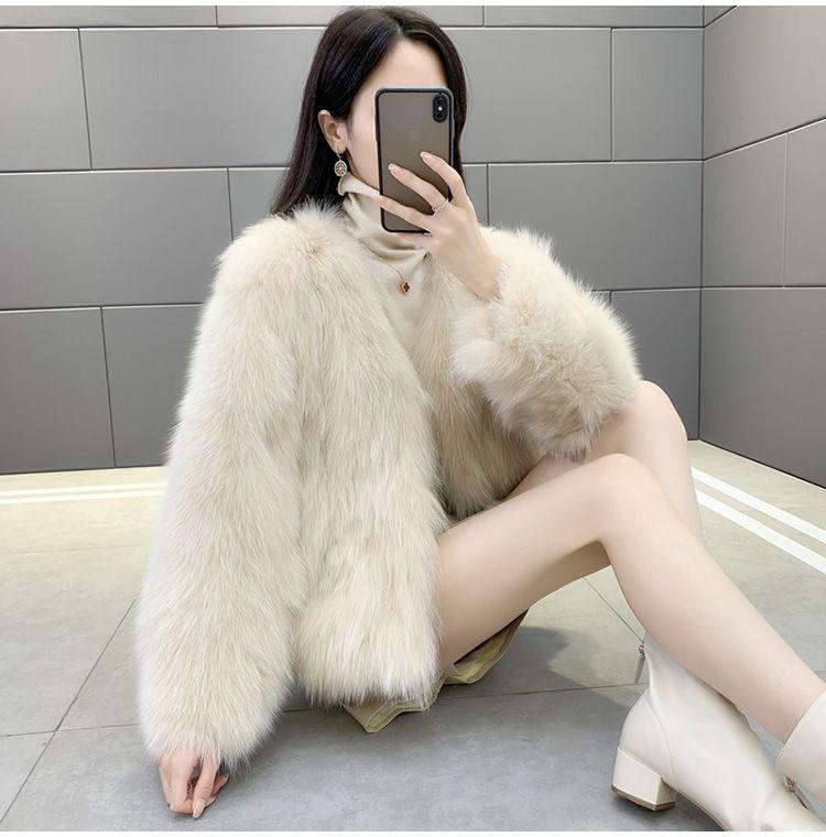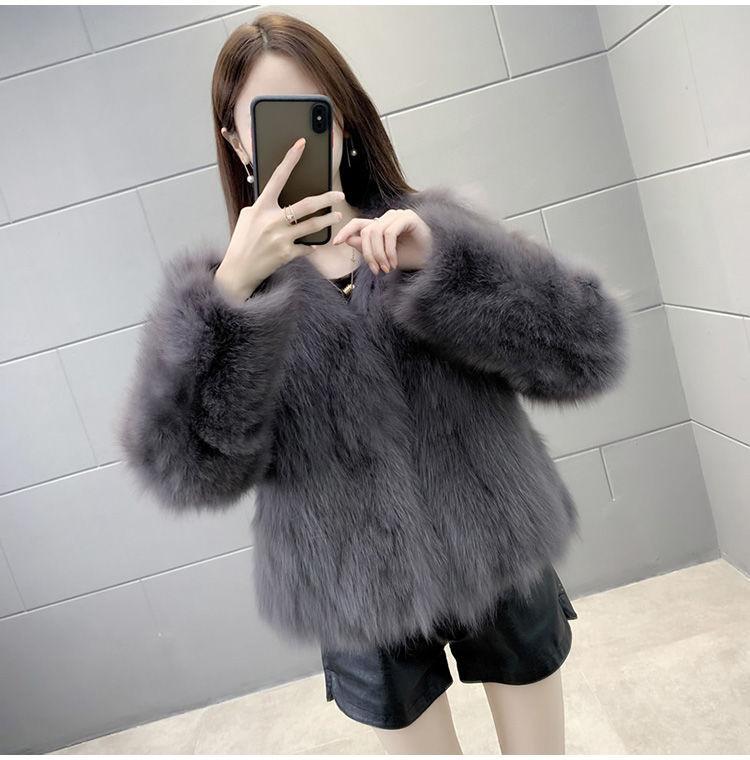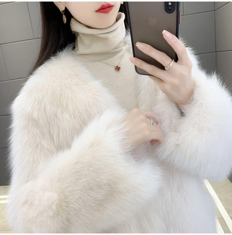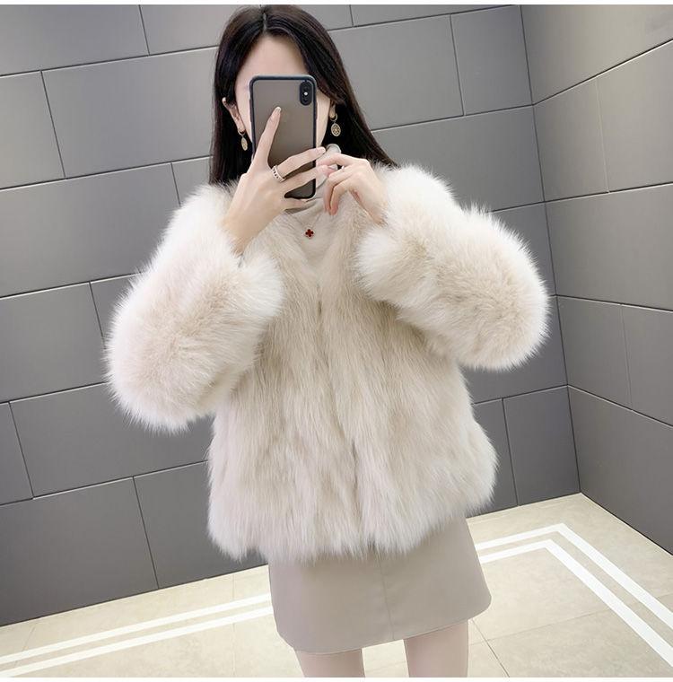 Abrigo de Piel Sintética de Zorro Nuevo 2025 para Mujer, Abrigo de Invierno Grueso con Cuello en V Pequeño que Afina la Figura, Versátil