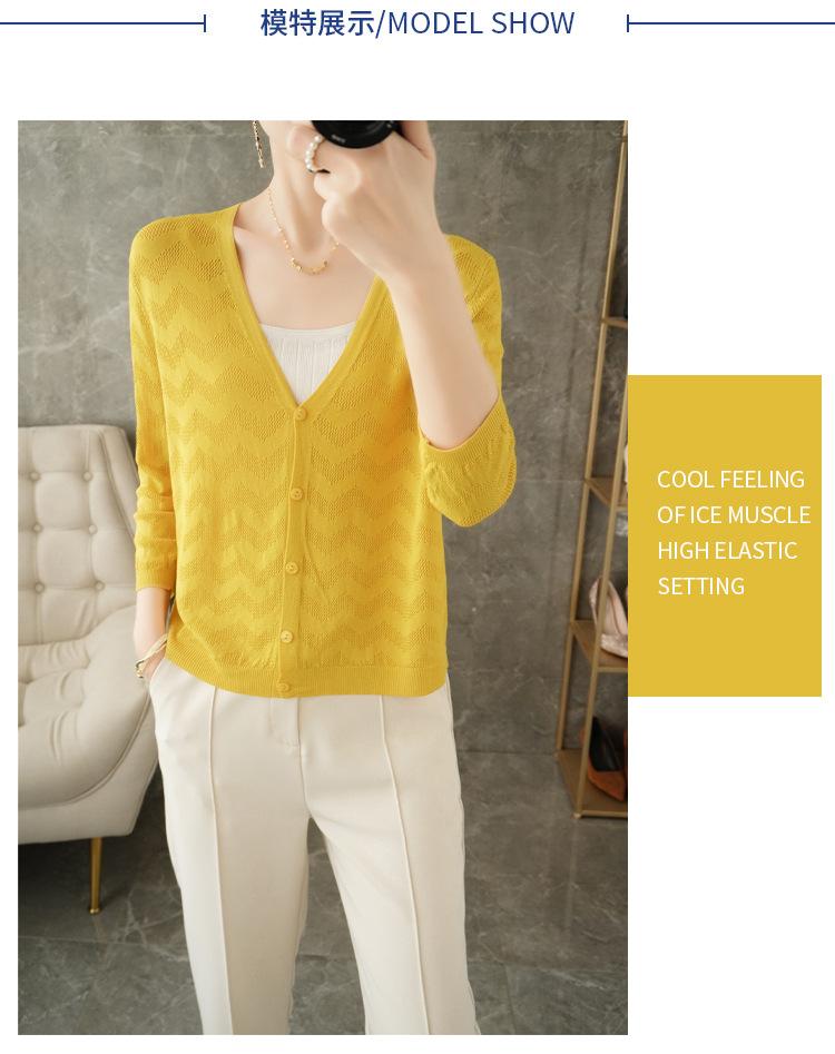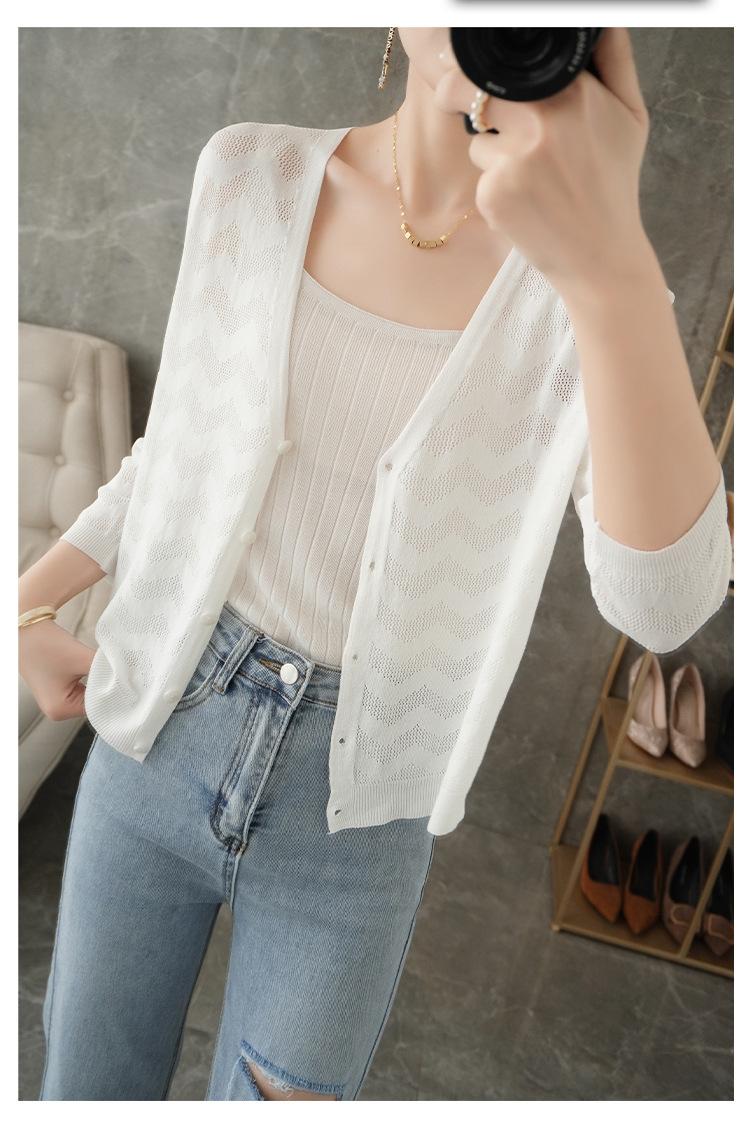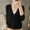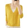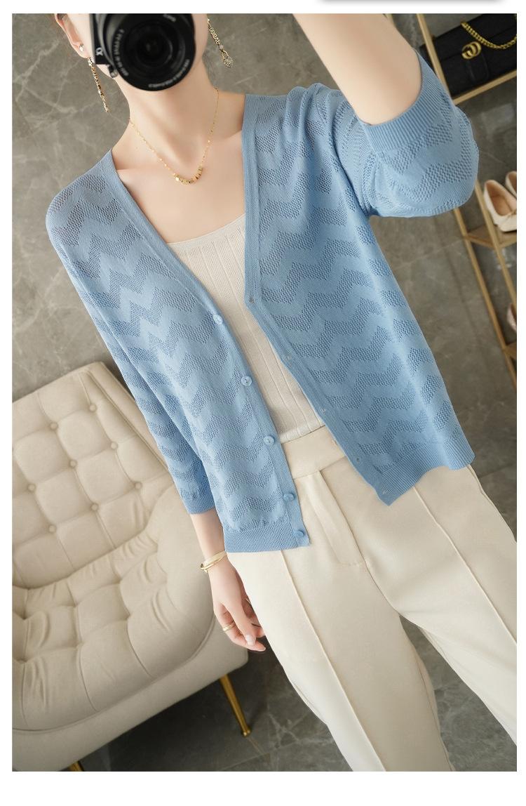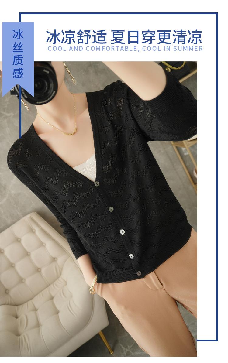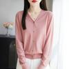 Cárdigan de Punto Nuevo de Primavera y Verano 2025 con Cuello en V Manga Larga Suelto Delgado Ondulado Chaqueta Elegante para Mujer