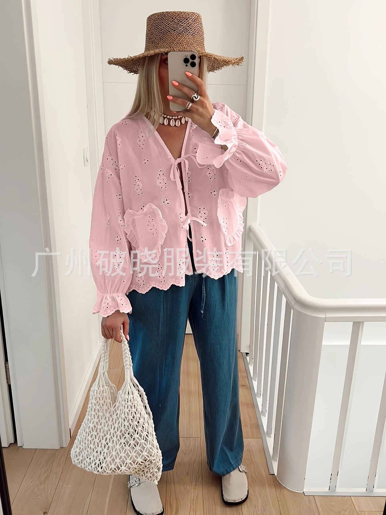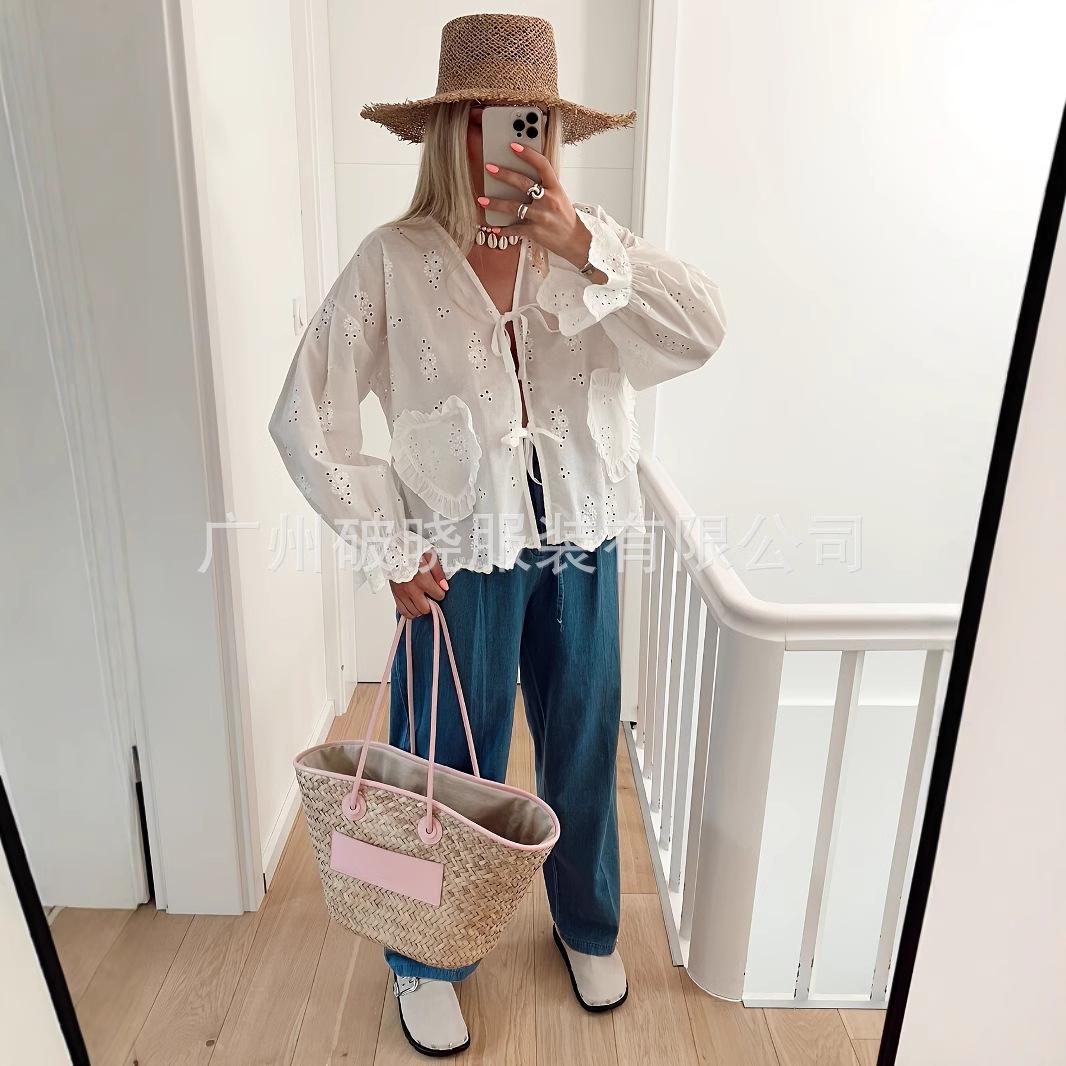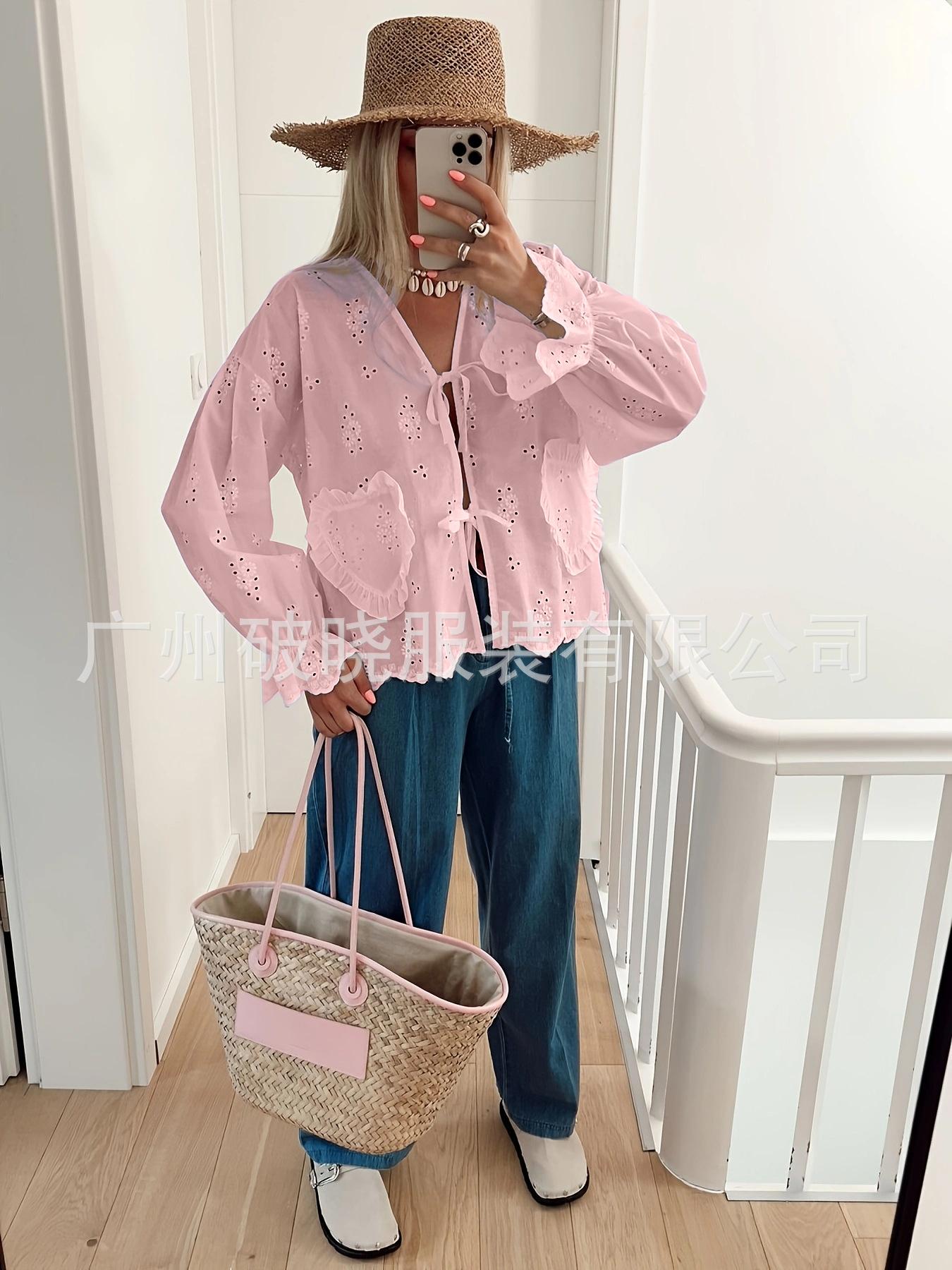 Amazon Comercio Exterior Transfronterizo Ropa Europea y Americana 2024 Verano Nuevo Camisa de Bolsillo con Corazón Bordado