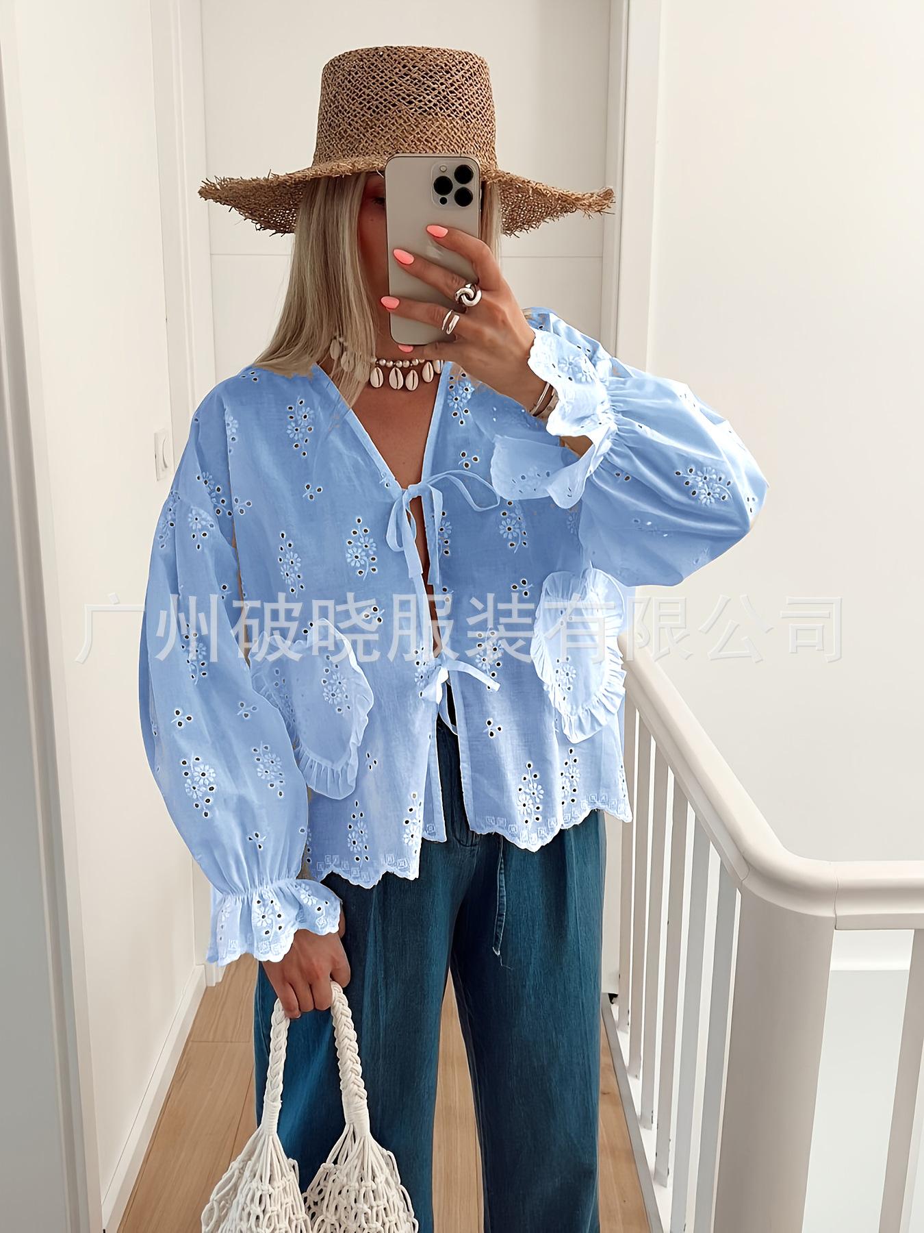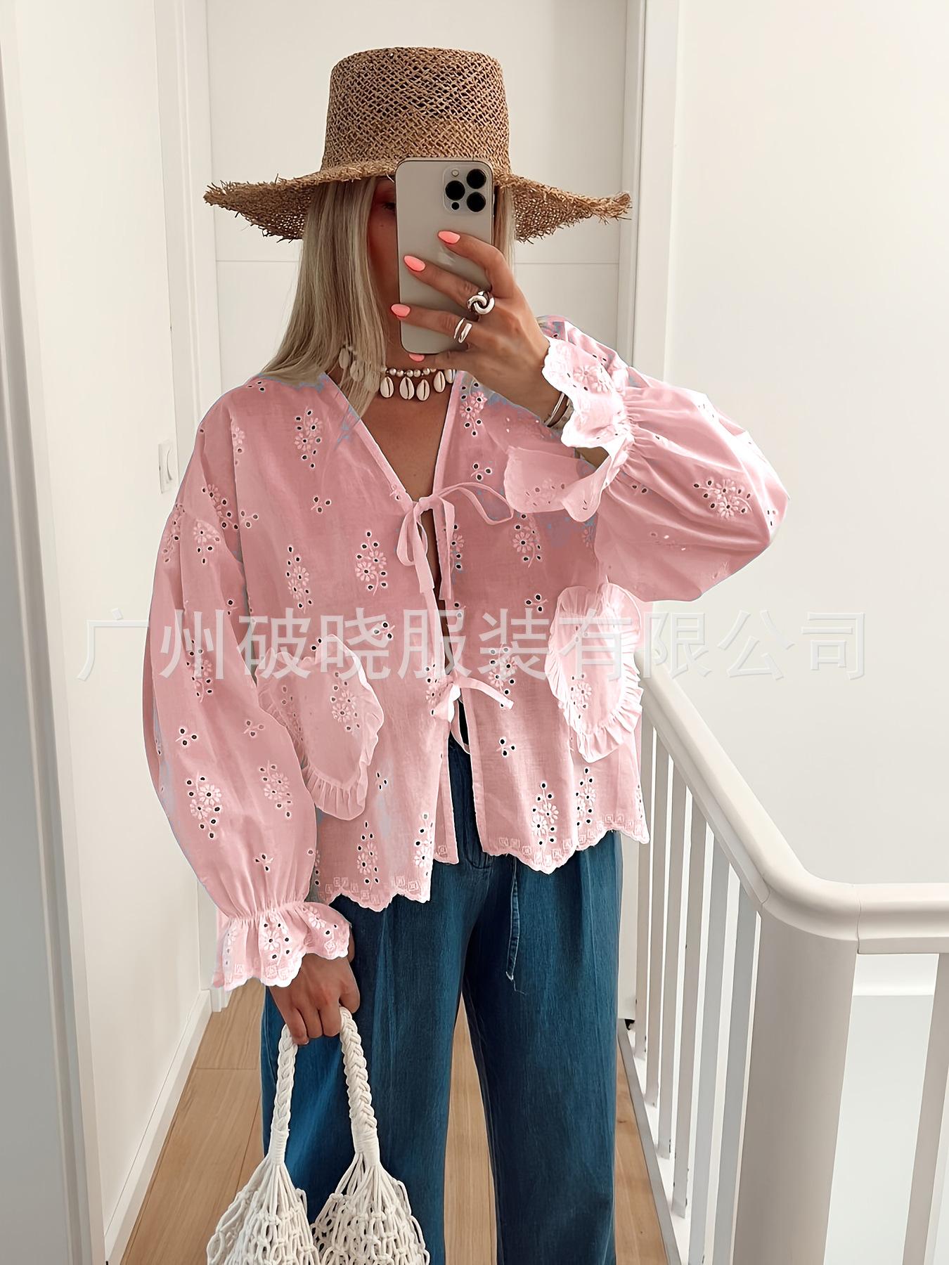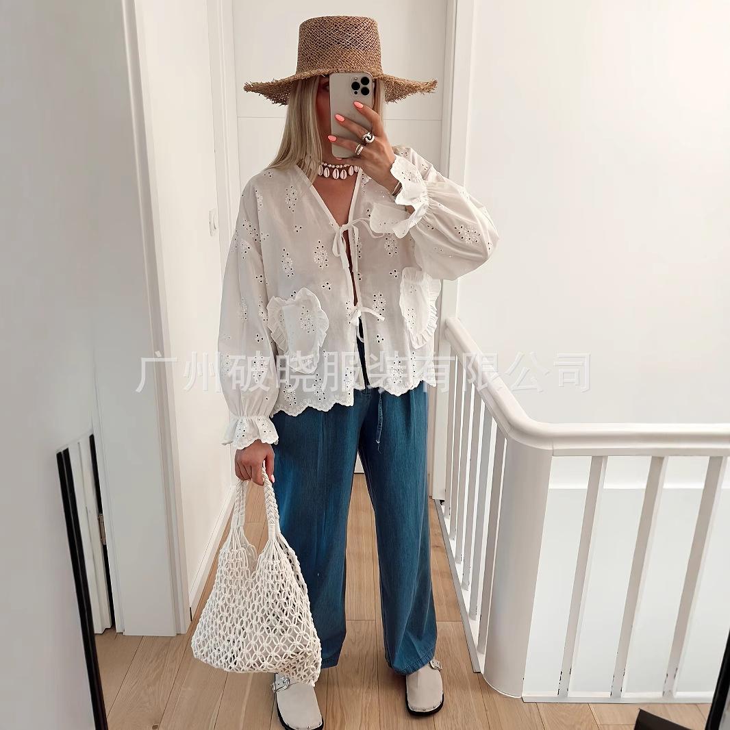 Amazon Comercio Exterior Transfronterizo Ropa Europea y Americana 2024 Verano Nuevo Camisa de Bolsillo con Corazón Bordado