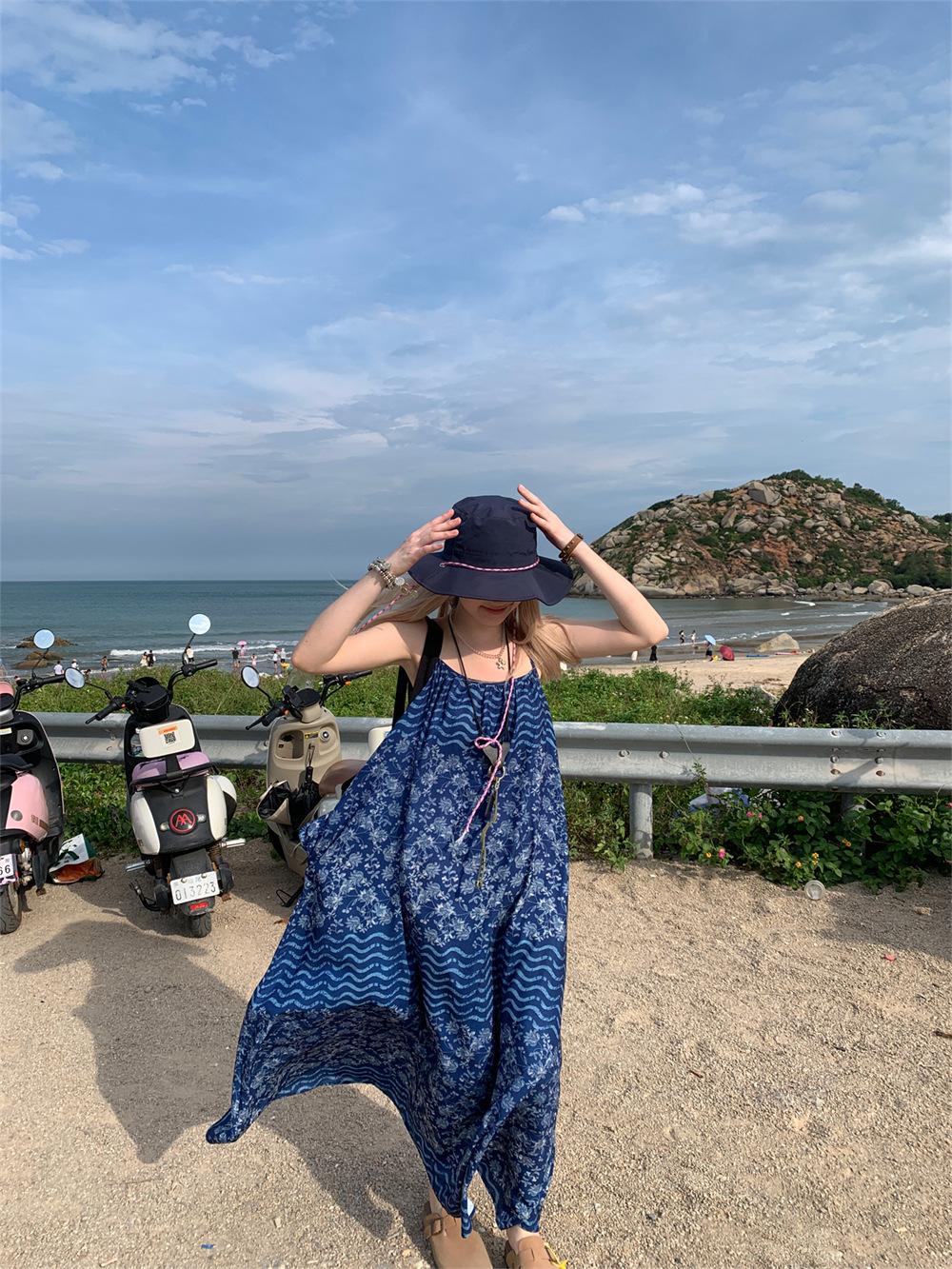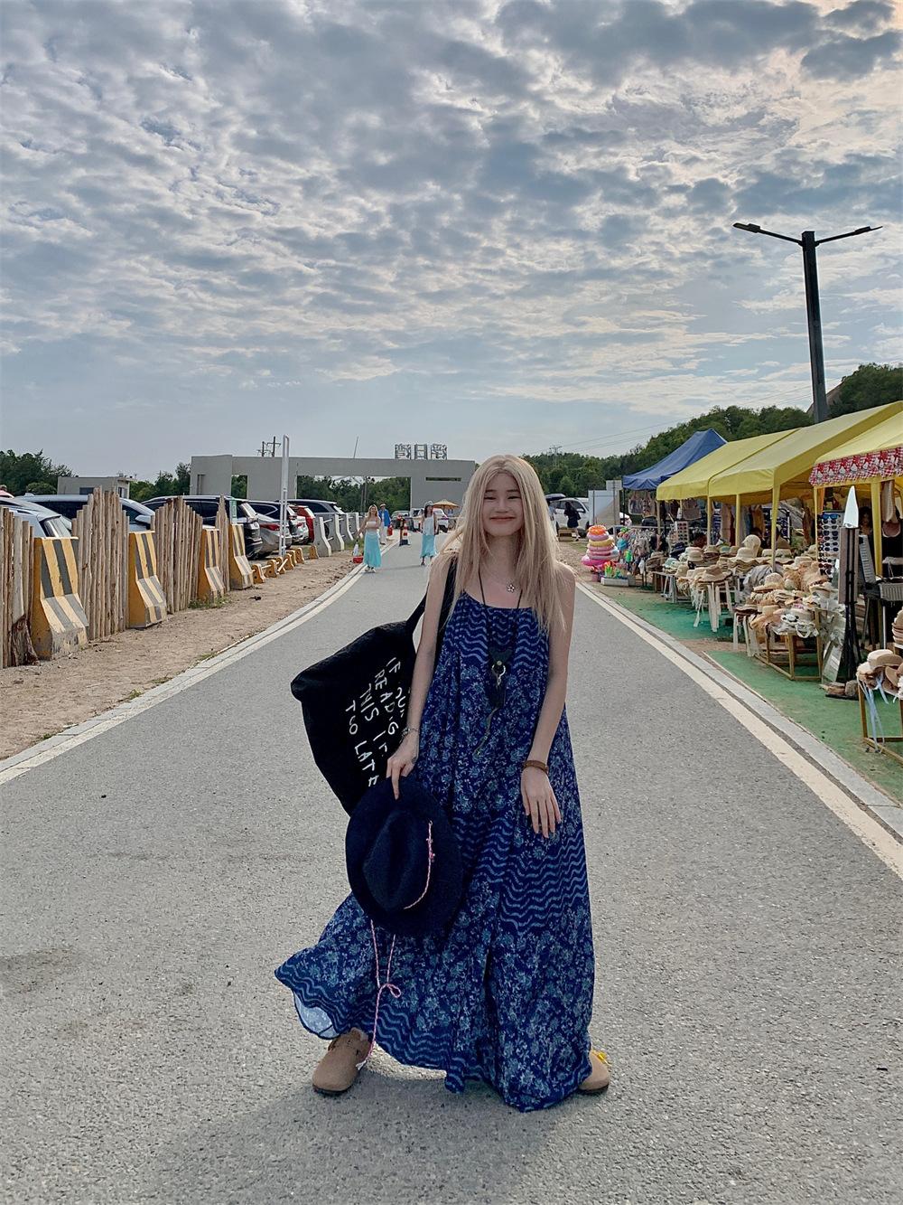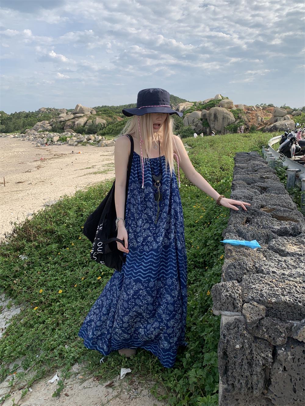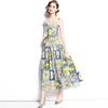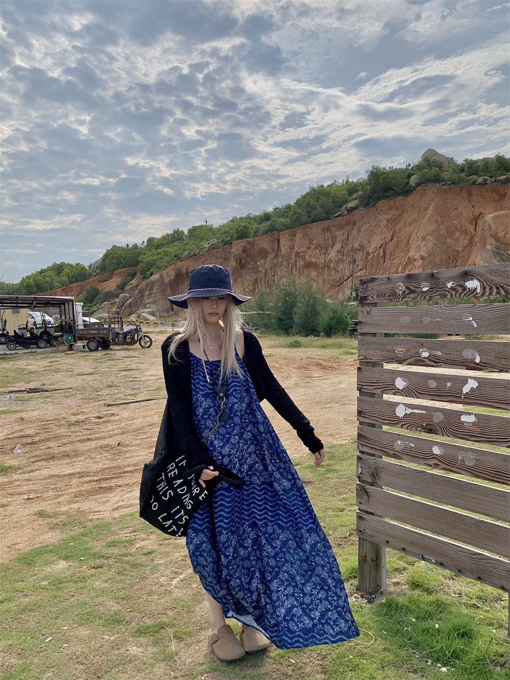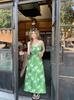 Talla Grande Estilo de Viaje Vacacional Retro Floral Vestido de Tirantes Espagueti de Alta Gama Suelto Adelgazante Largo hasta el Tobillo Falda Acampanada Vestido Largo