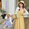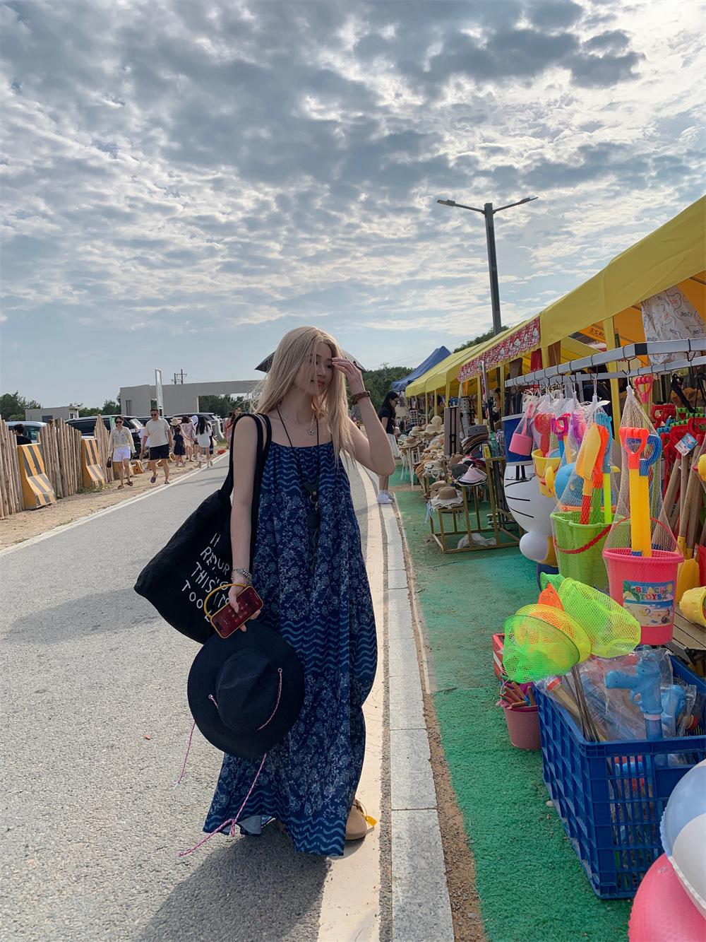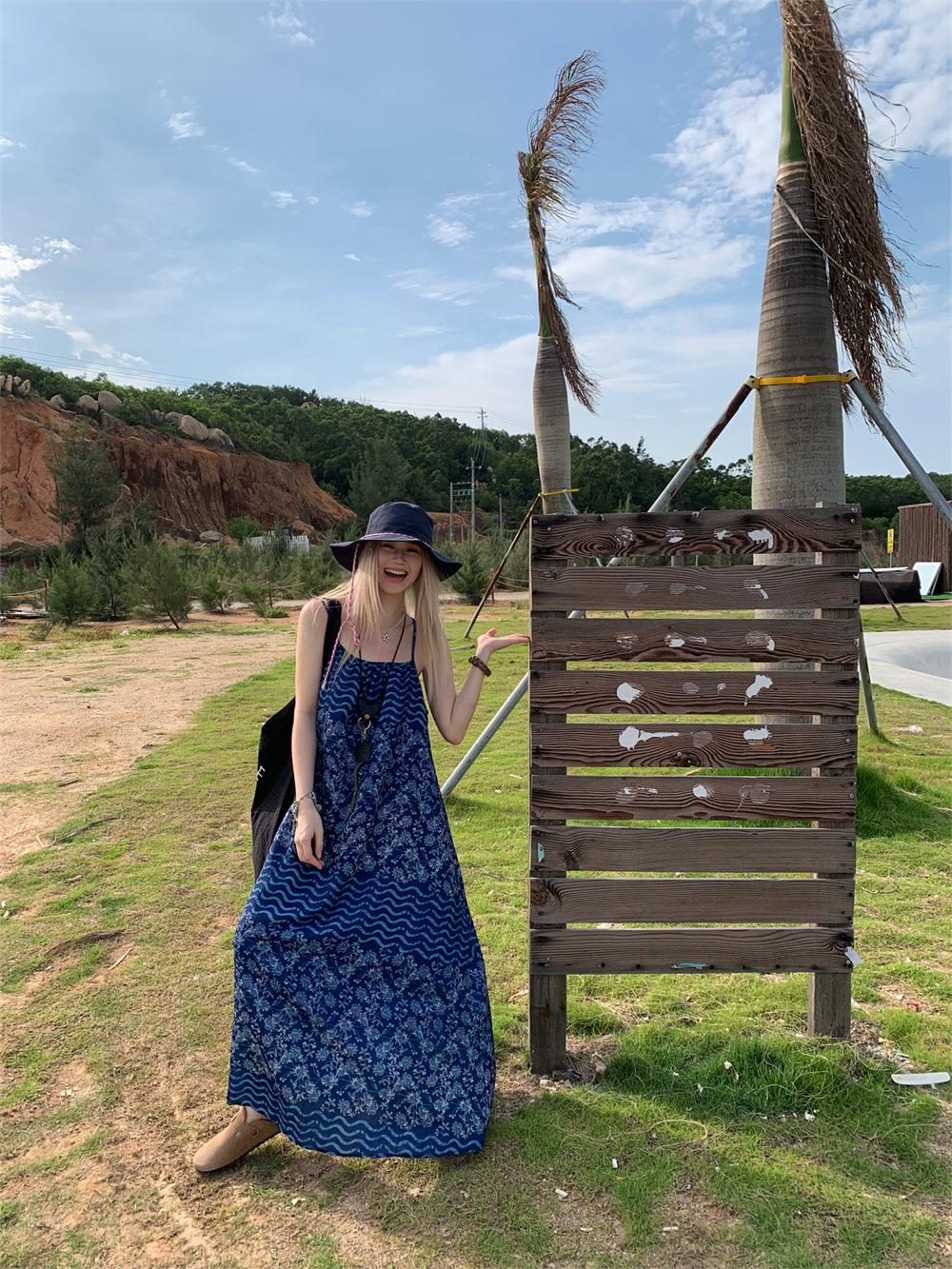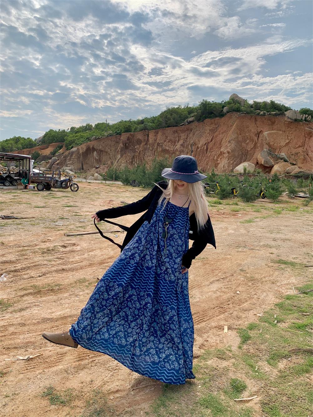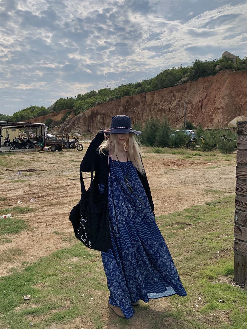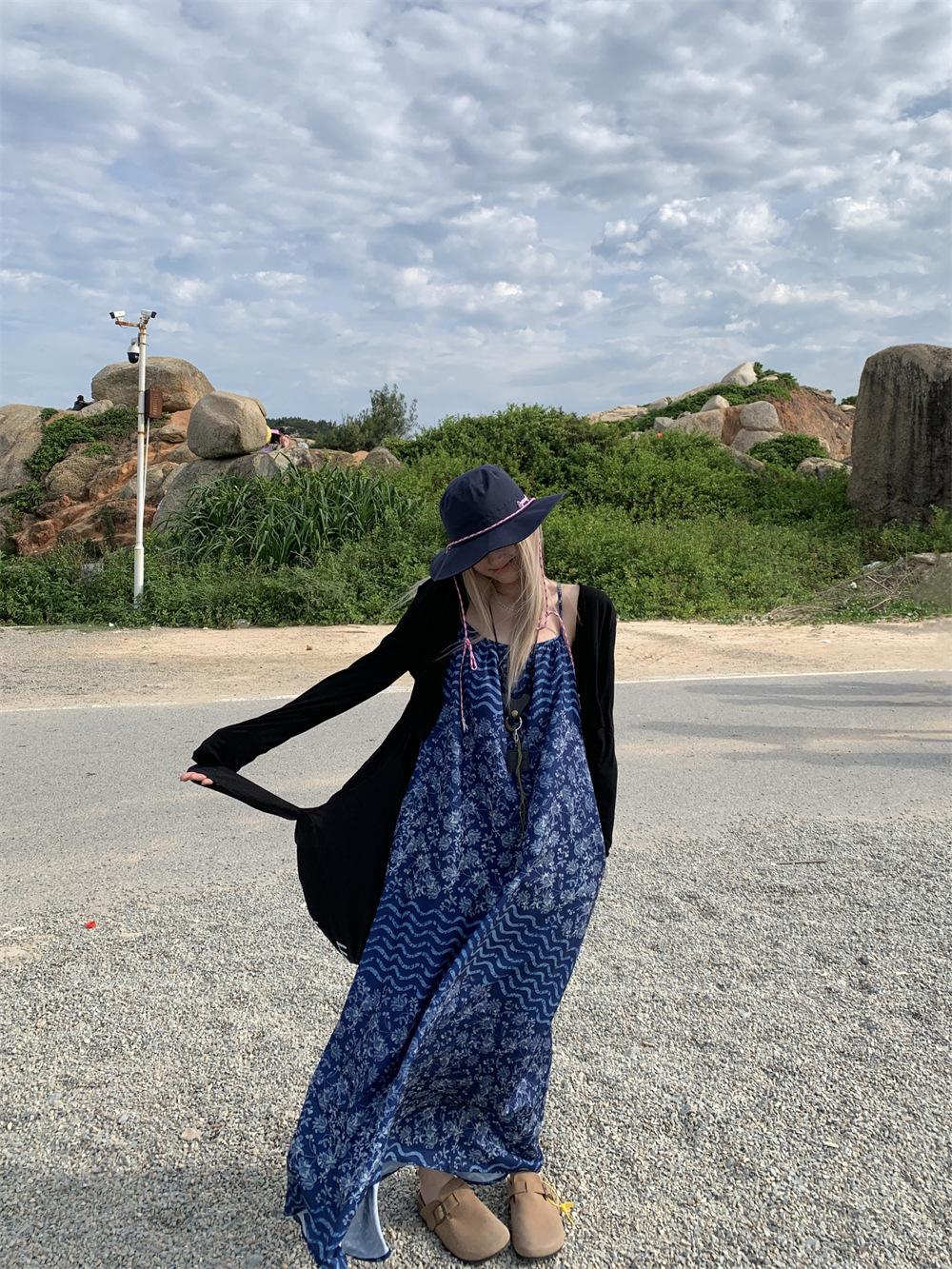 Talla Grande Estilo de Viaje Vacacional Retro Floral Vestido de Tirantes Espagueti de Alta Gama Suelto Adelgazante Largo hasta el Tobillo Falda Acampanada Vestido Largo
