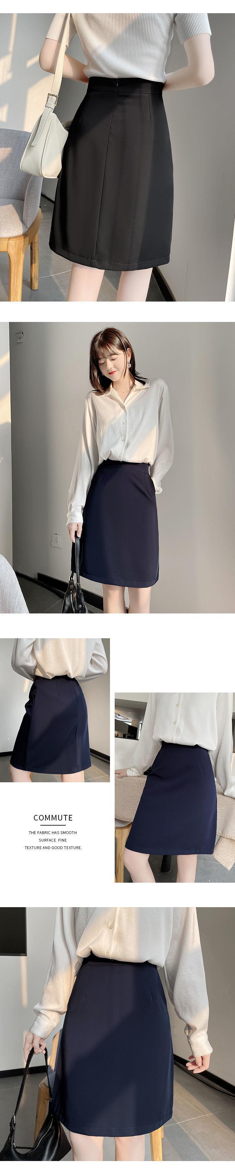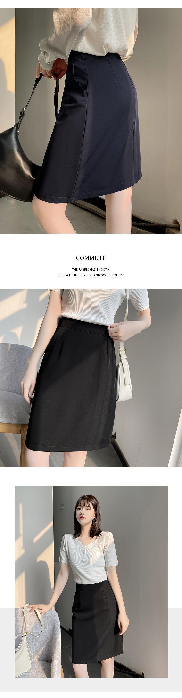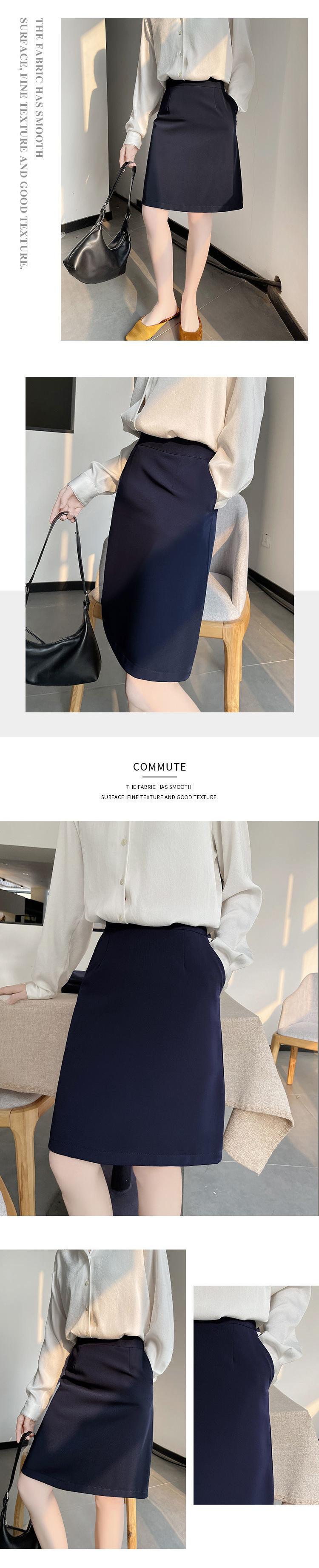 Falda de Traje de Mujer de Alta Gama Drapeada Corte A, Falda de Traje Azul Marino, Atuendo de Trabajo Elegante para Empleadas de Oficina