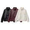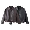 Z Estilo Europeo y Americano Transfronterizo 2025 Nueva Moda Temperamento Ropa de Mujer Venta al por Mayor Chaqueta de Aviador Retro Americana de Cuero PU