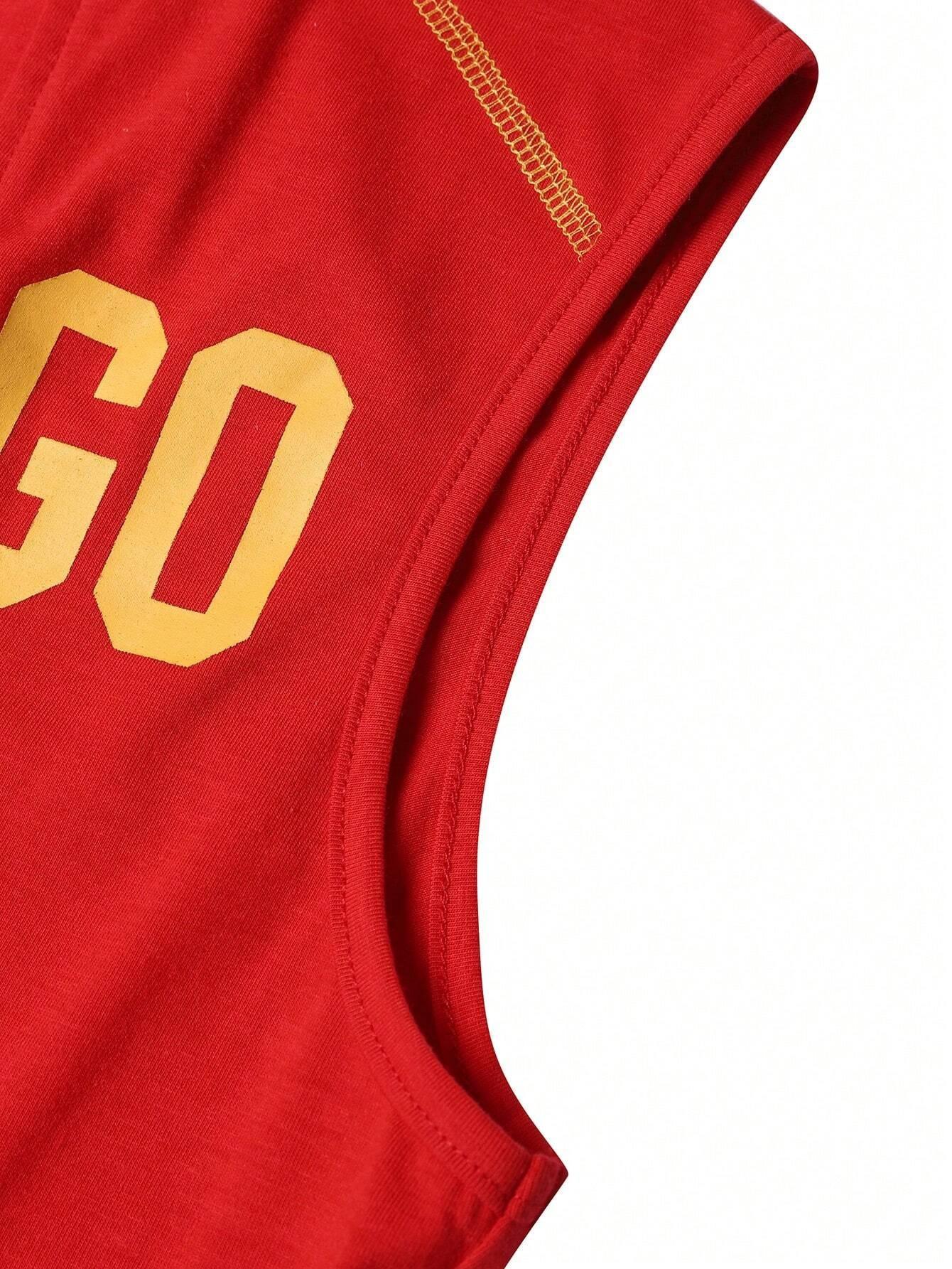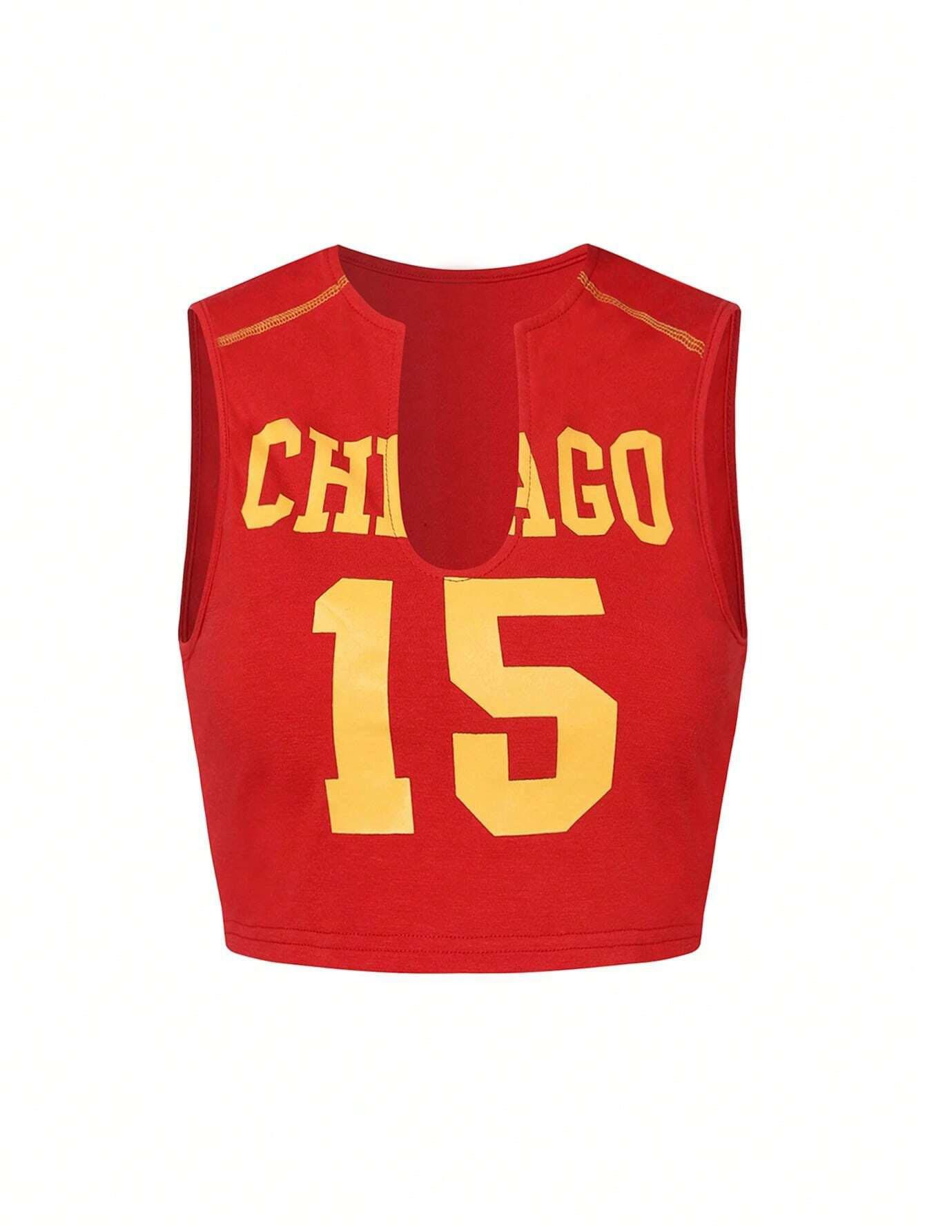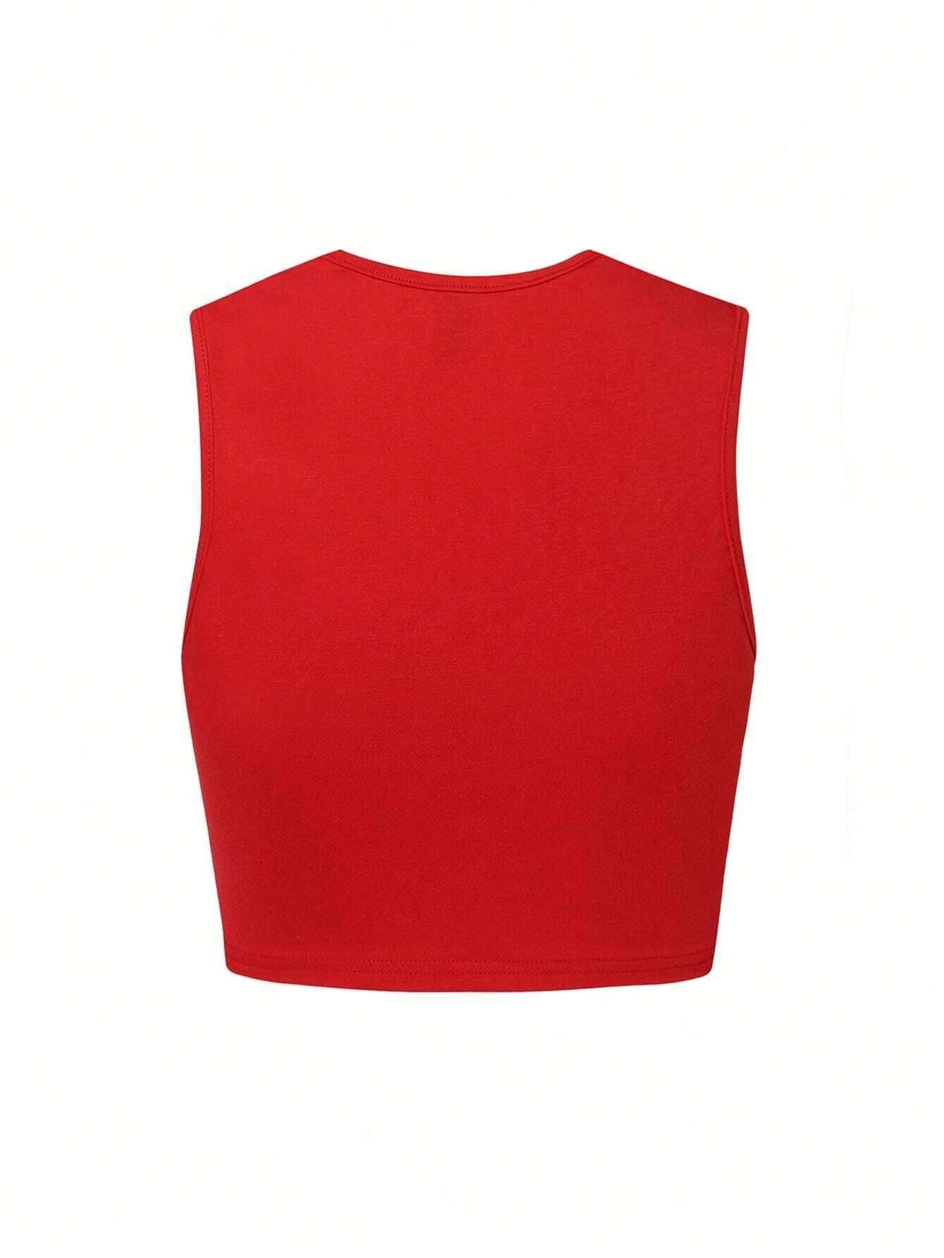 Chaleco sin mangas con escote bajo y aberturas europeo y americano rojo personalizado moderno estampado sexy sexy cuello U verano top corto