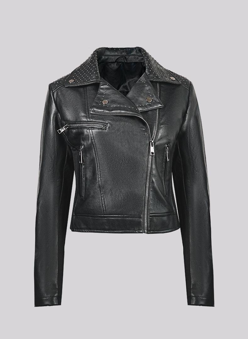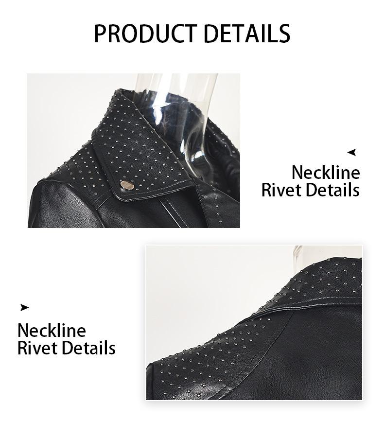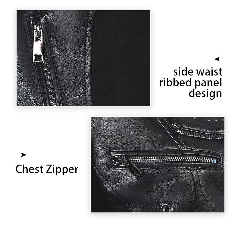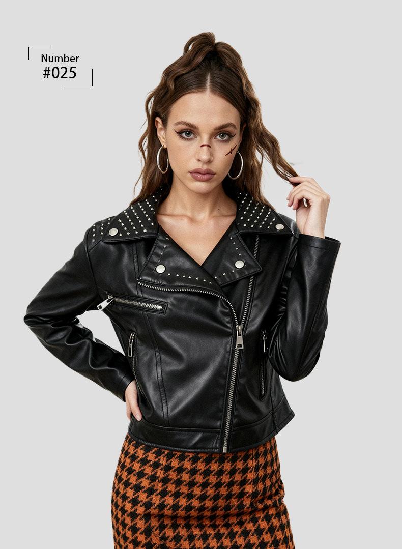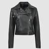 2025 Otoño/Invierno Transfronterizo Europa Chaqueta de Cuero para Mujer Personalizable Ropa Exterior para Mujer Corta con Tachuelas PU Asimétrica Ajustada Chaqueta de Cuero