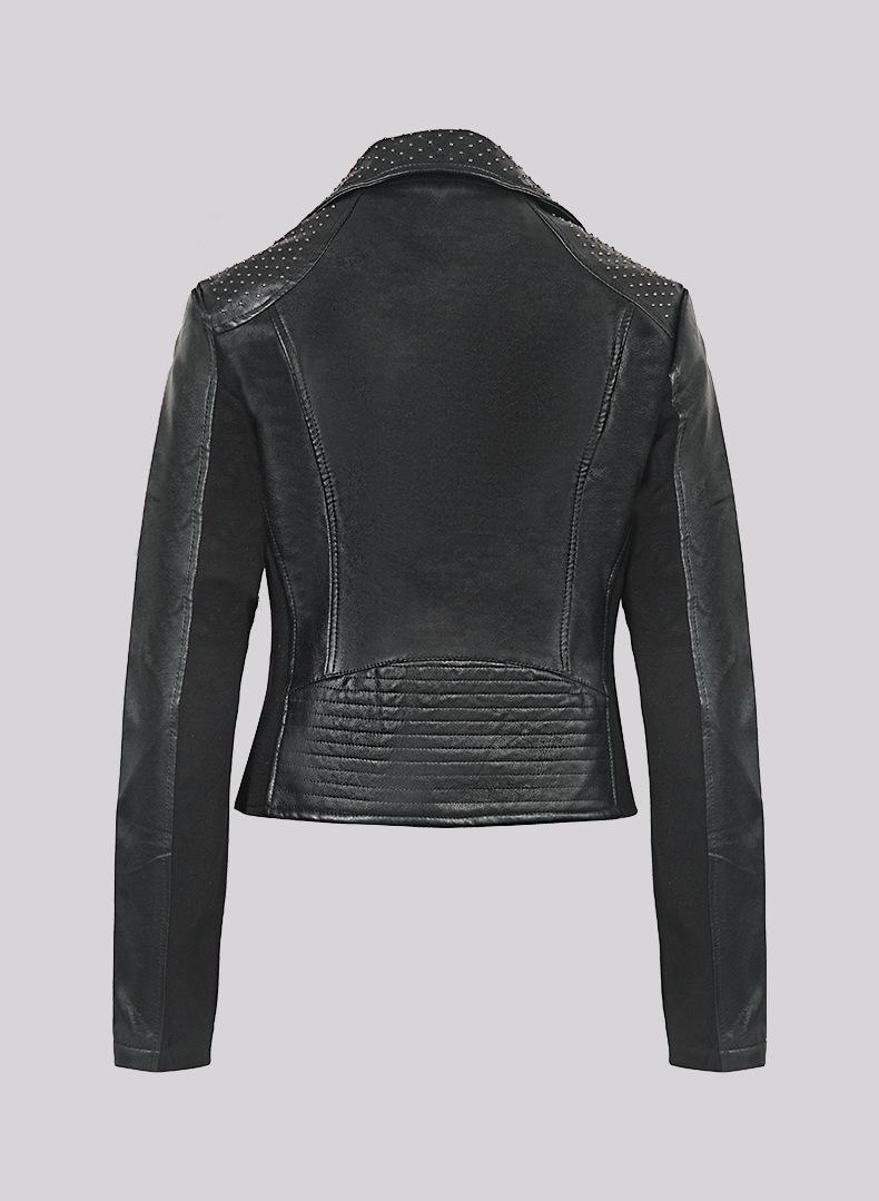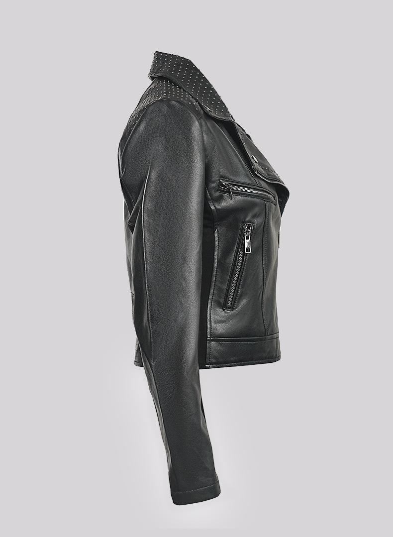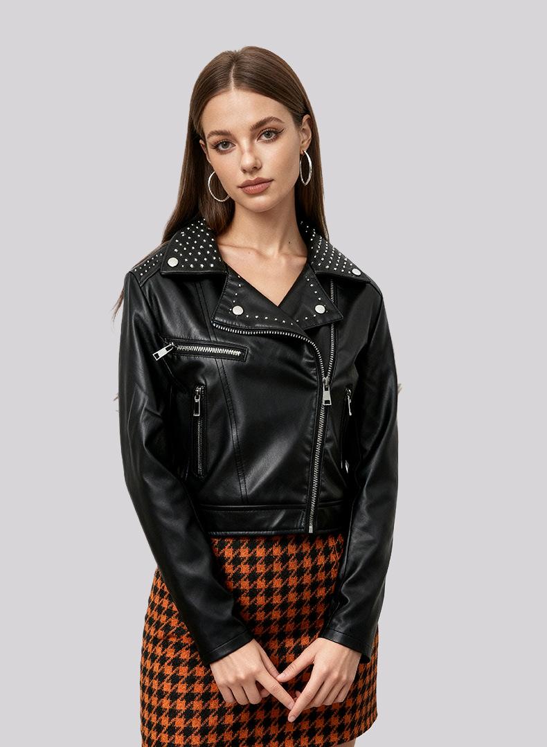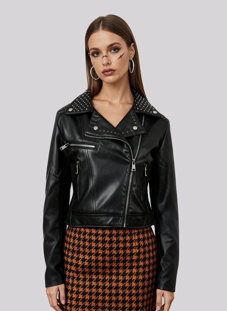 2025 Otoño/Invierno Transfronterizo Europa Chaqueta de Cuero para Mujer Personalizable Ropa Exterior para Mujer Corta con Tachuelas PU Asimétrica Ajustada Chaqueta de Cuero