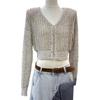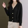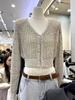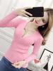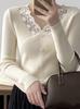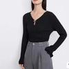 Ropa de Otoño 2024 Nuevo Estilo Coreano para Mujer Top de Punto Simple con Cuello en V Calado Delgado de Manga Larga Entallado Adelgazante Moderno