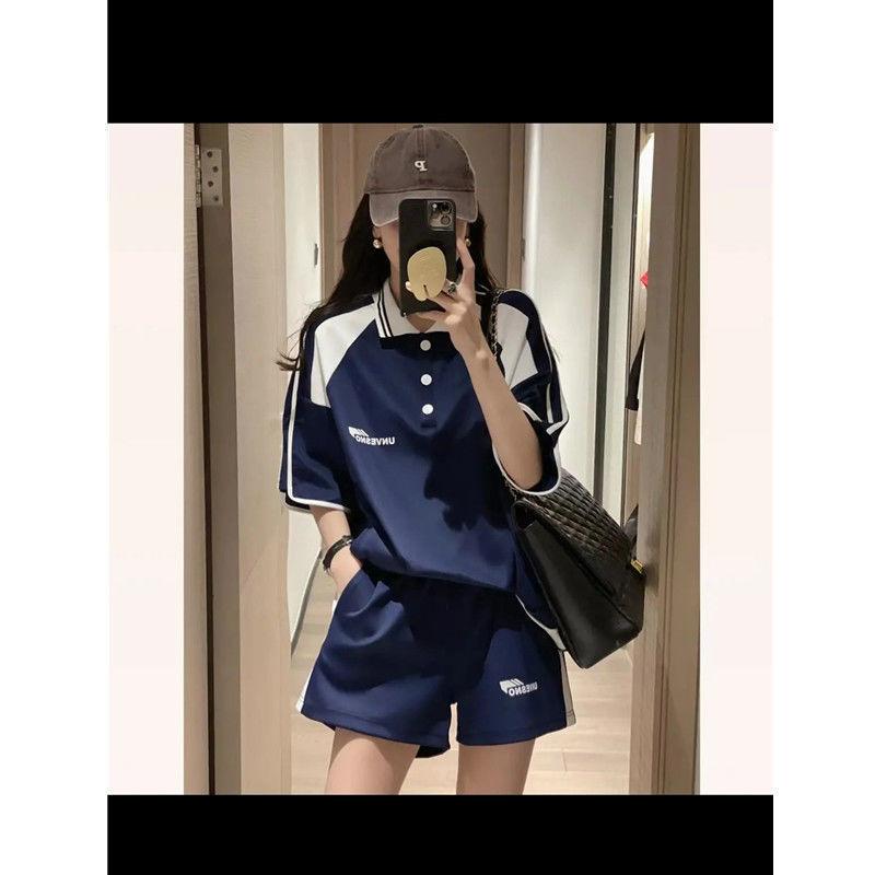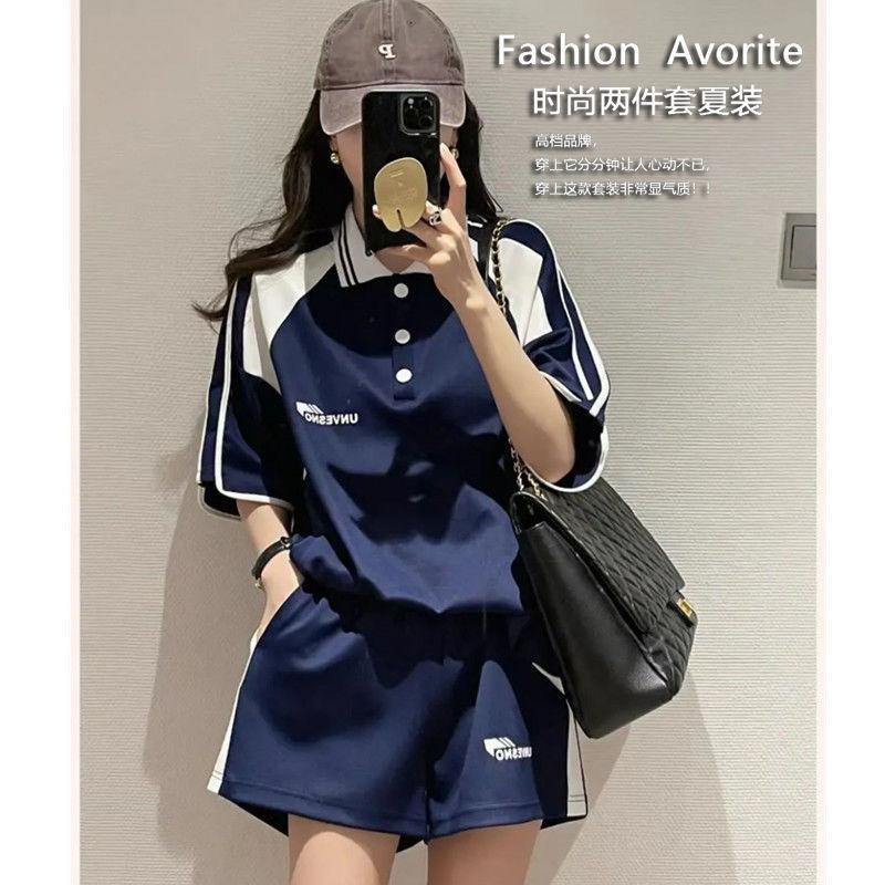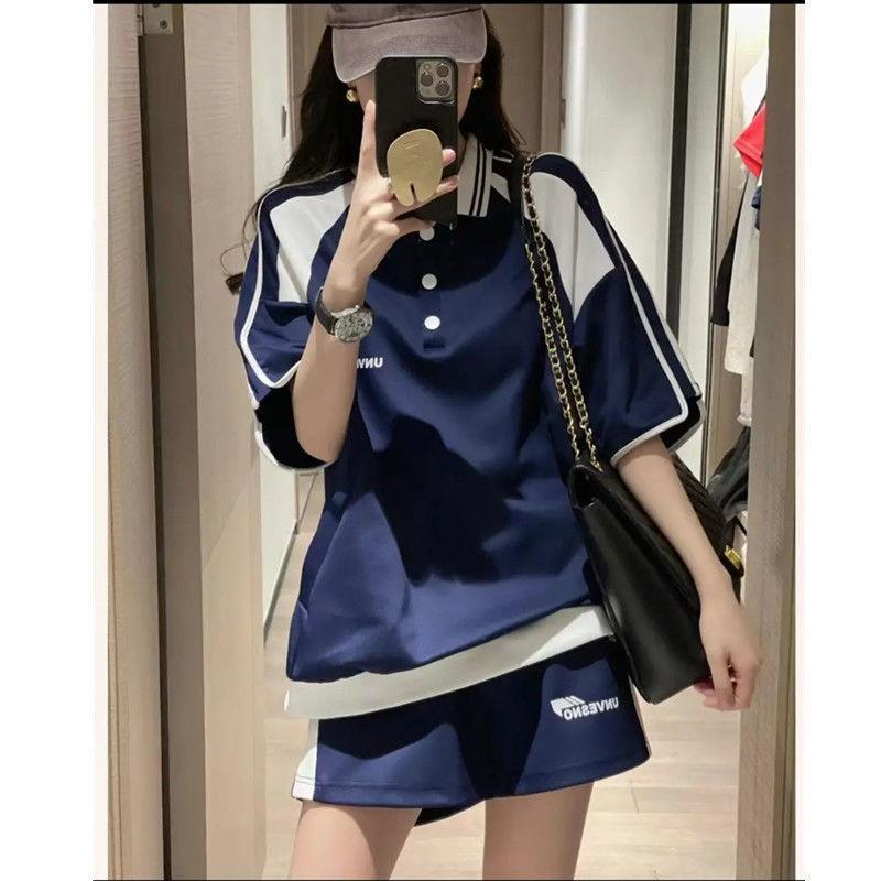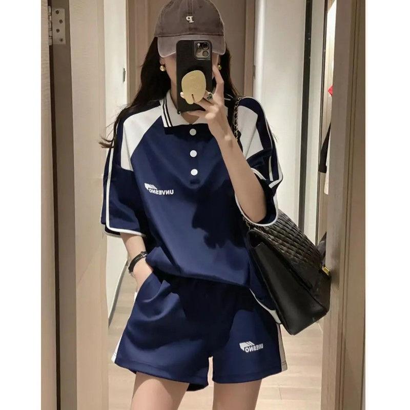 Traje Deportivo Casual de Alta Gama para Mujer Verano 2025 Nuevo Estilo Moderno Talla Grande Holgado Look Adelgazante Traje para Correr Conjunto de Dos Piezas