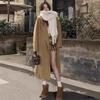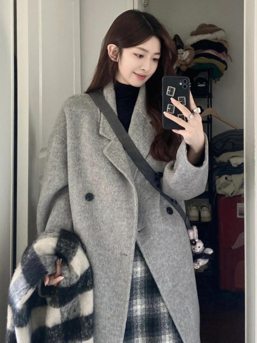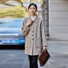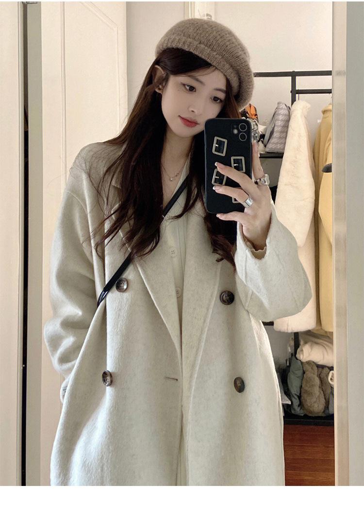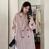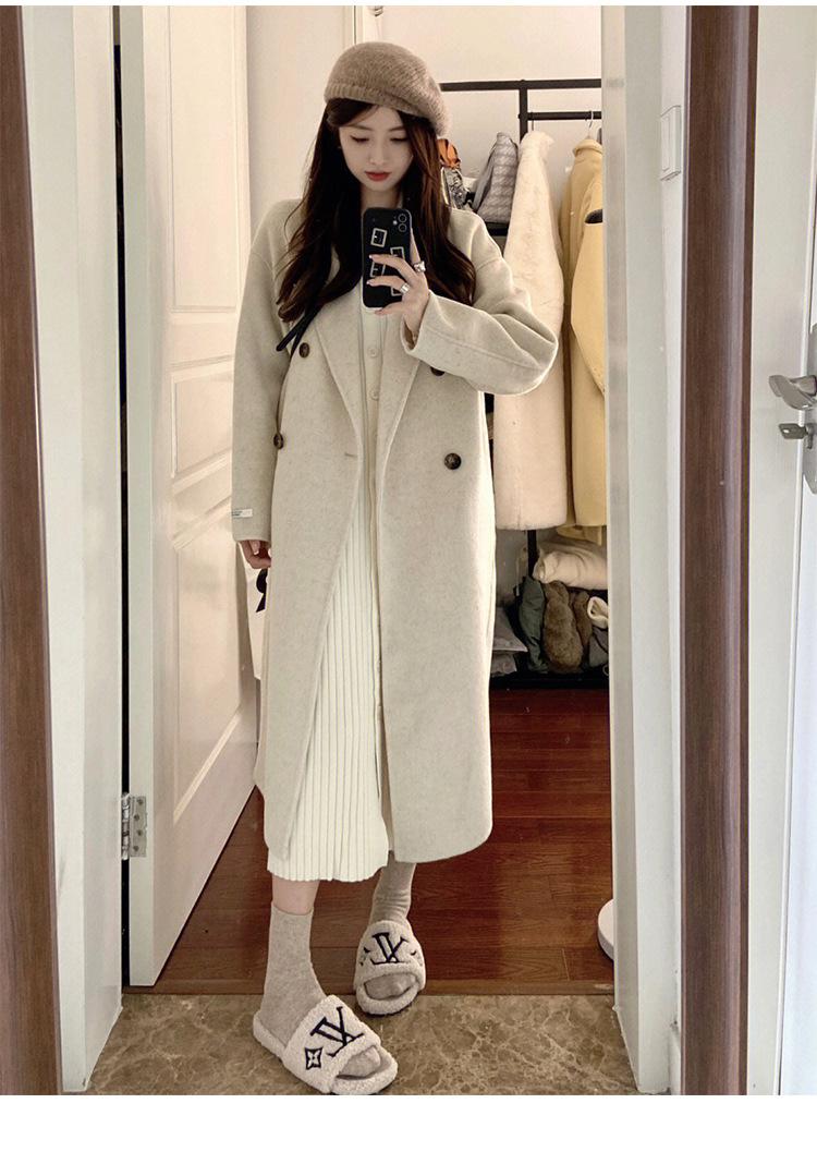 Abrigo de lana de cachemira de doble faz color avena para mujer, largo medio, otoño/invierno 2025 estilo coreano nuevo abrigo de lana estilo Hepburn