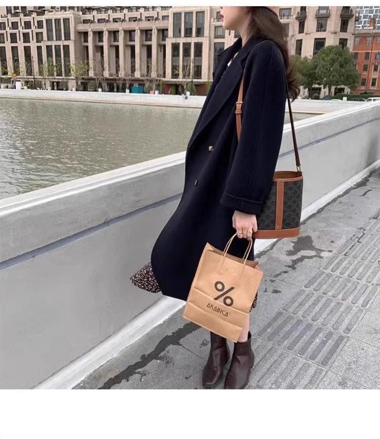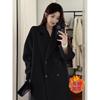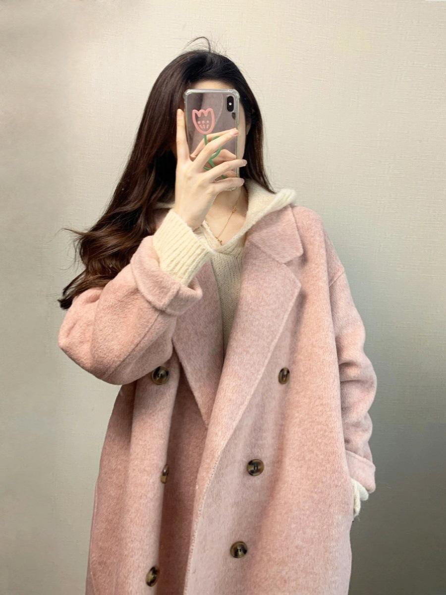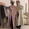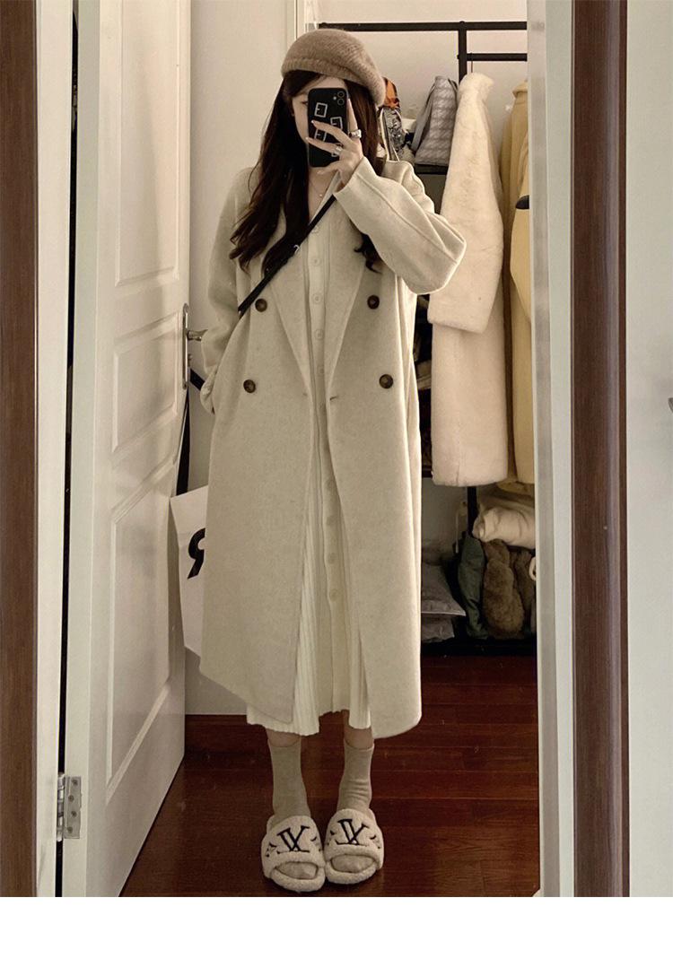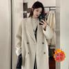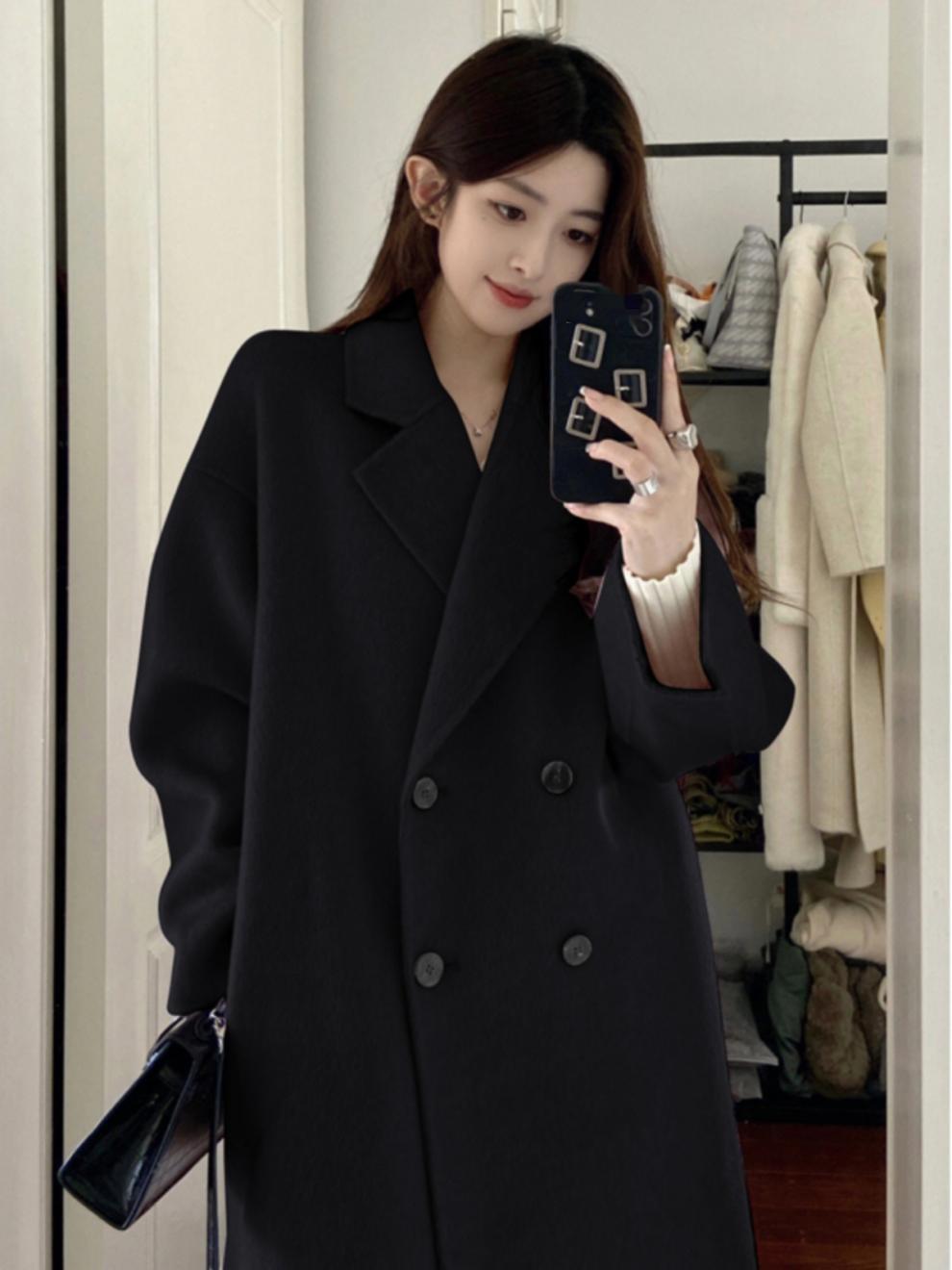 Abrigo de lana de cachemira de doble faz color avena para mujer, largo medio, otoño/invierno 2025 estilo coreano nuevo abrigo de lana estilo Hepburn
