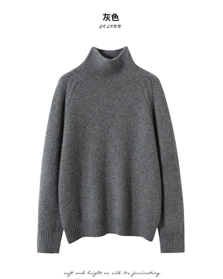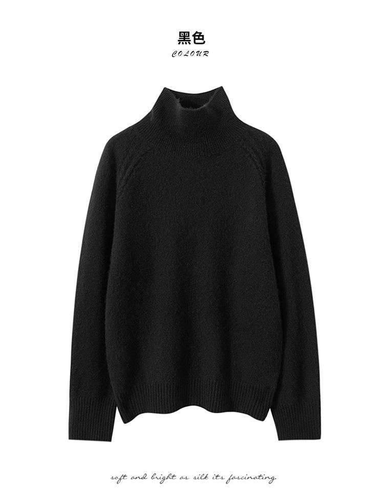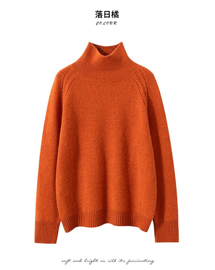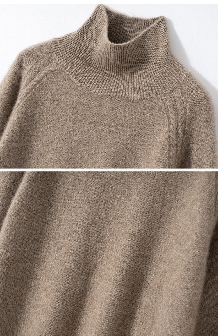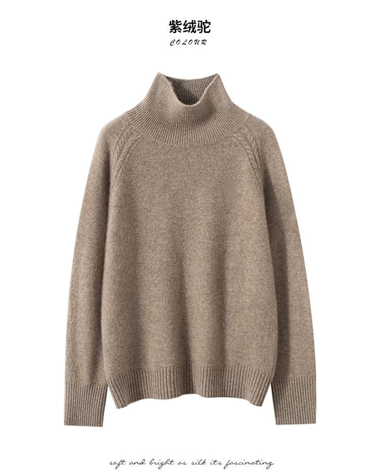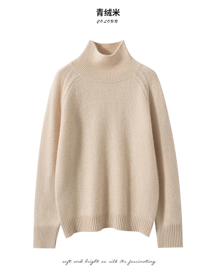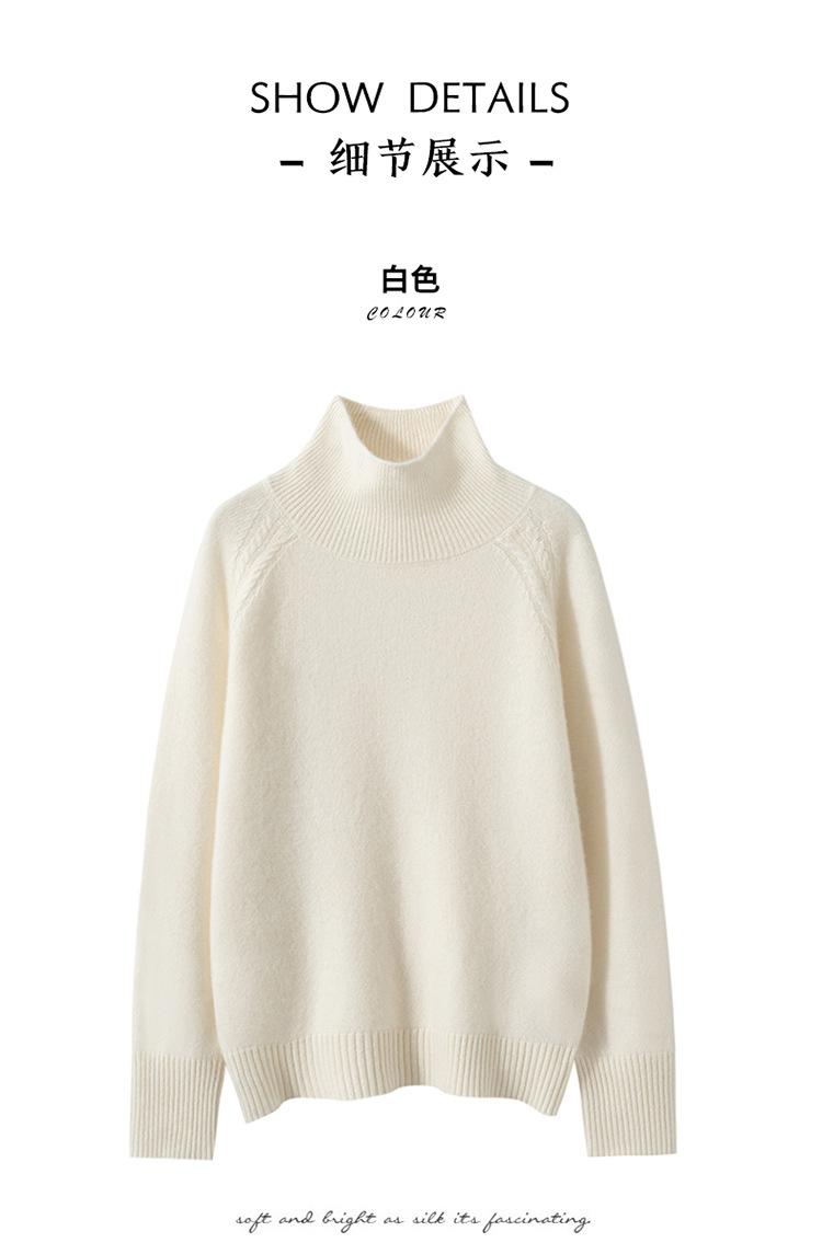 Suéter de cachemira suave y glutinoso con hombros caídos para mujer, suéter grueso de cuello alto para llevar debajo, holgado, adelgazante, temperamento, suéter básico de punto, otoño e invierno