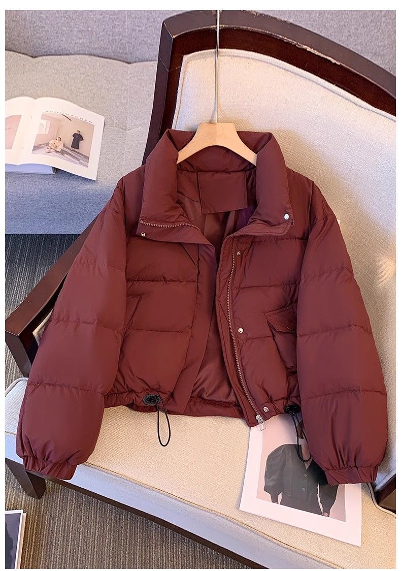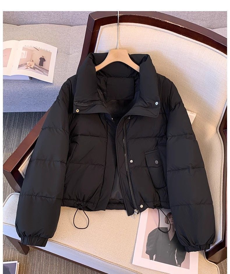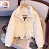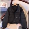 Chaqueta corta de algodón para mujer 2025 invierno nueva moda elegante petite engrosada cuello alto chaqueta pan abrigo