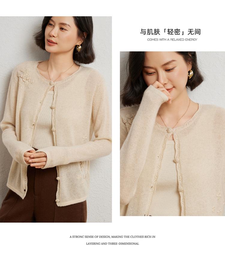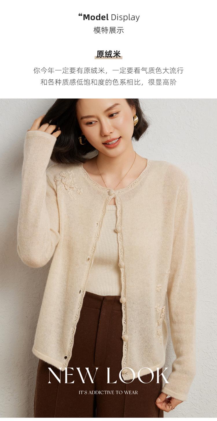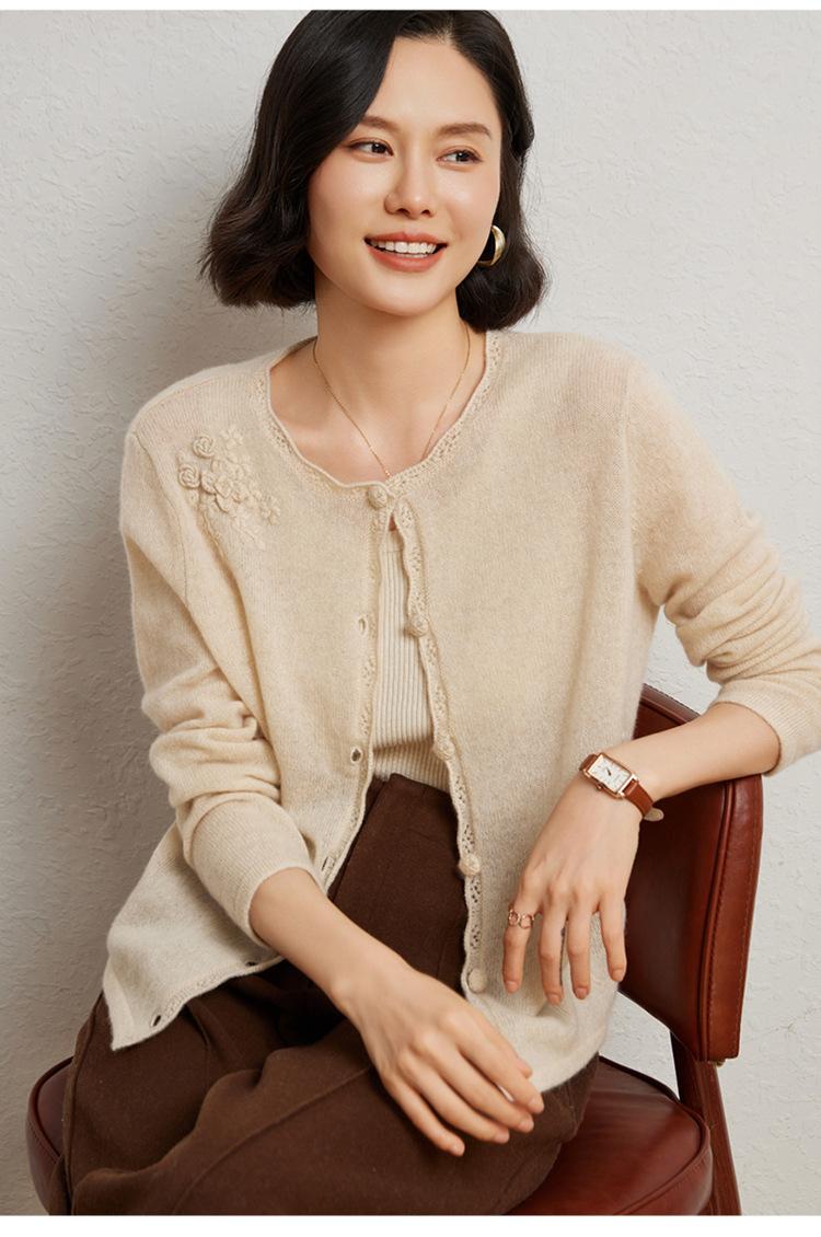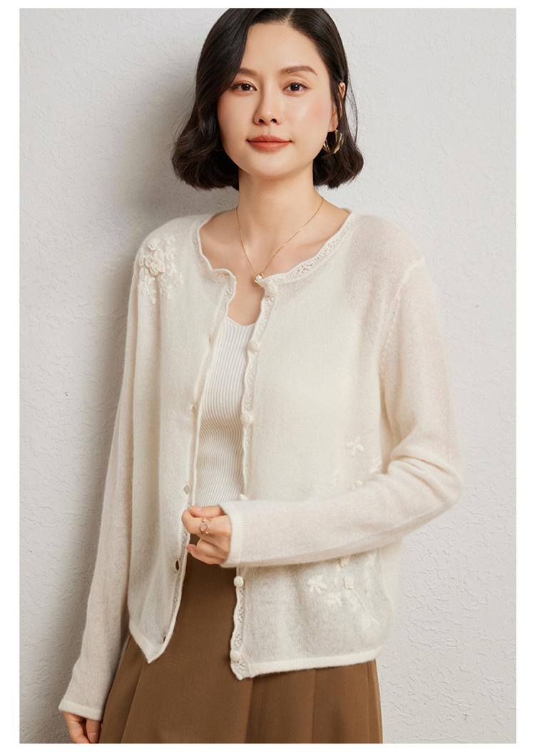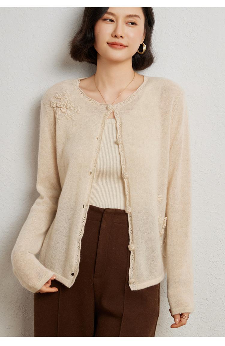 Cárdigan de Punto Retro de Otoño e Invierno 2025 Tencel Cachemira Cuello Redondo Bordado Pesado Holgado Top Exterior para Mujer