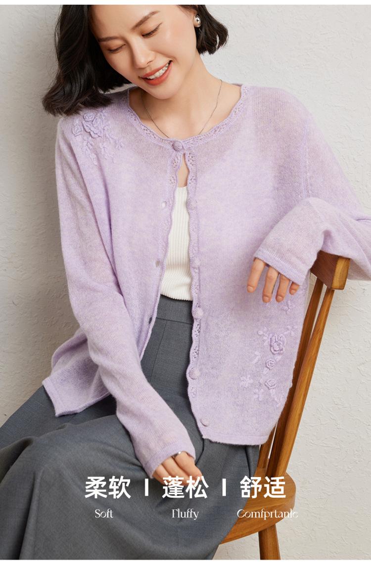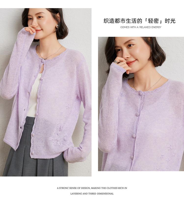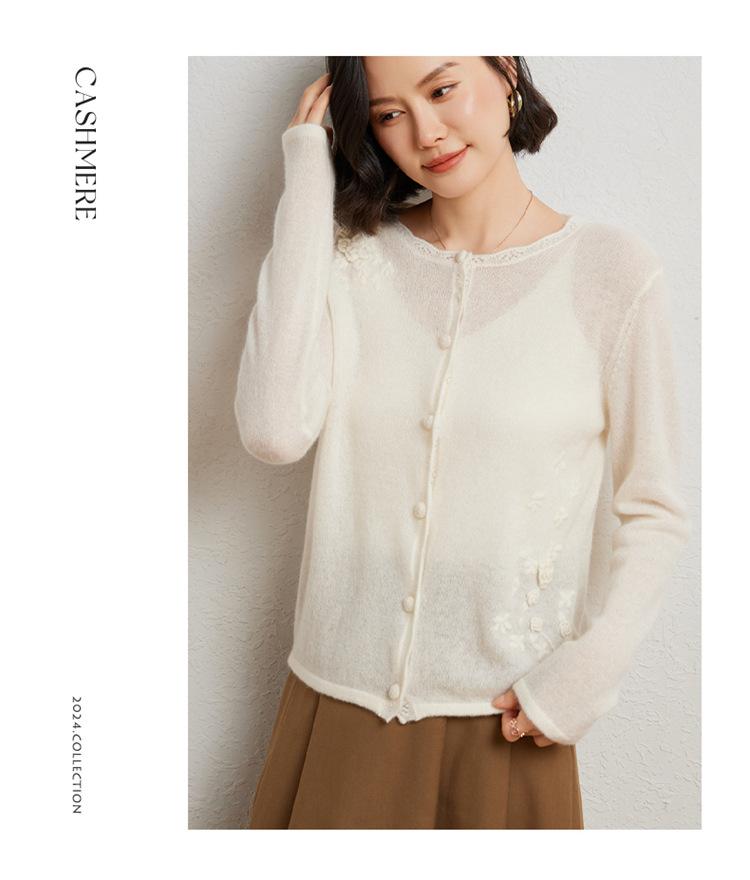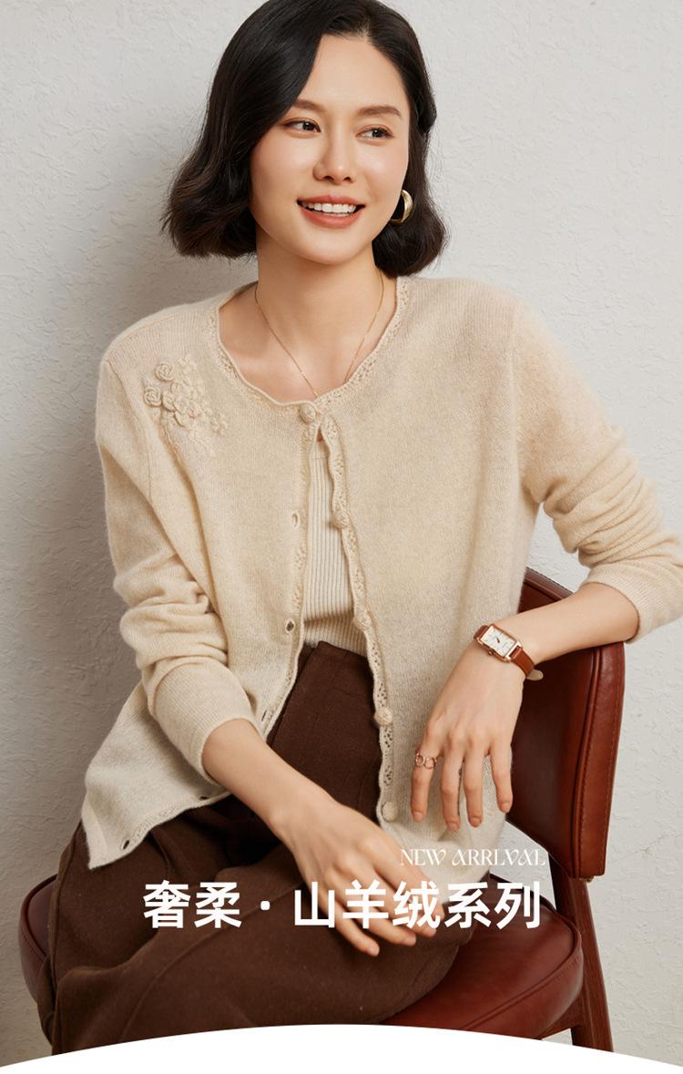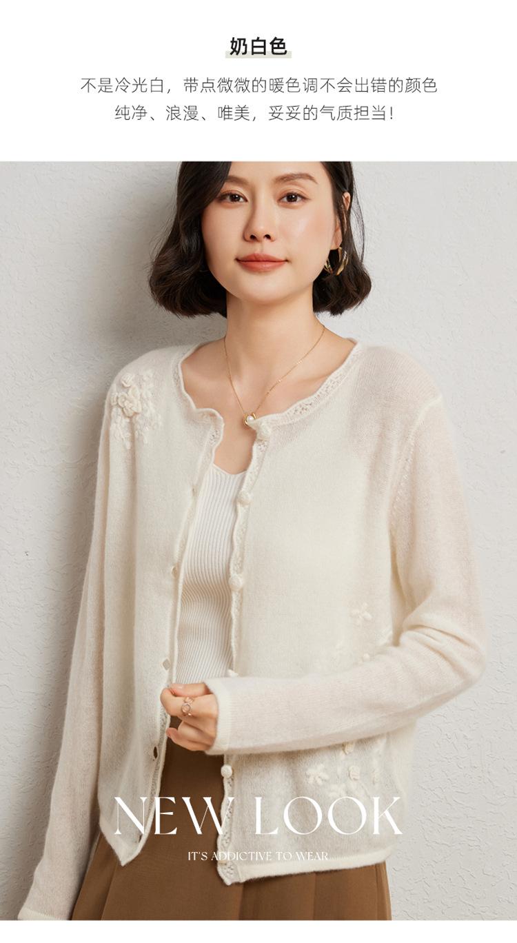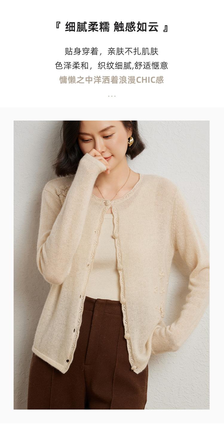 Cárdigan de Punto Retro de Otoño e Invierno 2025 Tencel Cachemira Cuello Redondo Bordado Pesado Holgado Top Exterior para Mujer