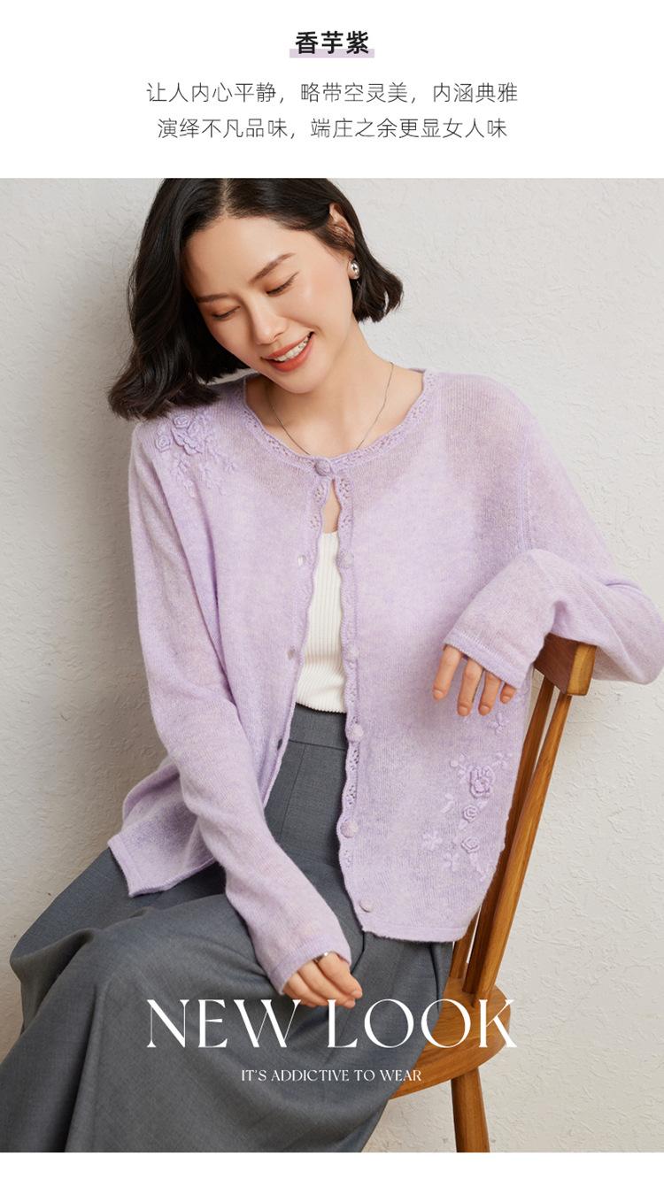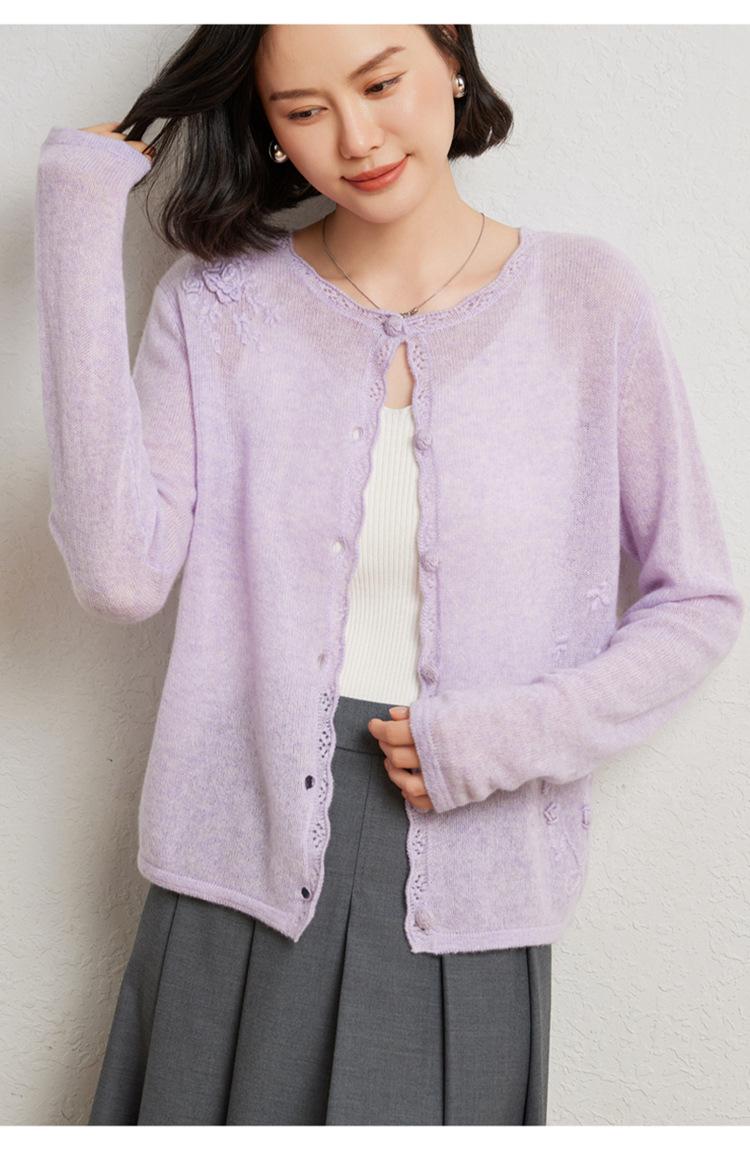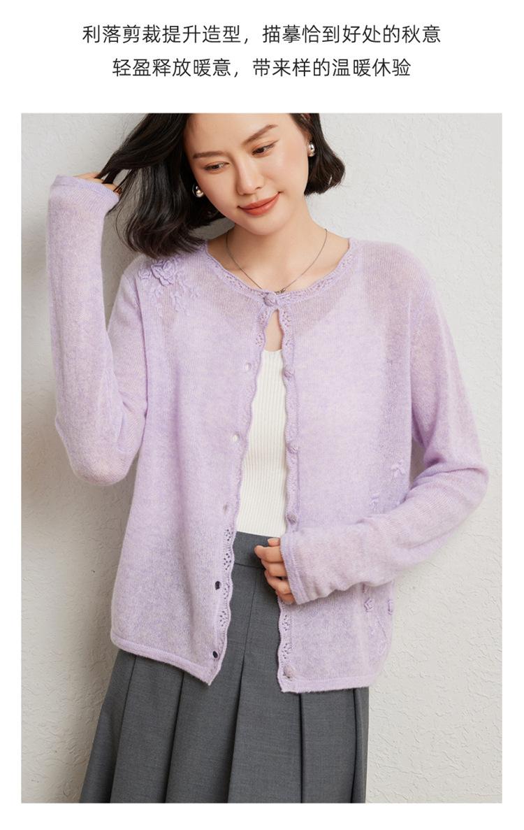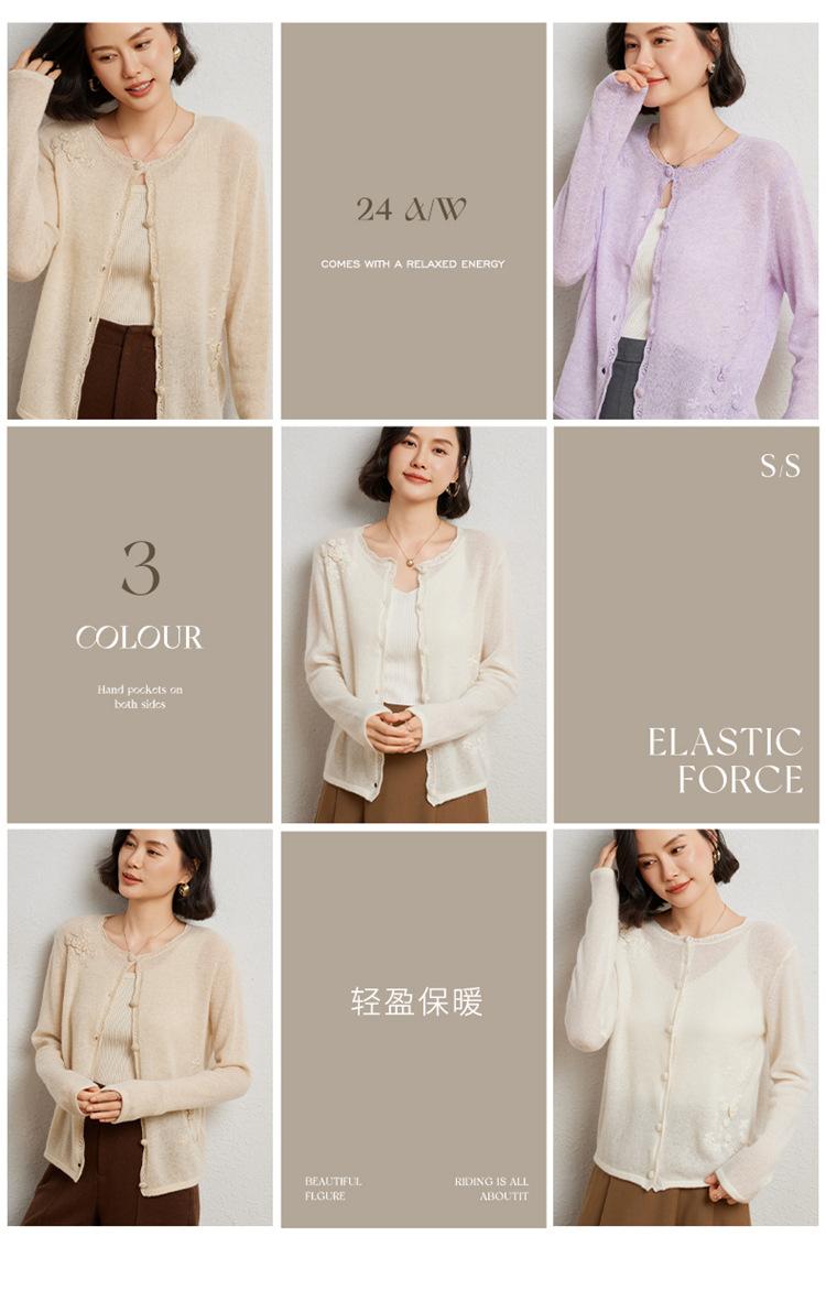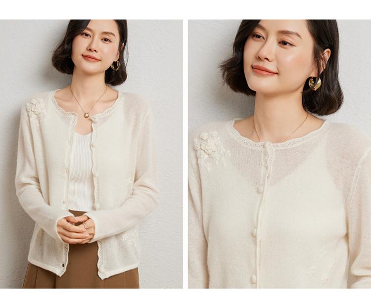 Cárdigan de Punto Retro de Otoño e Invierno 2025 Tencel Cachemira Cuello Redondo Bordado Pesado Holgado Top Exterior para Mujer