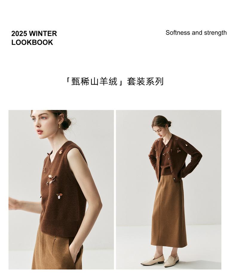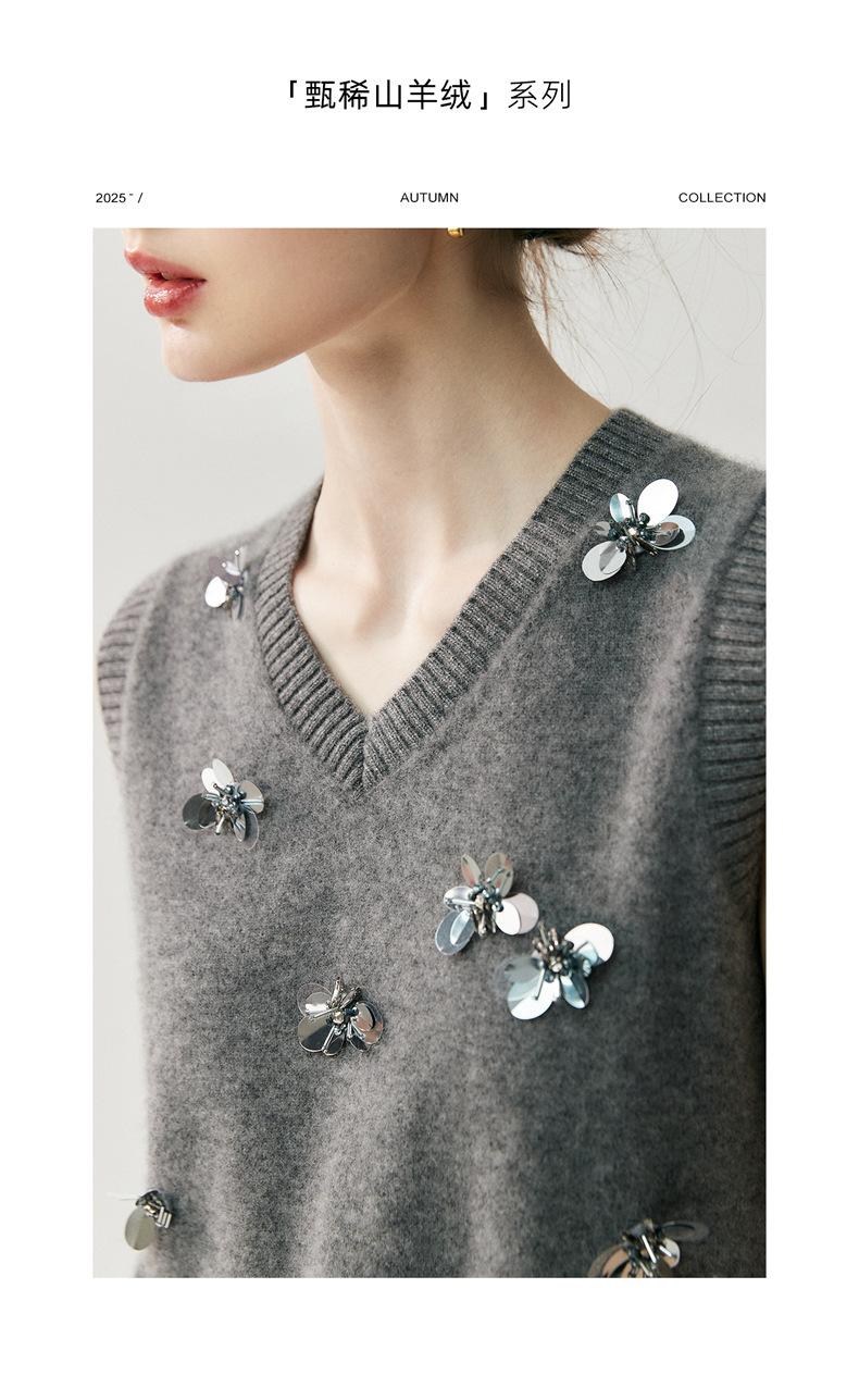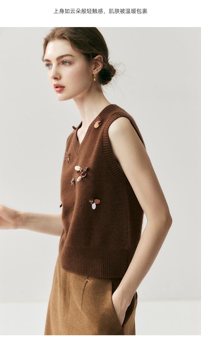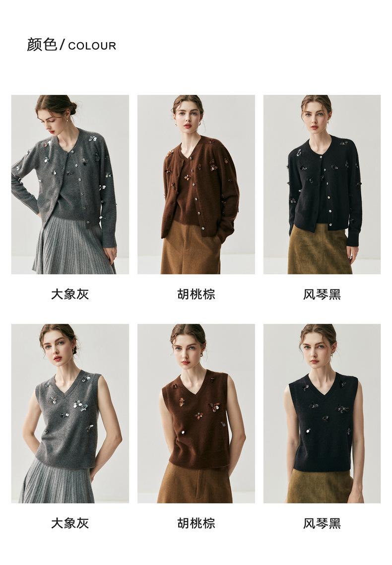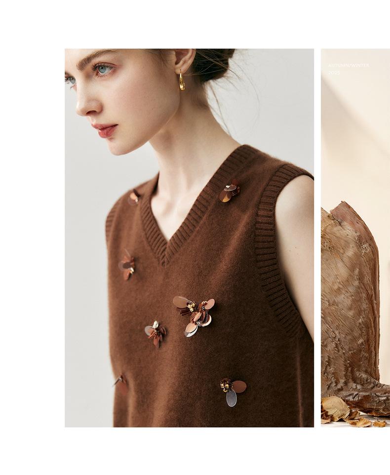 Sentido del diseño cárdigan de cachemira jacquard de mariposa tridimensional para mujer otoño e invierno moda para superponer chaleco sin mangas temperamento conjunto que reduce la edad