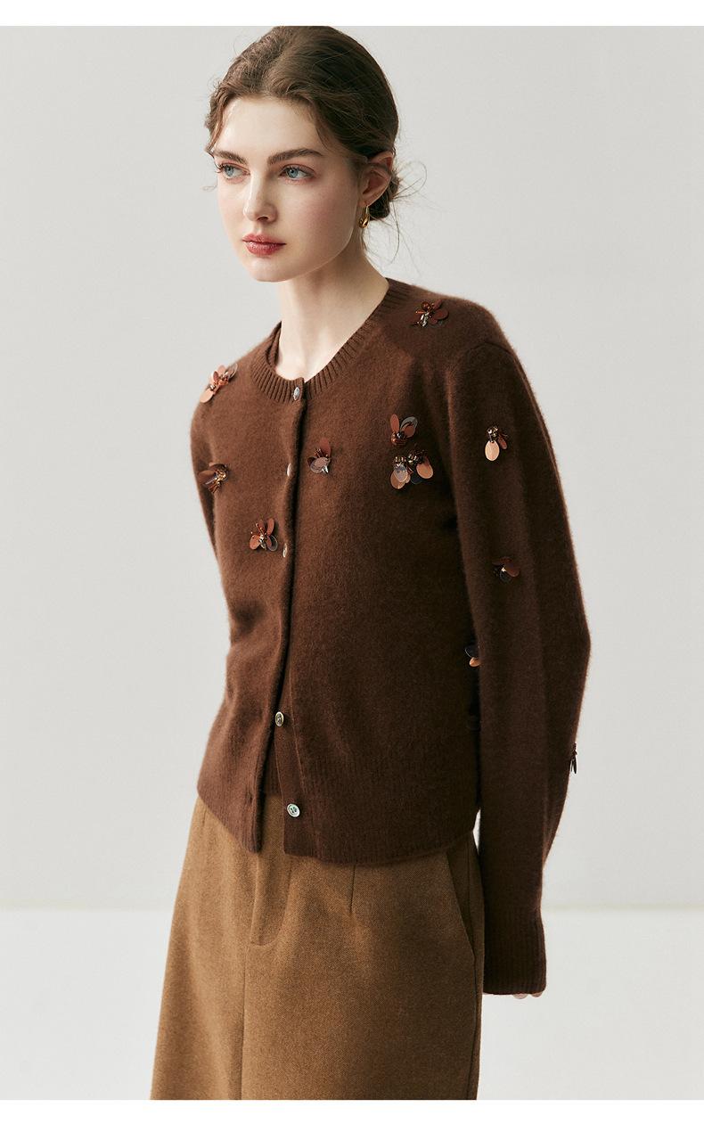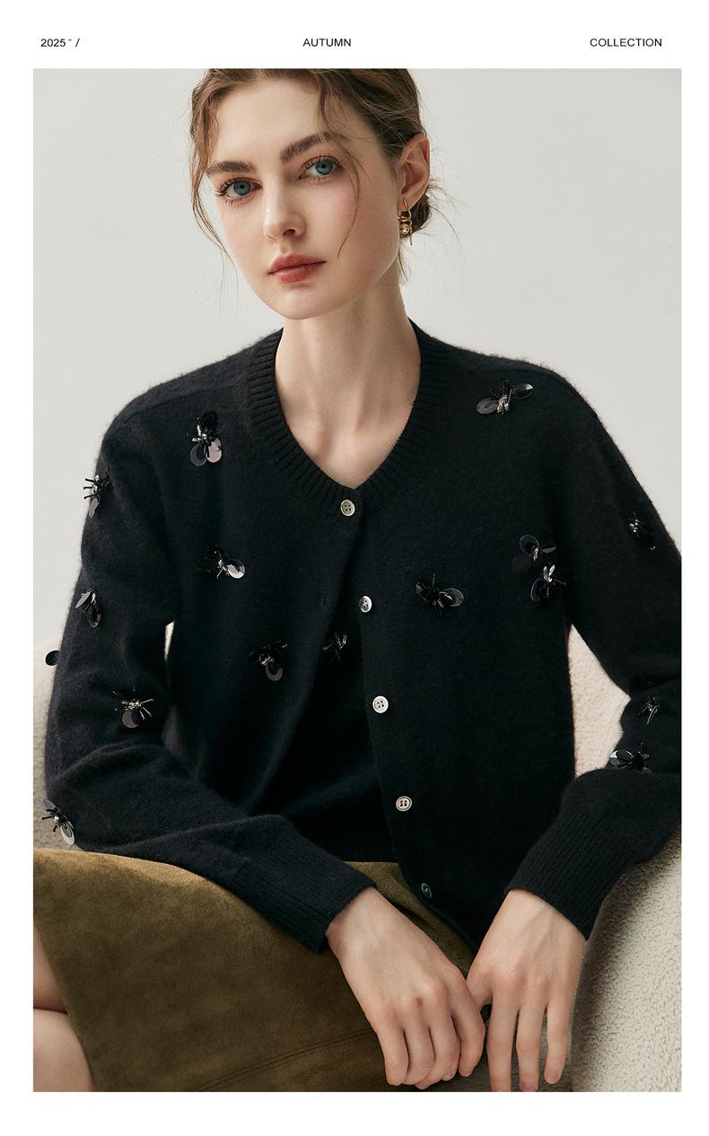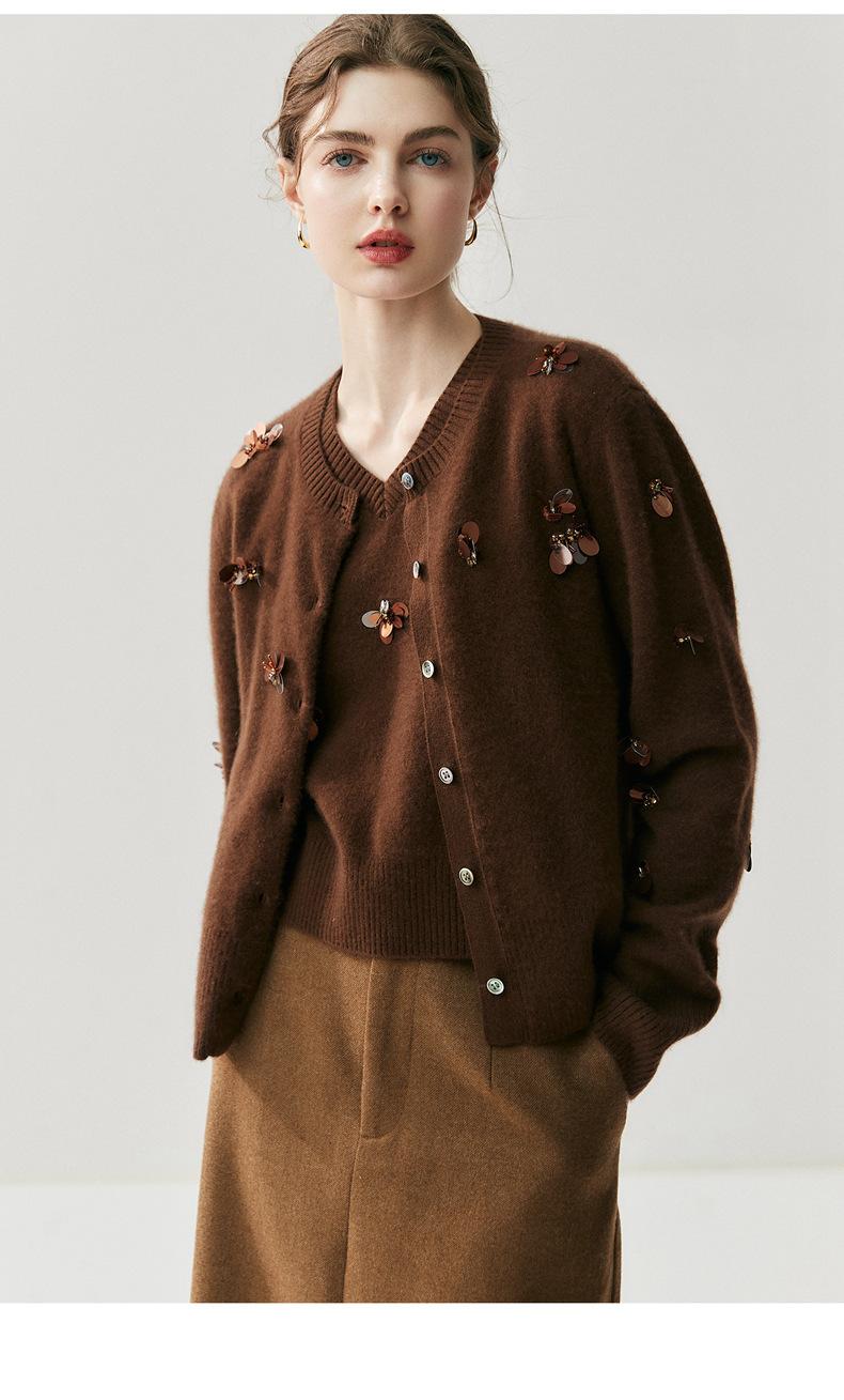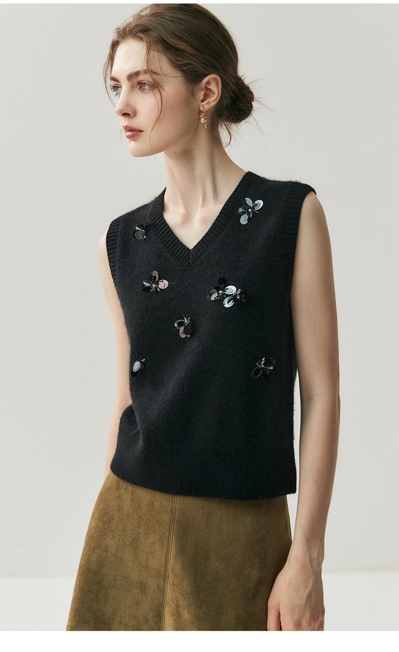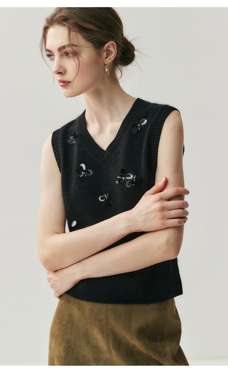 Sentido del diseño cárdigan de cachemira jacquard de mariposa tridimensional para mujer otoño e invierno moda para superponer chaleco sin mangas temperamento conjunto que reduce la edad