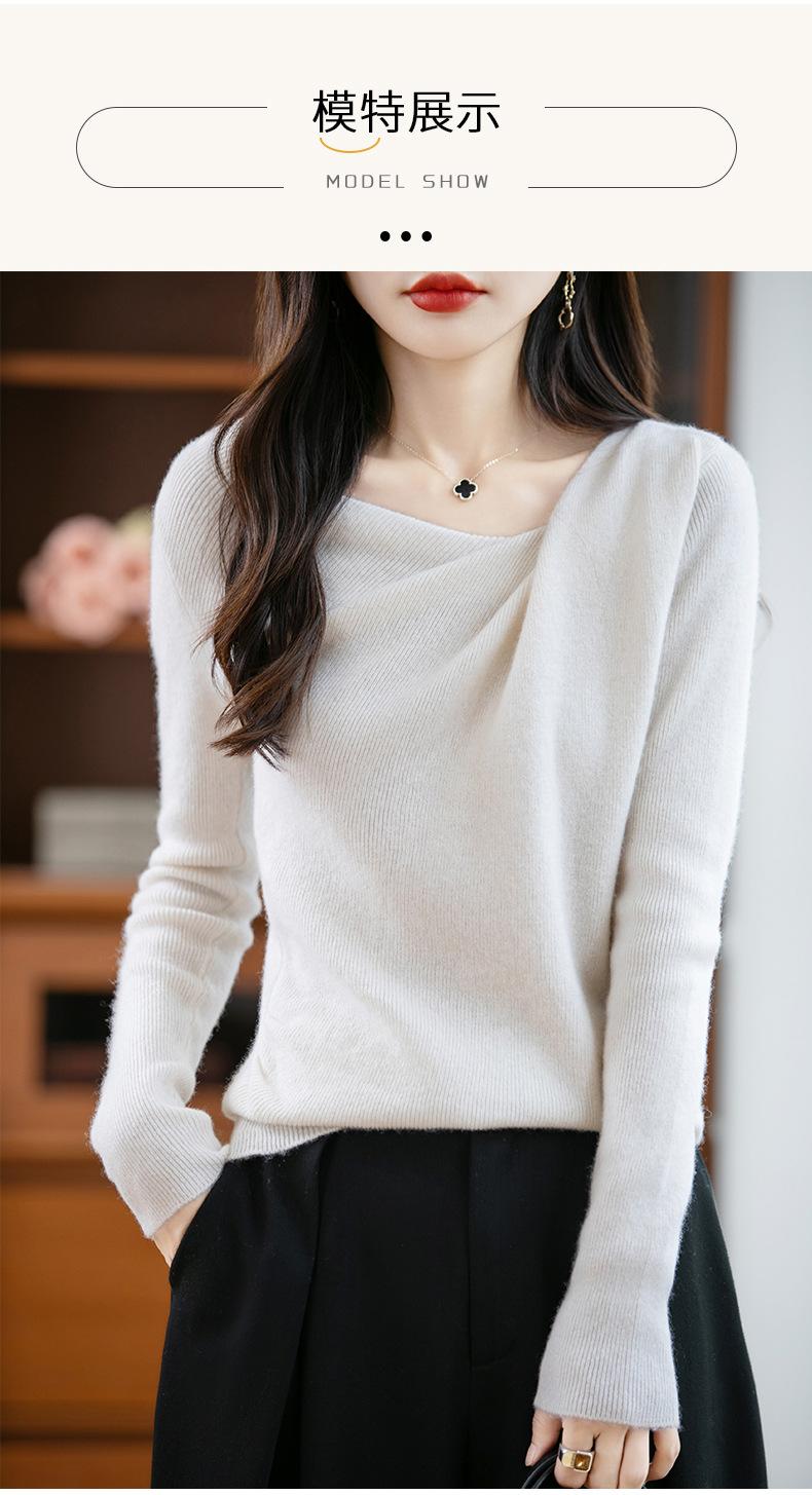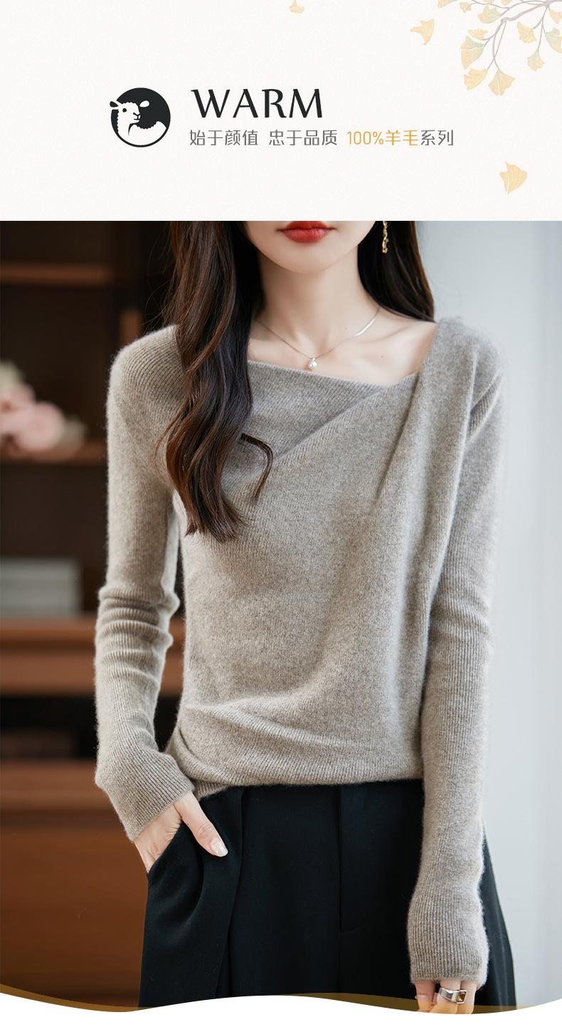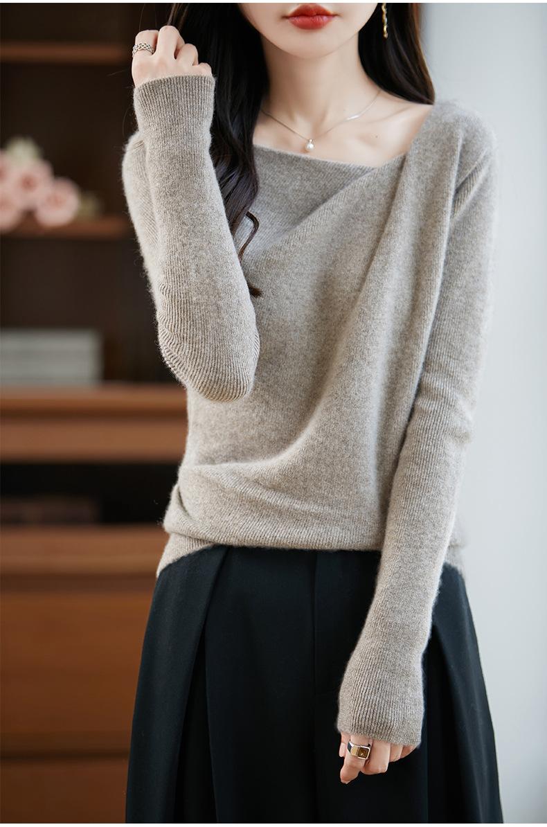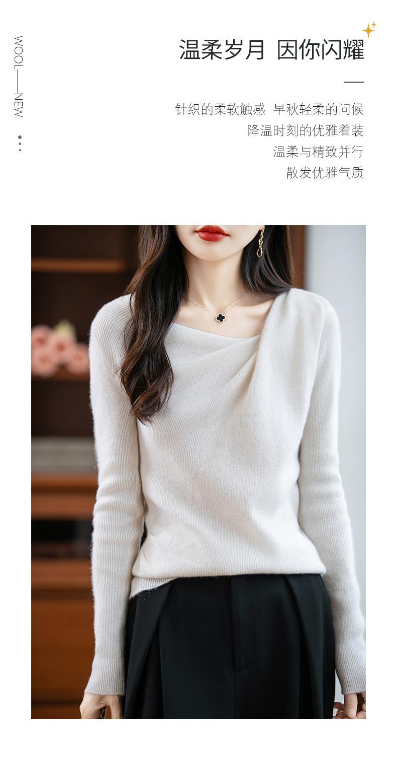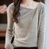 Temperamento 100% Lana Pura Adelgazante Camiseta Base para Mujer Otoño e Invierno Nuevo Diseño de Moda de un Hombro Ropa Exterior Suéter de Punto