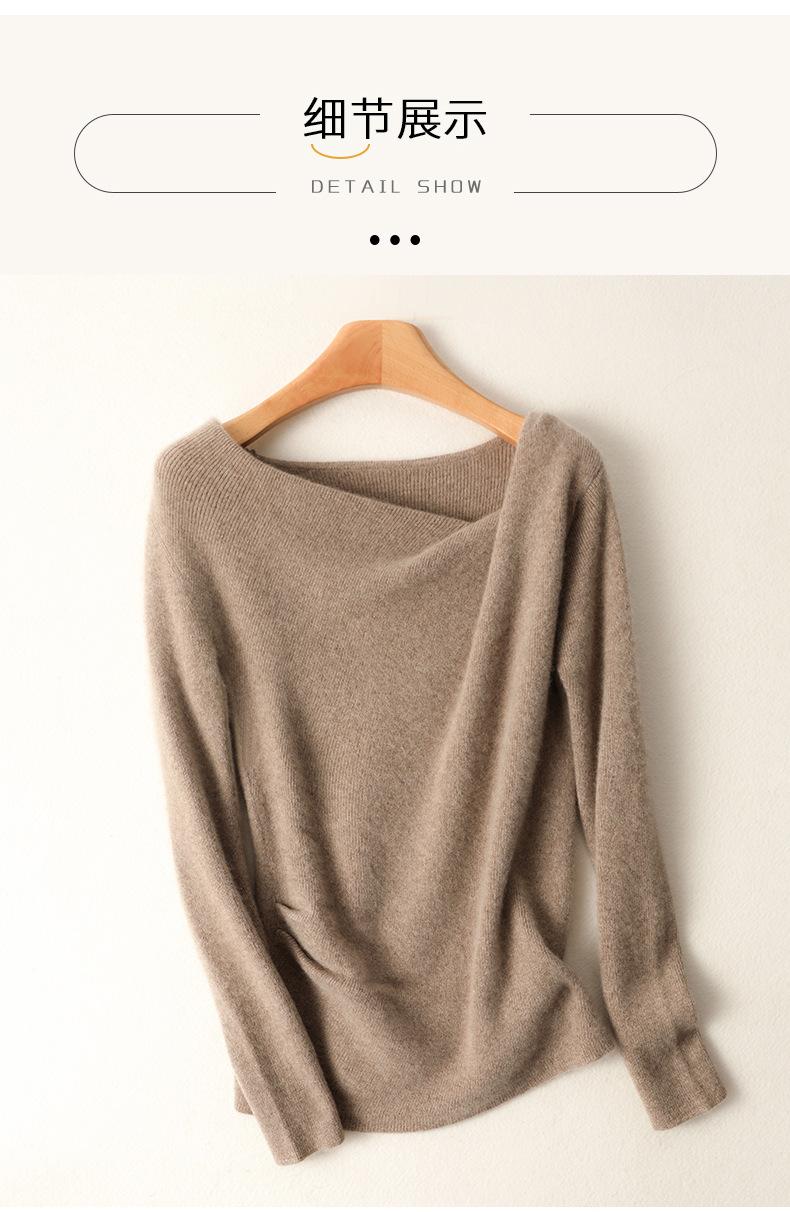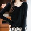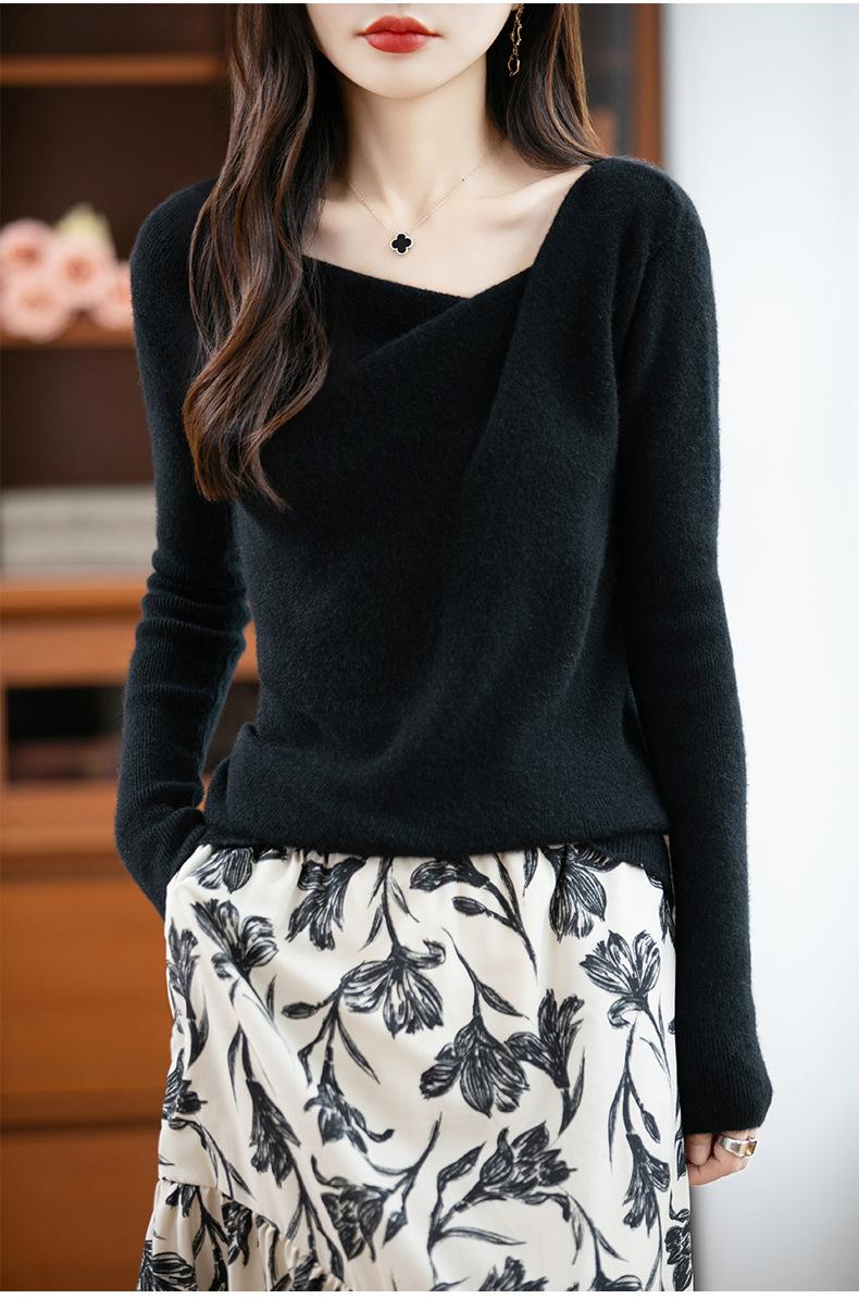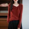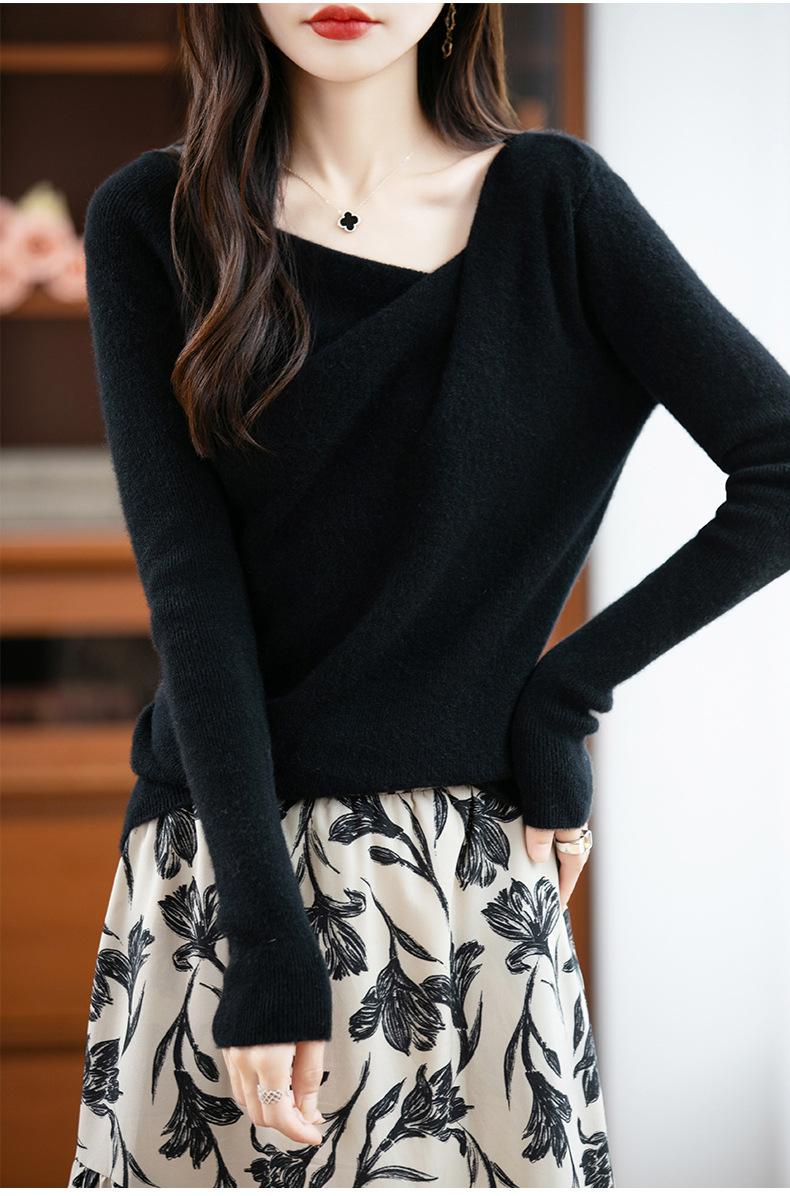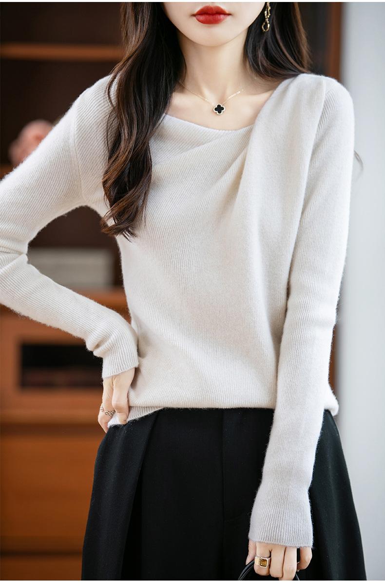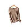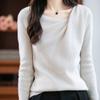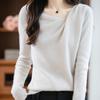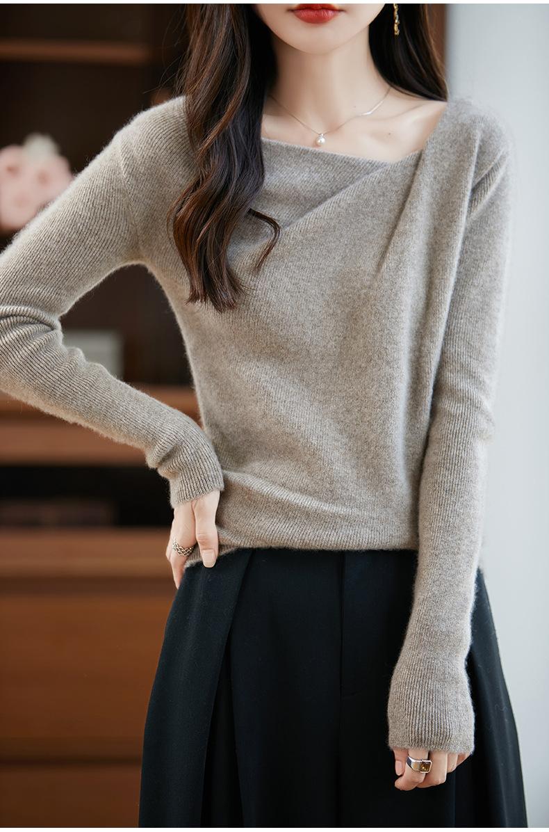 Temperamento 100% Lana Pura Adelgazante Camiseta Base para Mujer Otoño e Invierno Nuevo Diseño de Moda de un Hombro Ropa Exterior Suéter de Punto
