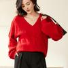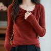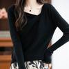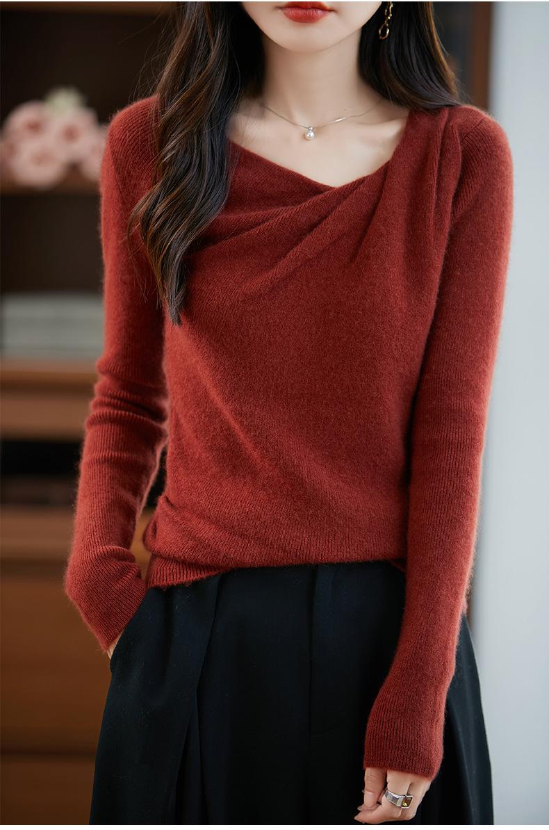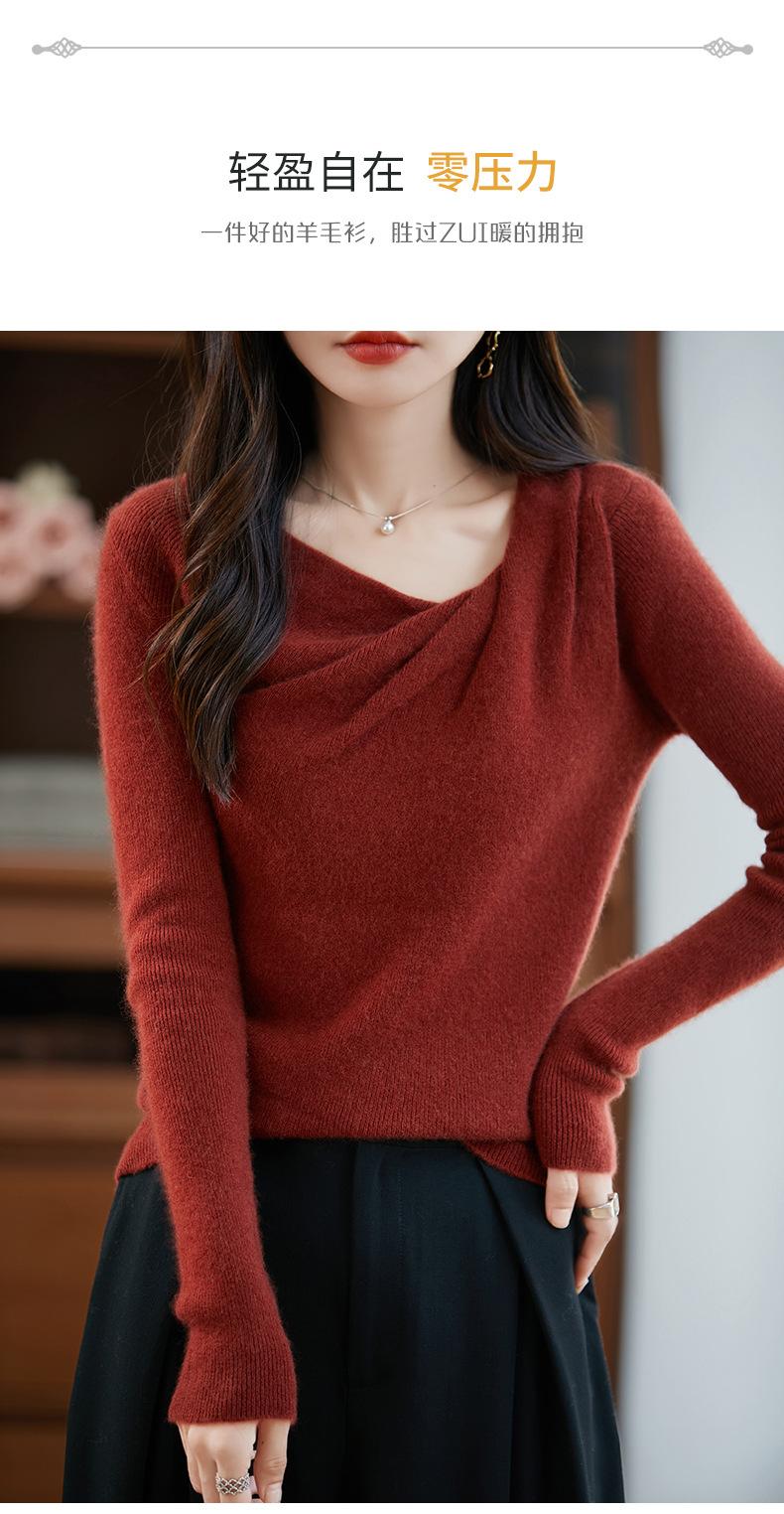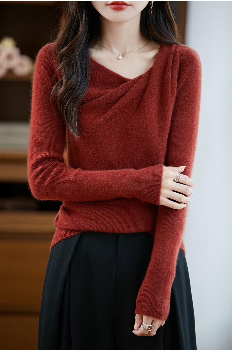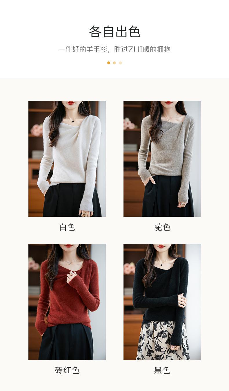 Temperamento 100% Lana Pura Adelgazante Camiseta Base para Mujer Otoño e Invierno Nuevo Diseño de Moda de un Hombro Ropa Exterior Suéter de Punto