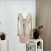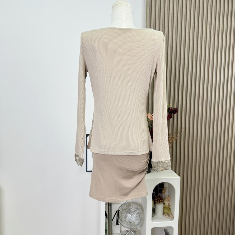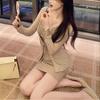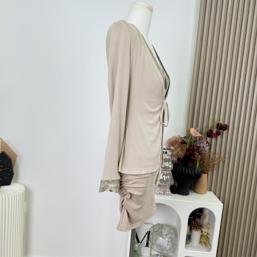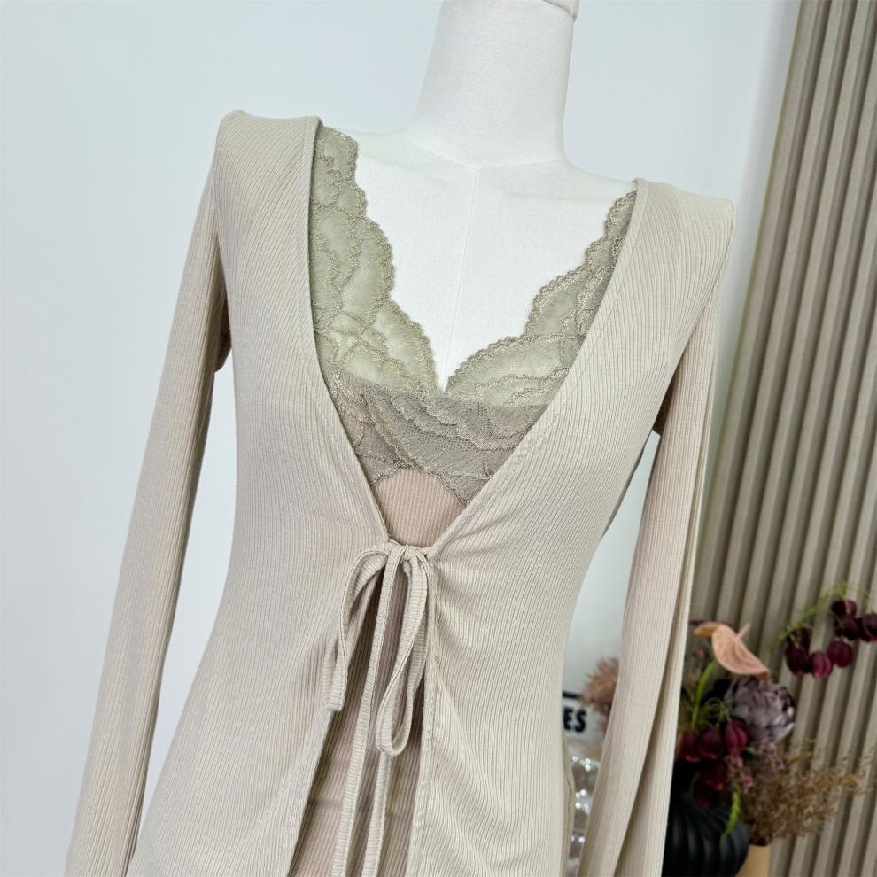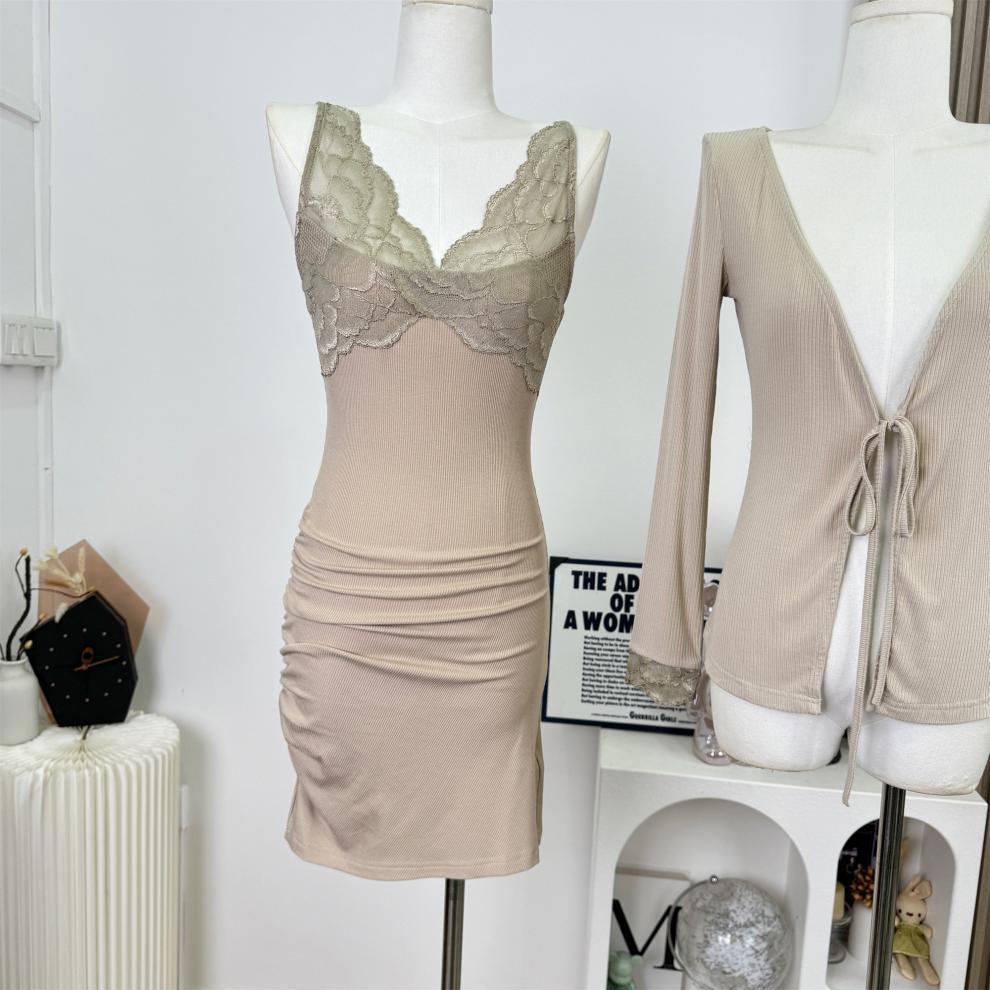 Socialité Taiwanesa* Temperamento de Principio de Otoño Sexy Cárdigan de Punto Conjunto de Dos Piezas Encaje Vestido de Mujer