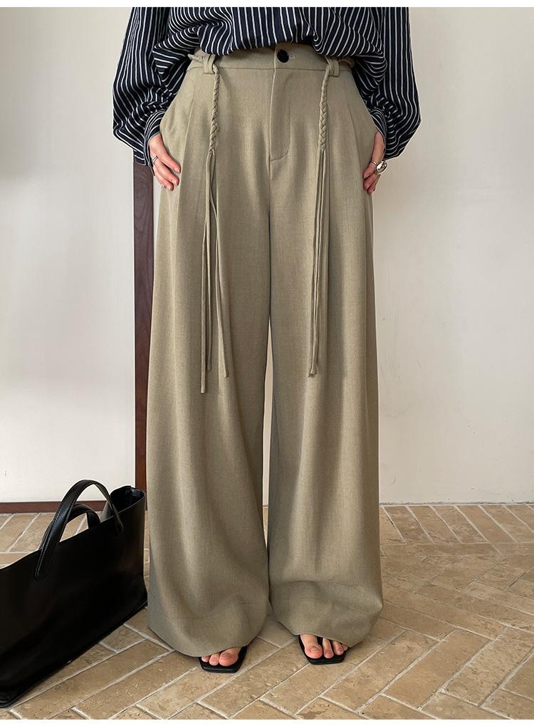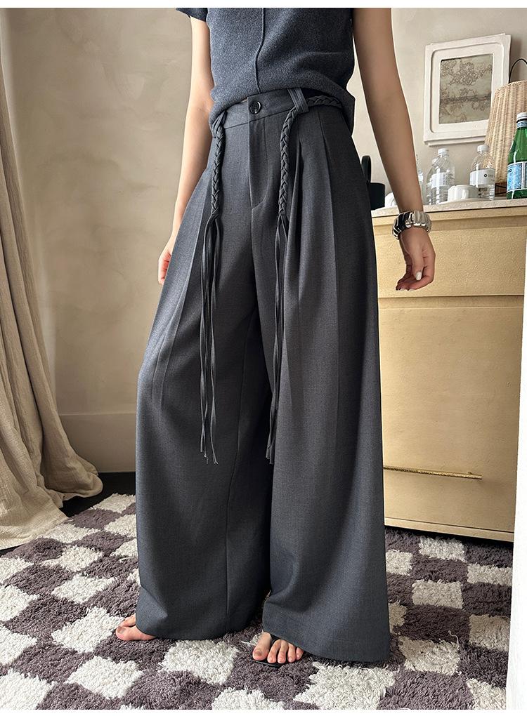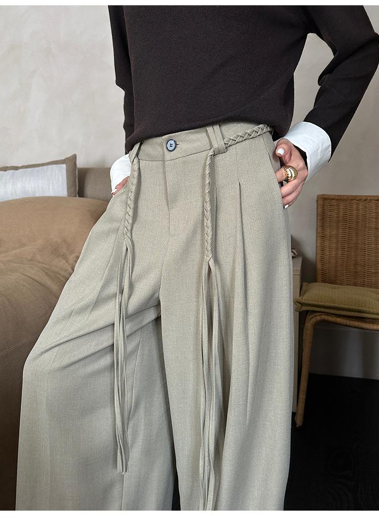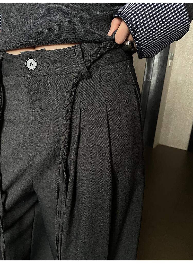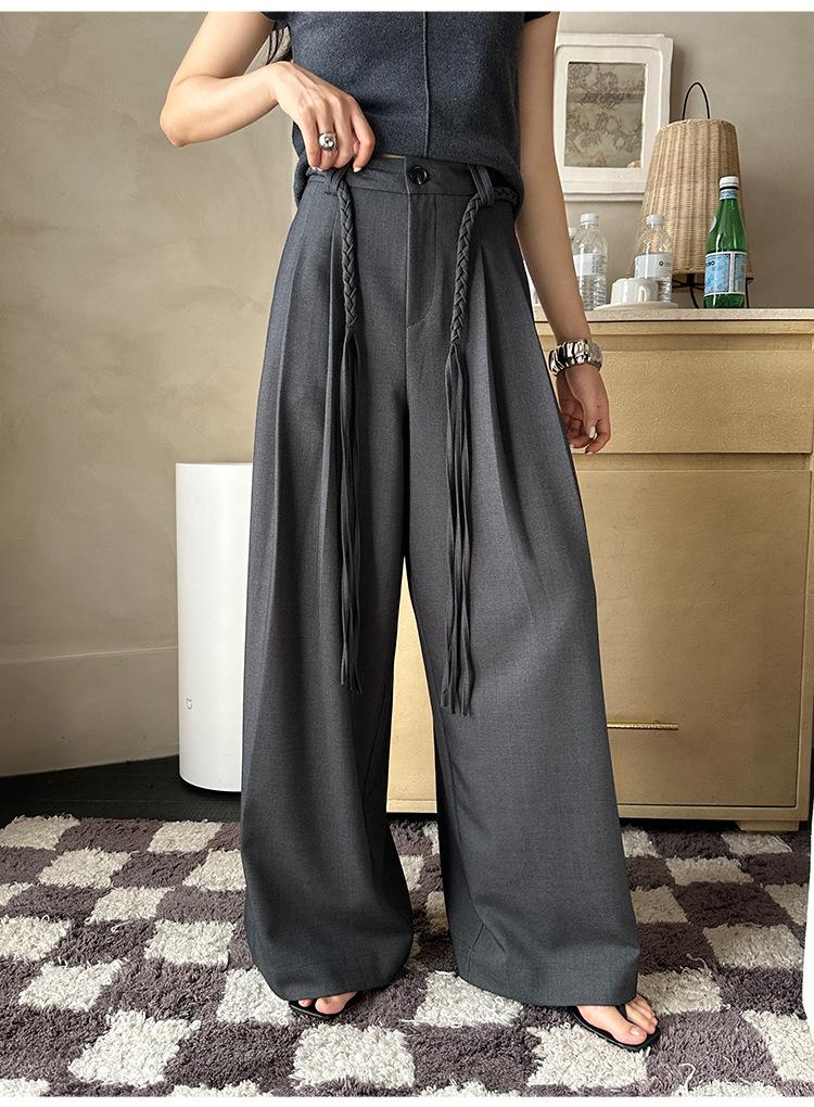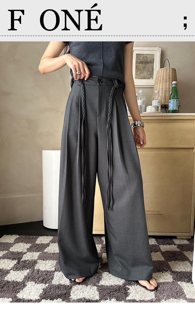 FONE Jianhe Pantalones de Traje de Pierna Ancha de Gama Alta Mujer Otoño 2025 Diseño Sensorial Gris Lazo en la Cintura Pantalones Casuales 58136