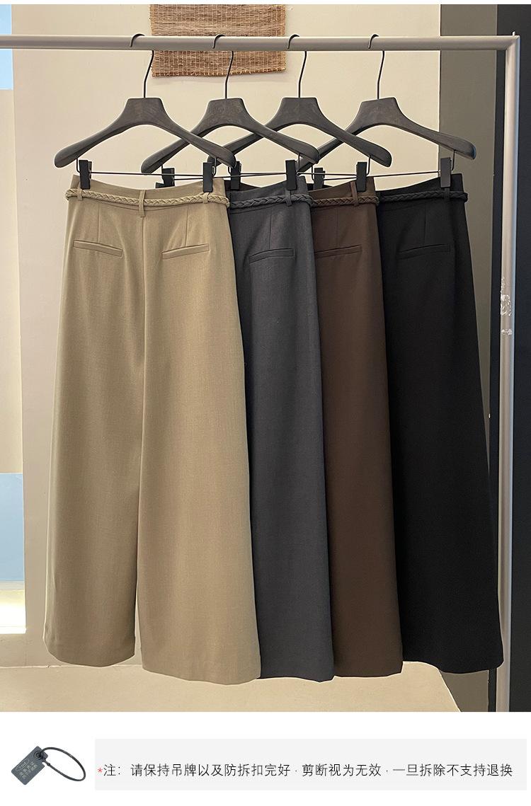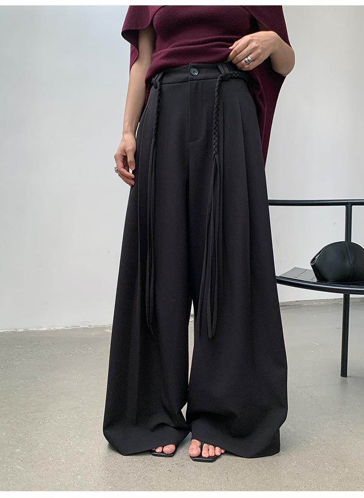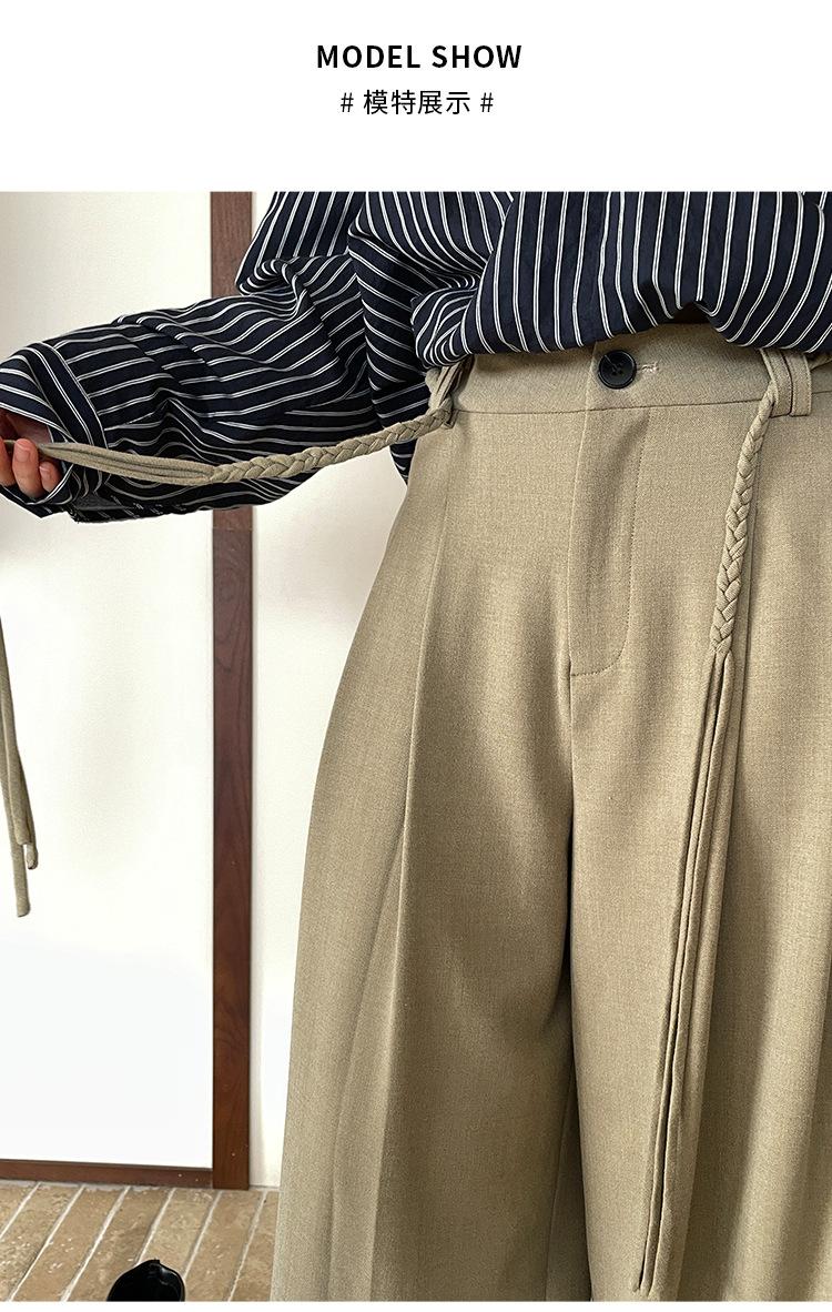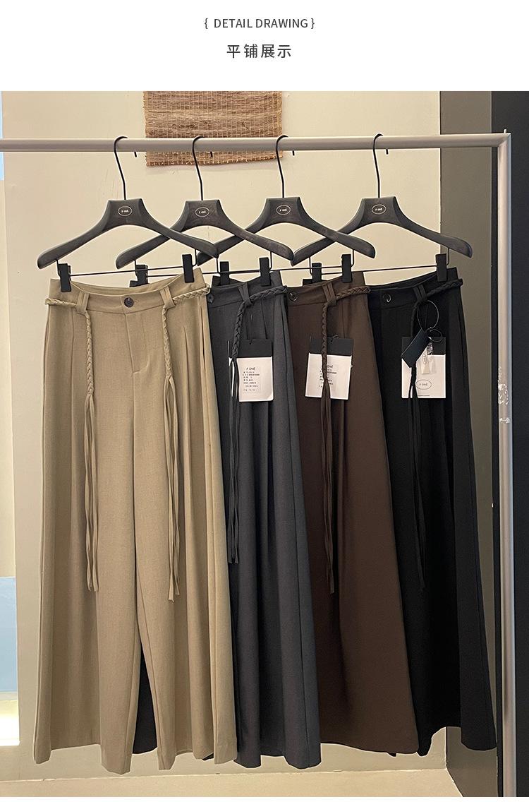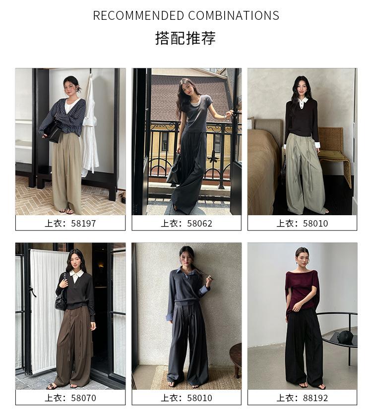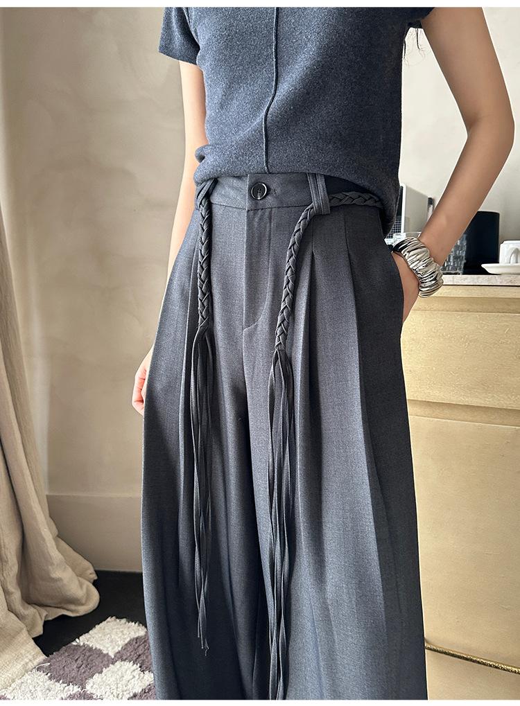 FONE Jianhe Pantalones de Traje de Pierna Ancha de Gama Alta Mujer Otoño 2025 Diseño Sensorial Gris Lazo en la Cintura Pantalones Casuales 58136